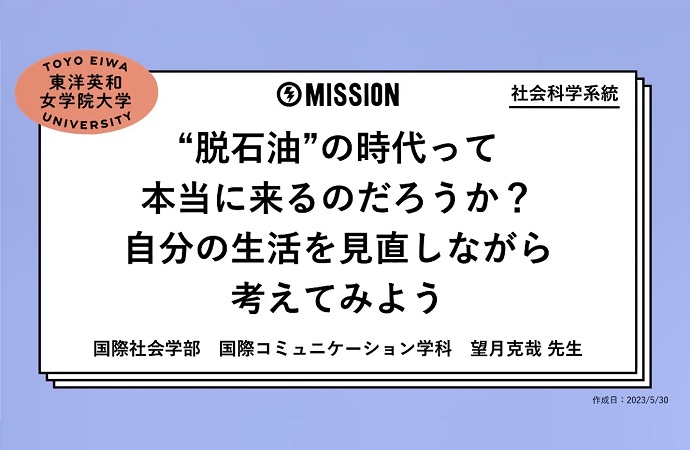 「"脱石油"の時代って本当に来るのだろうか?自分の生活を見直しながら考えてみよう」