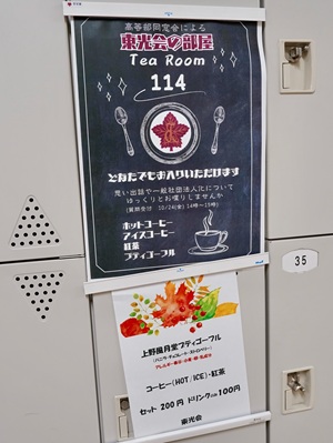 10月25日(金)、26日(土)の2日間、第56回中高部楓祭が開催され、東光会は「東光会の部屋」を催しました。 今年はメイプルフェスティバル2024を控えていたことから、お茶とお菓子のご提供は無しとさせて頂きました。