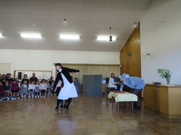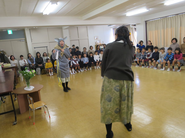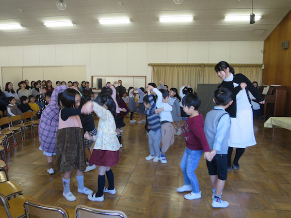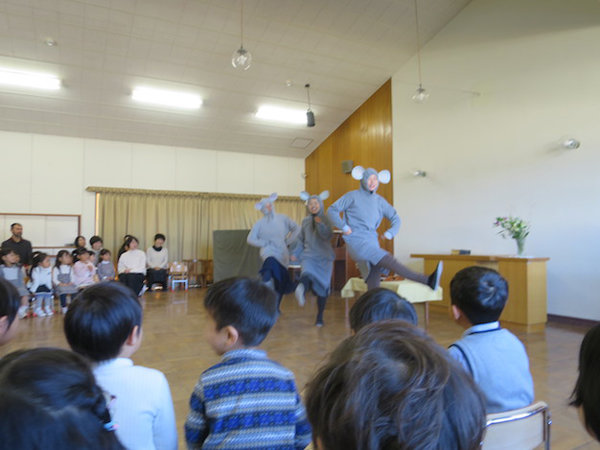 2020年01月06日 3学期が始まりました。その1 年中・年少組始業礼拝 Ⅱ部は♪なべなべそこぬけ~ ダンスを踊っていると、 大きなネズミが出てきました! 年長組始業礼拝 ネズミが凧あげやコマを持ってやってきました。 前へ 一覧へ戻る 次へ