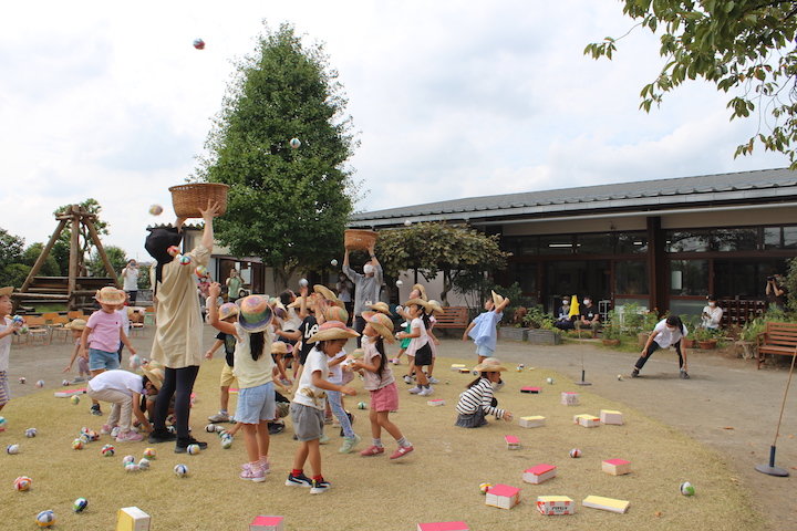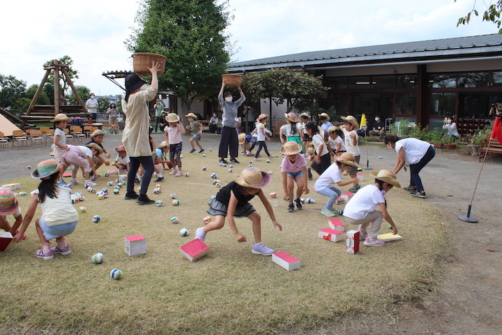 - 玉入れでは音楽に合わせて玉を入れたり