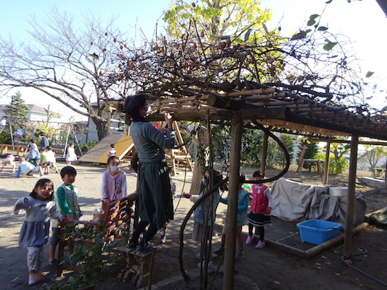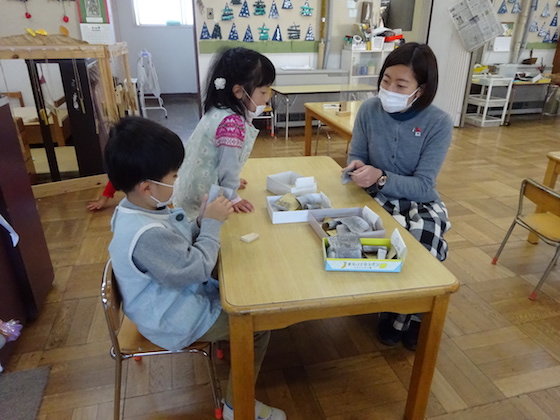 2020年12月06日 アドベント(待降節)に入りました。その2 年少組は親子でアドベントの礼拝をしました。 礼拝の後は親子でダンス。 お母さんやお父さんのことを思ってクリスマスプレゼントを作り始めました。 「お母さんにはないしょだよ」と言いながら作っています。 ツルツルになるまで丁寧にヤスリをかけます。何になるかはお楽しみ。 庭ではチューリップの球根を植えるための畝作り。 キウィの収穫 カメのミドリとジョイは冬眠。「春までおやすみなさい」 前へ 一覧へ戻る 次へ