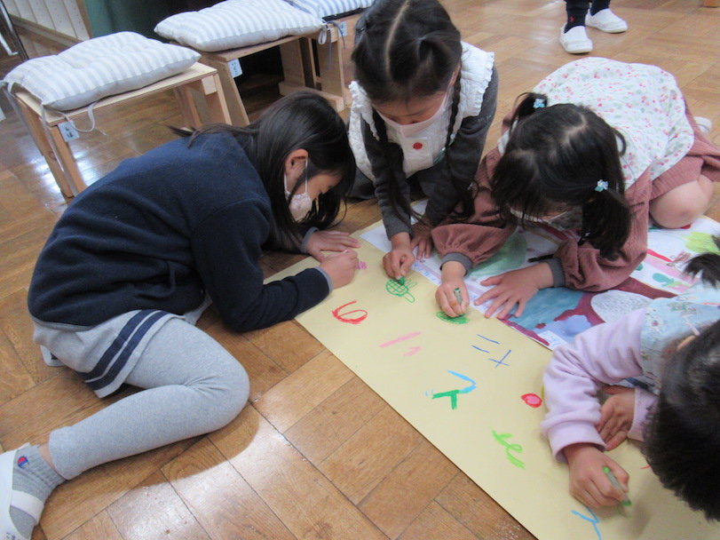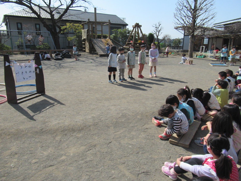 2021年03月29日 3月の生活から その2 年長組は親子で「こどもの国」へ卒業遠足に出かけました。 梅の花がきれいに咲いていました。 「牛って大きい!」「ごはんをどうぞ」 お弁当を食べました。 幼稚園のあちらこちらで小さい組が喜ぶことを考えている年長組の姿が見られます。 絵を描いたり、 「うみのいきもののショー」を見せた子どももいました。 年長組と年中組の集い「いっぱい遊んで楽しかったね」「小学校に行っても元気でね」 年中組からは聖書のカバーをプレゼント。 前へ 一覧へ戻る 次へ