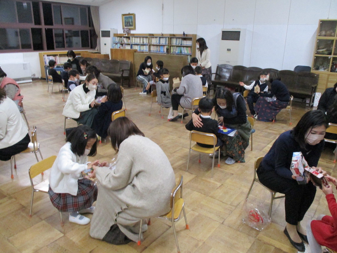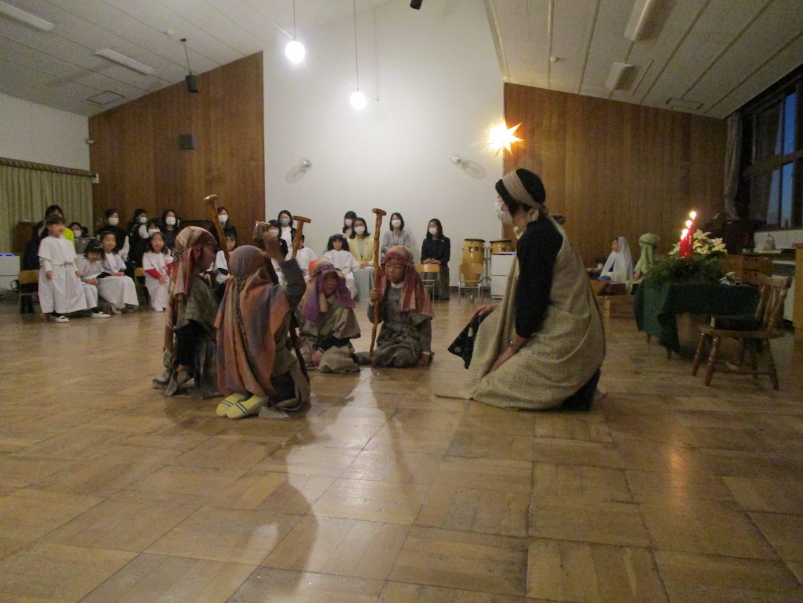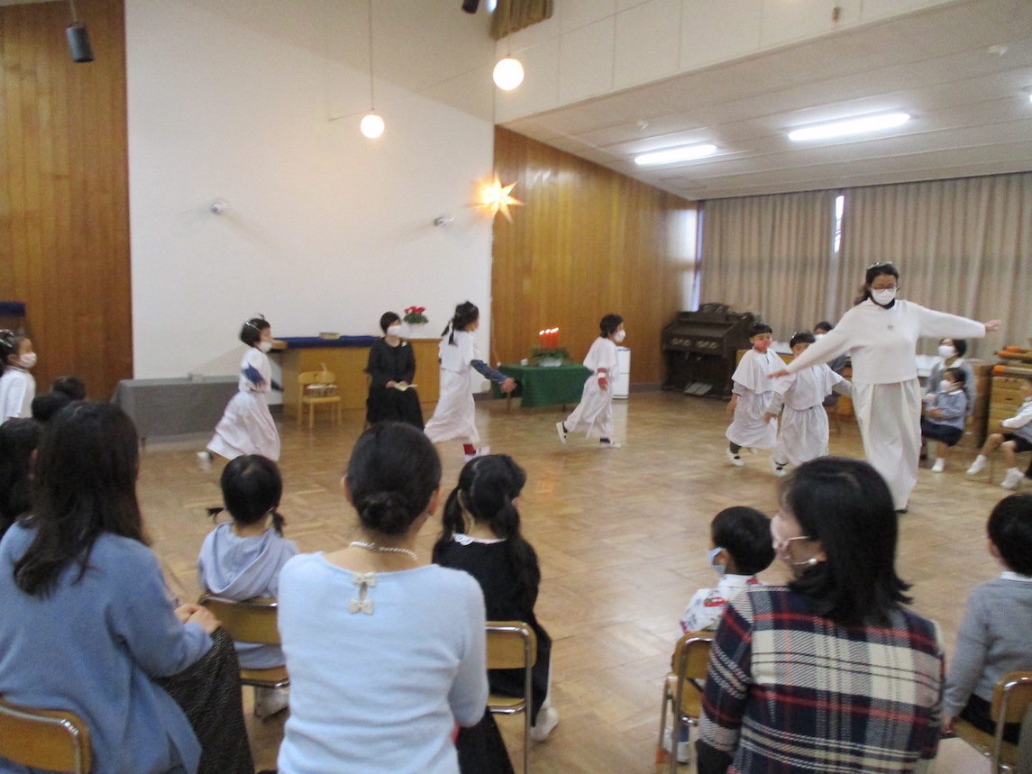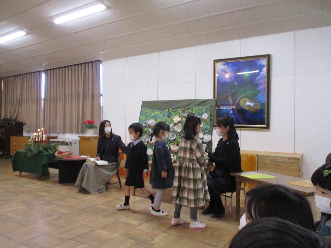 2022年01月12日 2021年12月クリスマス礼拝 年少組クリスマス礼拝 年長組の子どもたちがみ言葉と賛美を届けにきてくれました。 お母さんと贈り物を交換するひととき 年中組のクリスマス礼拝はアドベントのあいだの喜びを書いたひつじを貼ることから始まりました。 年中組 お母さんからのプレゼントは手作りのエプロン 年長組はページェント(降誕劇)でクリスマスの喜びをあらわします。 キャンドルサービス お母さんと贈り物の交換。喜びを分かち合います。 前へ 一覧へ戻る 次へ