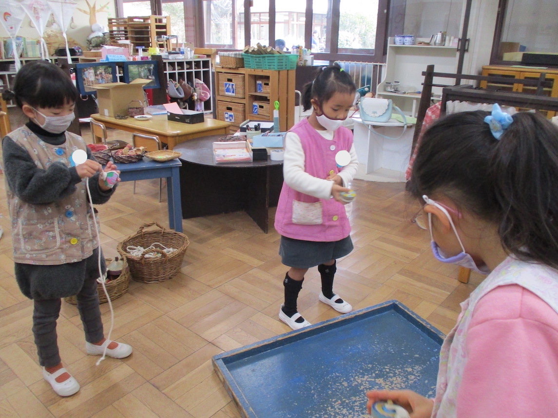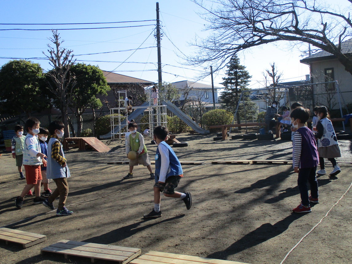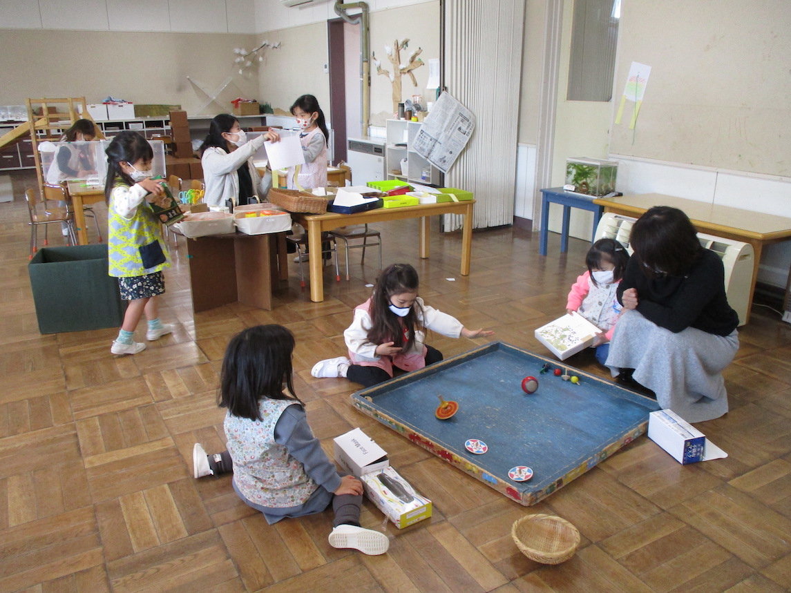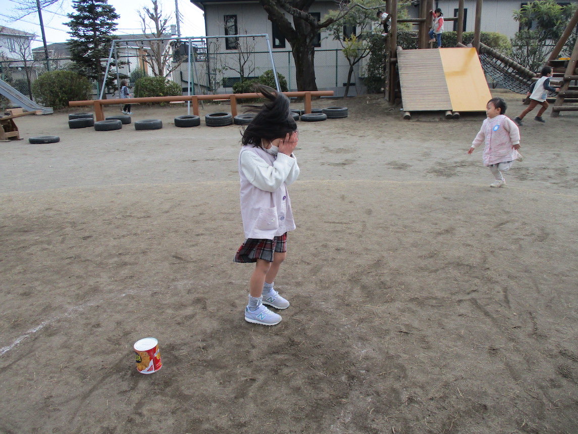 2022年01月24日 3学期が始まりました。 始業日は雪でした。 こま回しを楽しんでいます。 年長組は投げごまに挑戦。 びゅんびゅんごま 凧揚げ 庭ではドッジボール 缶けり 缶をけるタイミングをうかがっています。 前へ 一覧へ戻る 次へ