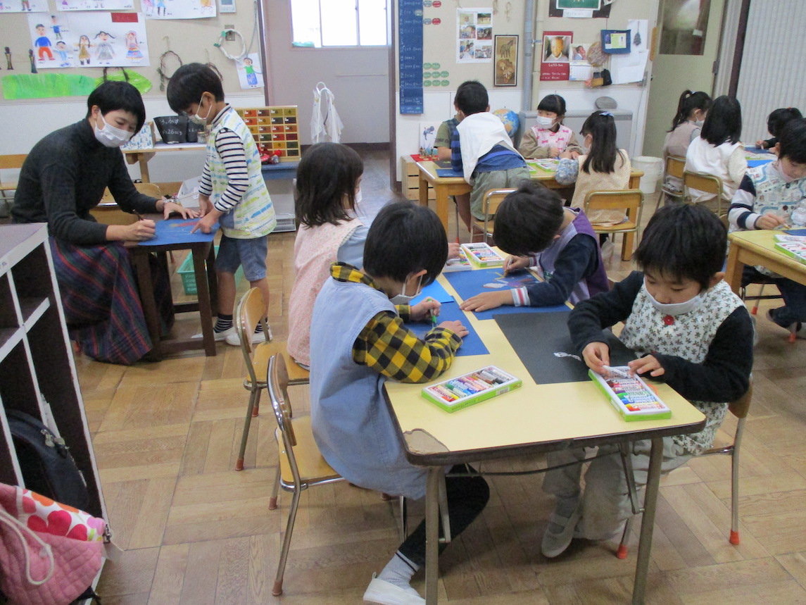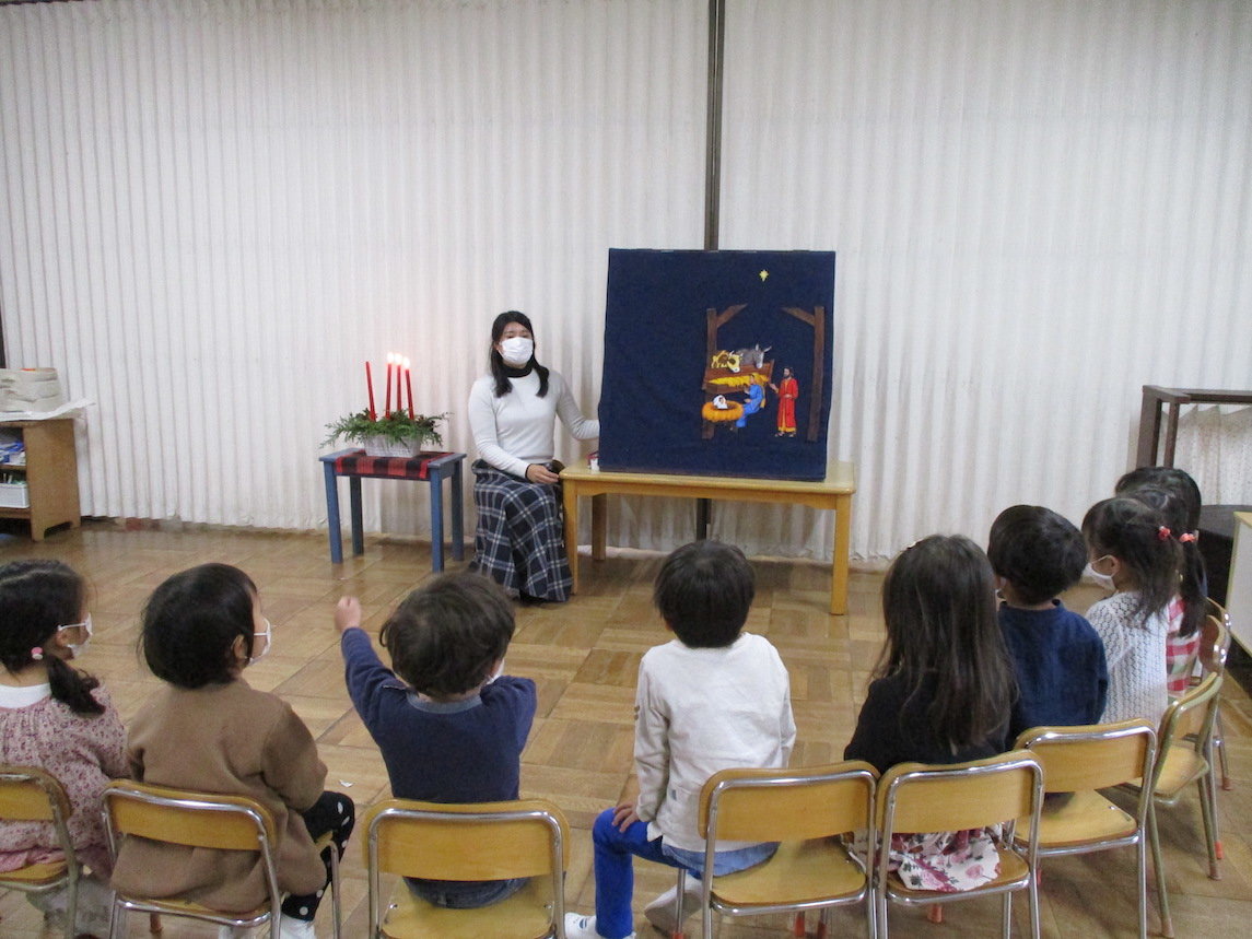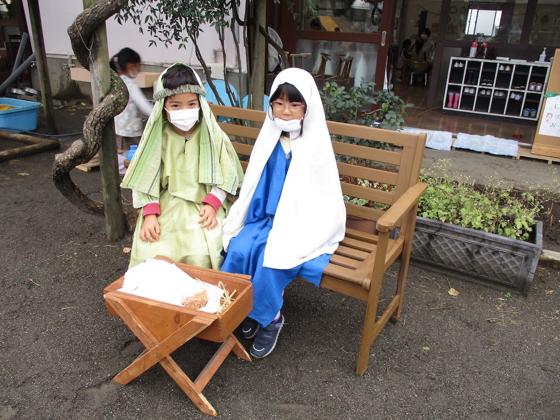 2022年01月10日 アドベント(待降節)の幼稚園の様子です アドベントクランツの灯りを見ながら登園します。 年少組のアドベント礼拝 クリスマスのダンスも楽しみました。 庭でページェント(降誕劇) 今日のマリアとヨセフです。 ページェントの中の好きな場面を描いています。 年長組はケニアのコイノニア教育センターに通うシェリフちゃんを覚えてオーナメントを作りました。 おうちの方へのプレゼントが出来上がってきました。 前へ 一覧へ戻る 次へ