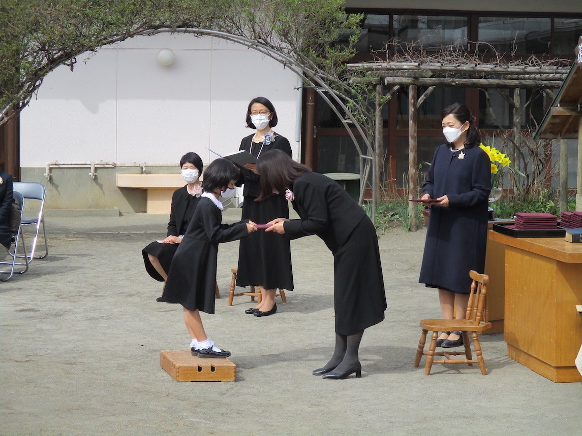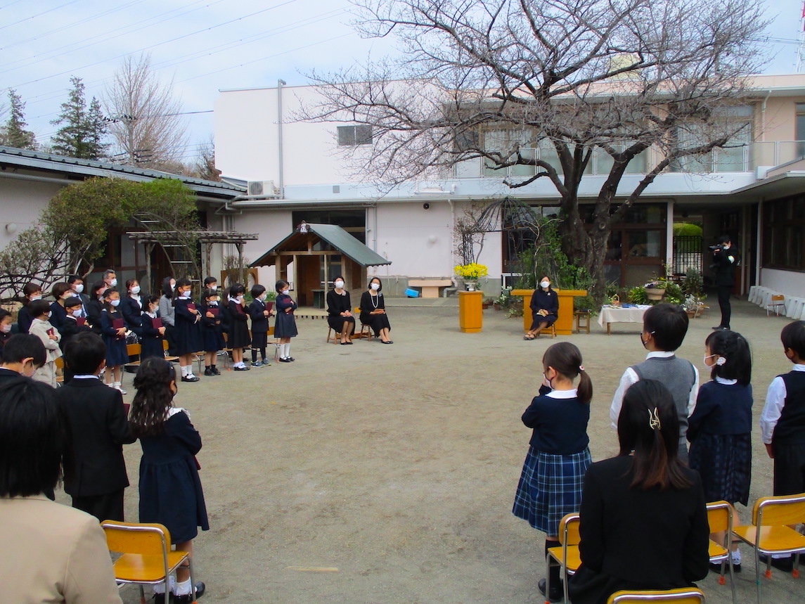 2022年03月21日 2021年度お別れ会・保育証書授与式 青空の下、今年のお別れ会は庭でしました。 和やかなあたたかいひとときでした。 感染予防を考え、卒業式も庭でしました。 晴れやかな笑顔で41名の子どもたちが巣立っていきました。卒業、おめでとうございます。神さまの祝福が豊かにありますようにお祈りしています。 前へ 一覧へ戻る 次へ