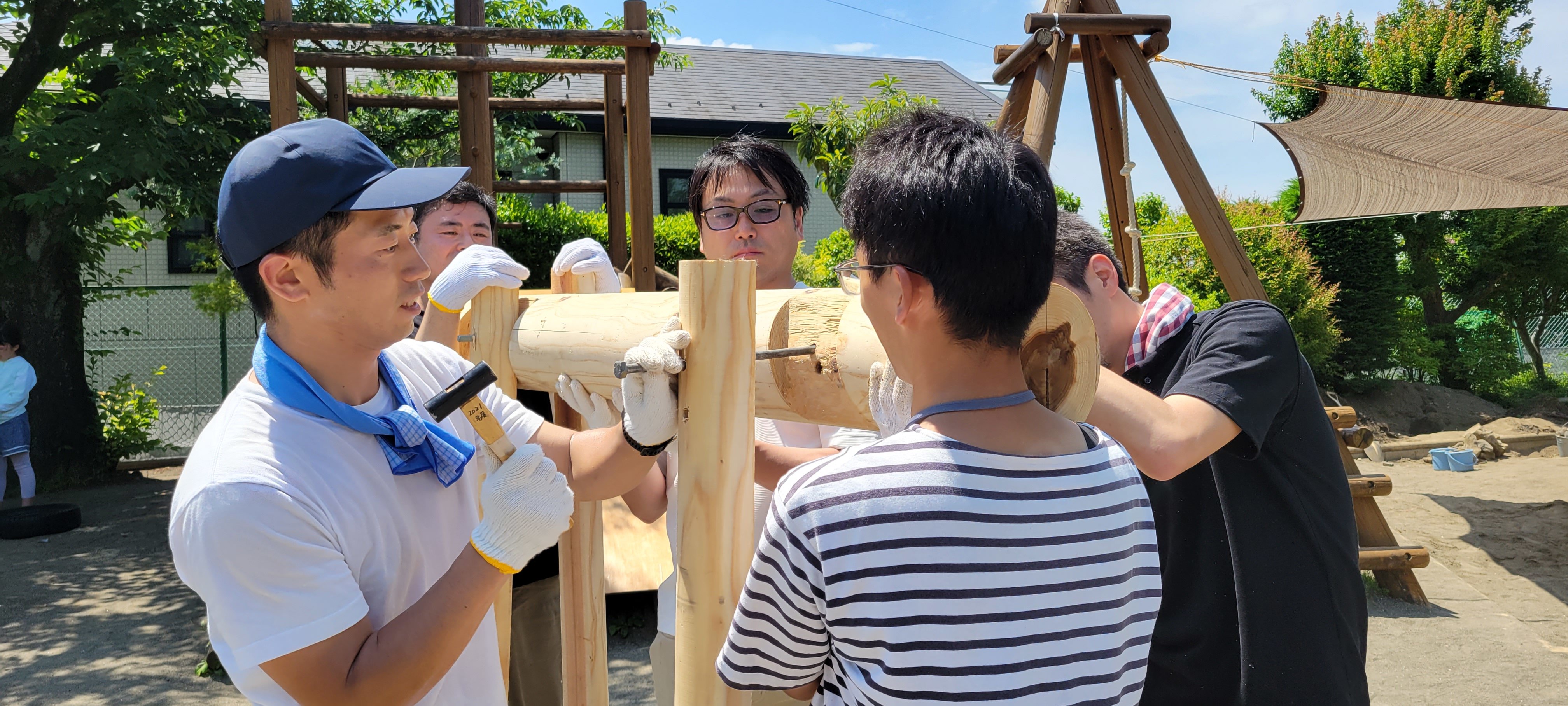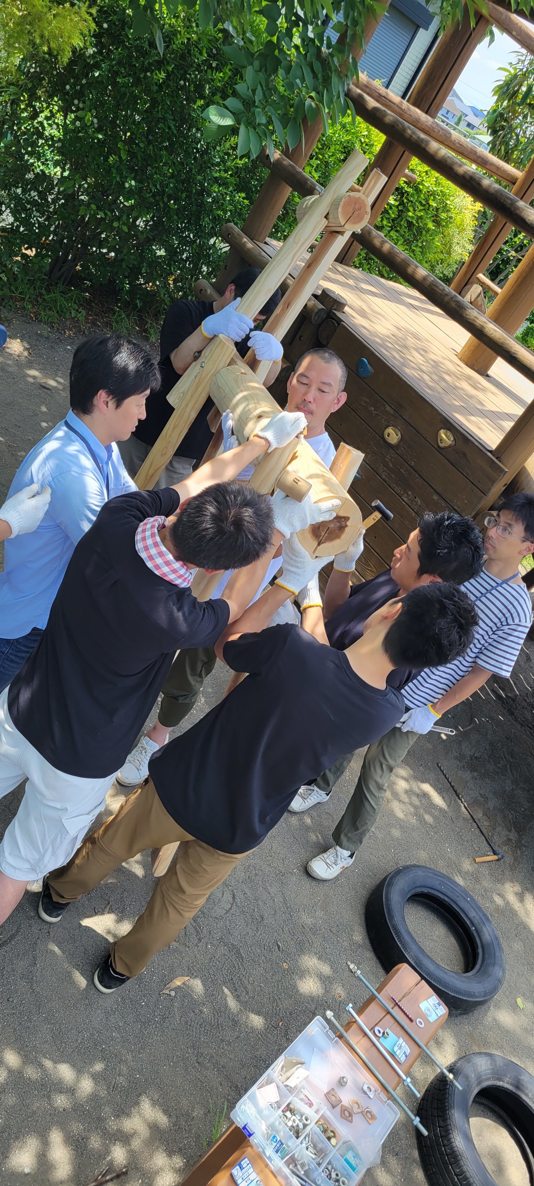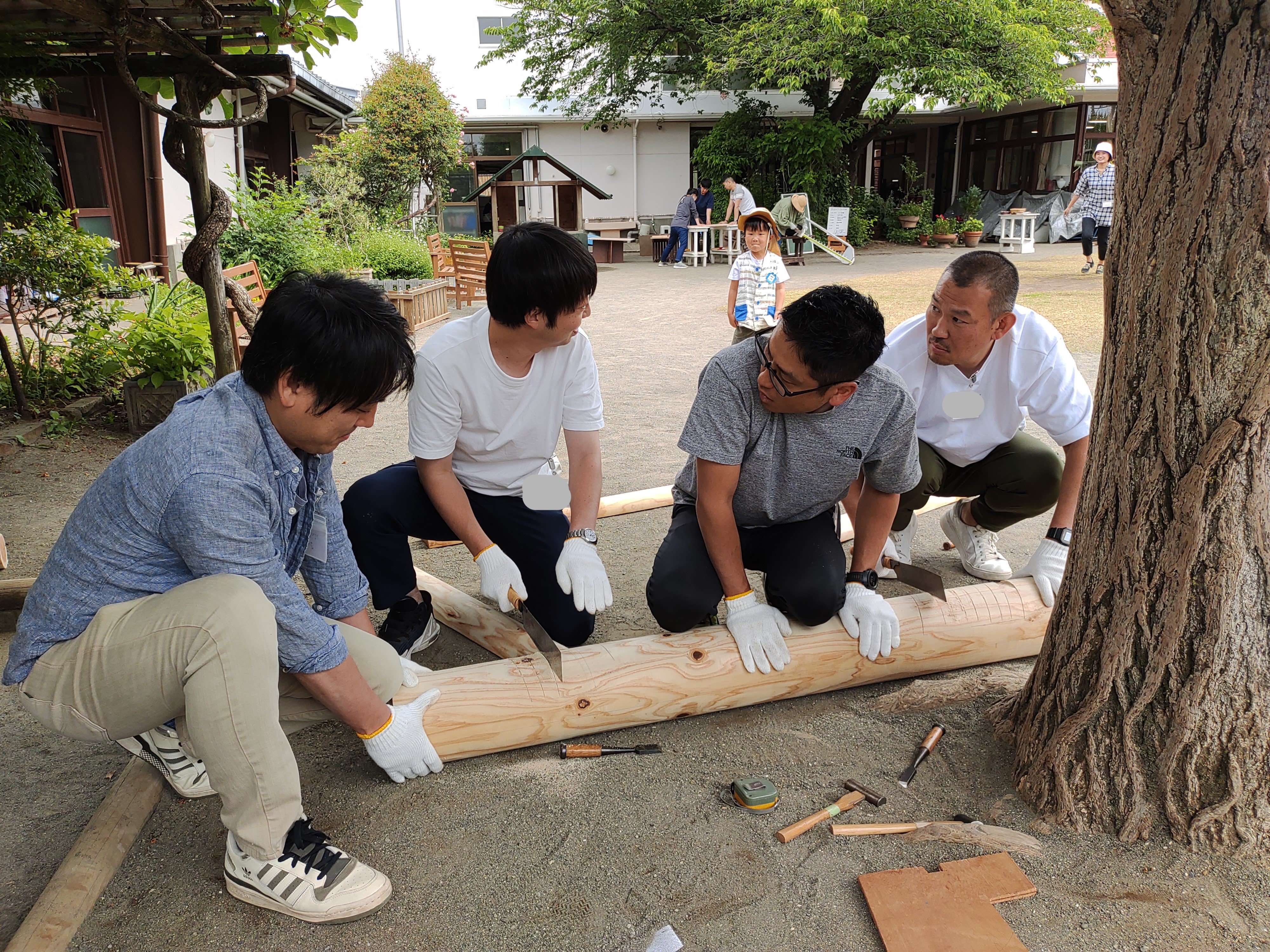 2024年06月25日 木馬が新しくなりました! まずは古くなった木馬を掘り起こしました。 この木馬の材料となった丸太は、かえで美しが丘の会(同窓会組織)から、 創立50周年記念に送っていただきました。 お父さま方が力を合わせて木材の準備をしました。 木馬を立てるために微調整をしています。 大きなねじで脚や顔の部分を固定します 作った木馬を大きく掘った穴に埋めていきます 完成!! 前へ 一覧へ戻る 次へ
