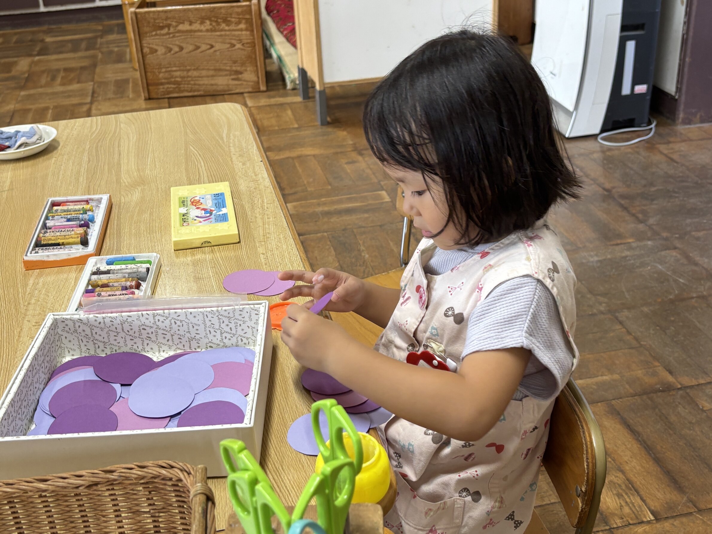 2025年09月24日 2学期が始まりました 風が涼しくなってきました。 庭の姫りんごが赤く色づき始めました。 3歳児クラスの子どもたちの姿をちょっとお届けします。 のりを使ってぶどう作り 砂場も楽しい 前へ 一覧へ戻る 次へ
