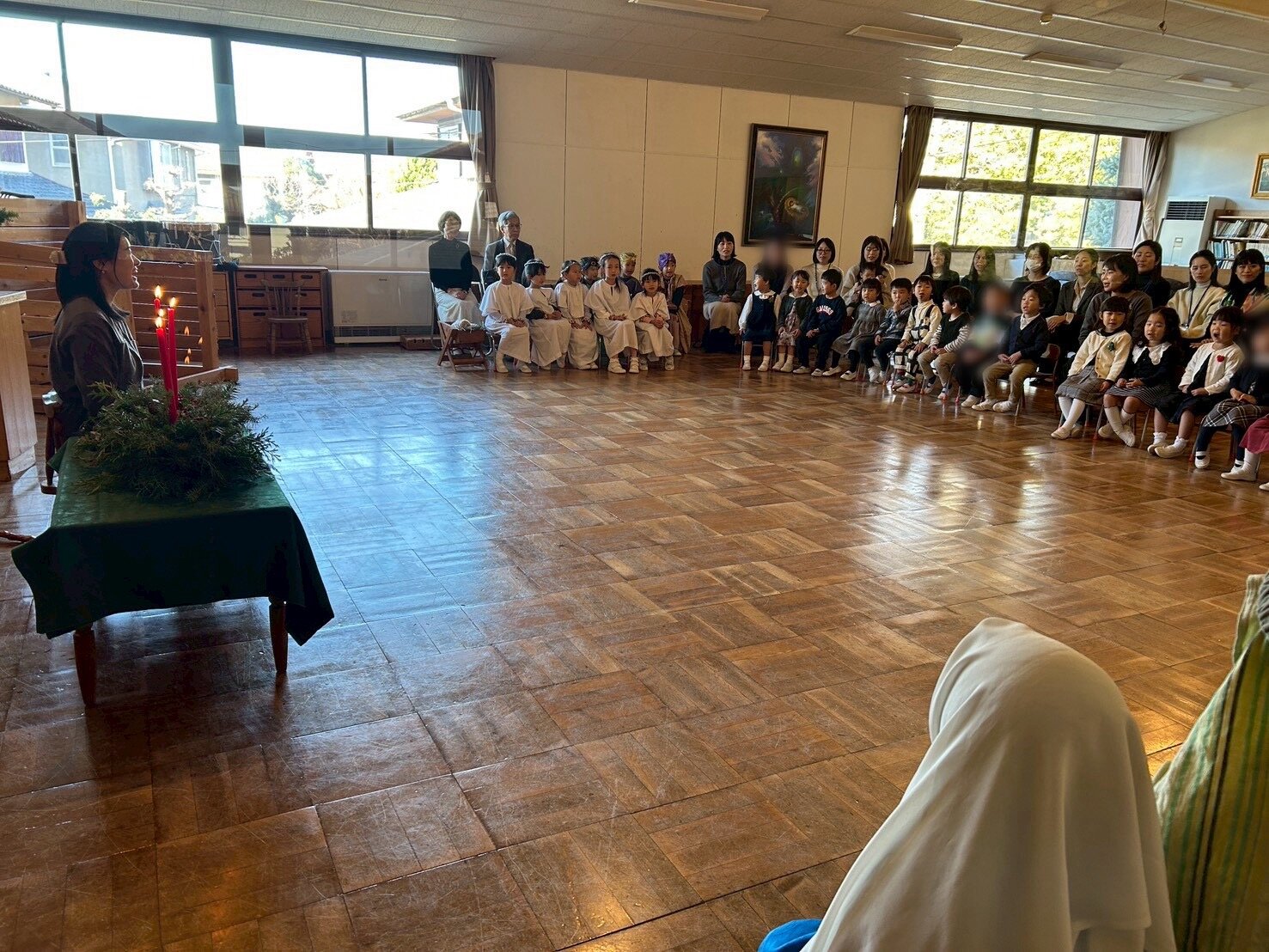 2025年12月24日 クリスマス礼拝 りす組(満3歳児クラス)のクリスマス礼拝 ♪うれしいおしらせ♪が届きました 年少組クリスマス礼拝 礼拝のあとには親子でダンス 年中組・年長組クリスマス礼拝 年長組の子どもたちが天使のみことばを伝えます 年中組の子どもたちが天使になって飛び回っています おうちの方のことを思って内緒で作ったプレゼント アドベントクランツのためのろうそくを見つけました! 卒業生の子どもたちはページェントをしてクリスマス礼拝をまもりました 前へ 一覧へ戻る 次へ