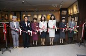 4月14日(火)にはお孫さんの村岡美枝さん、村岡恵理さんをはじめ関係者によるオープニングセレモニーが行われました。開設記念礼拝ののちに展示コーナーでのテープカットにより展示コーナーがお披露目となり、感謝のつどいをもちました。深町正信院長から村岡家に感謝状が贈呈され、村岡恵理さんよりご挨拶をいただきました。祖母村岡花子ゆかりの品々について、モノはモノであるけれども、見る人によってはただのモノではなく、それを扉として世界が開けていくものであり、今回の村岡花子関連の資料が見学者にとってだけではなく東洋英和にとっても大きな扉となるようなきっかけになれば嬉しいとのお言葉をいただきました。