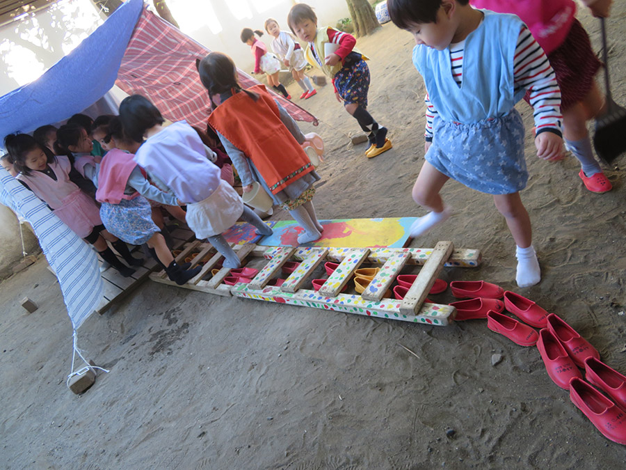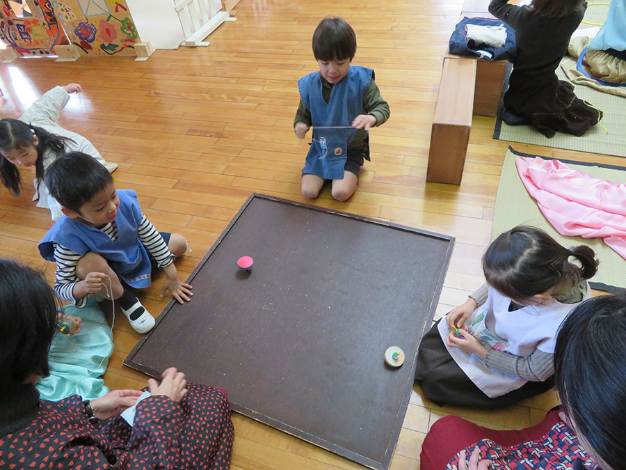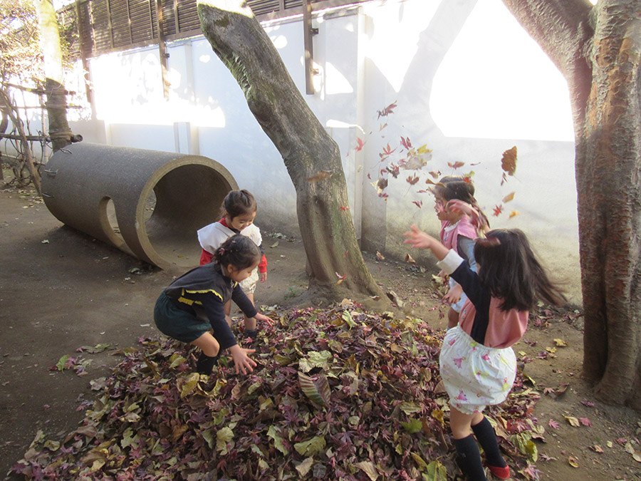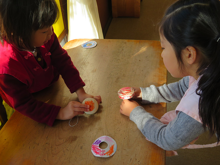 東洋英和幼稚園だより 3学期(その1) 新しい年になりました。年少、年中、年長全員が集まり礼拝を守ります。 お休みの間にこんなにたくさんの落ち葉が集まりました。高い高い山にしましょう! 子どもたちが大喜びです。「葉っぱのお山~!」 とても寒い日、天井をつけて…壁をつけて…あちらこちらに温かい家ができました。 お客さんがたくさん来て玄関の靴もきれいに揃えます。 不審者対応の訓練です。警備員さんも一緒に守ってくださいます。 自分の大切なコマ、思い思いに色を付けて… さあ!まわしてみましょう! 前へ 一覧へ戻る 次へ