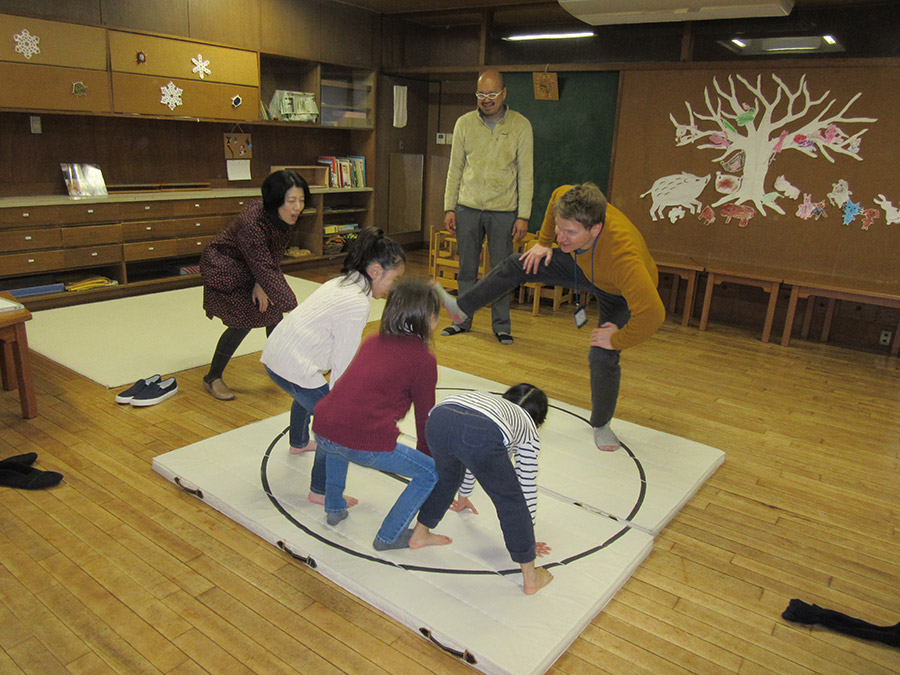 東洋英和幼稚園だより 父と子の遠足 アンデルセン公園へ出かける予定でしたが、あいにくの天候。雪の中、幼稚園で遊ぶことになりました。 お相撲をとったり… 大工をする目はみんな真剣です。 楽器コーナーでは音楽会が始まりました♪ 親子で夢中になって積み上げたカプラ。「おとうさんってやっぱりすごい!」 ホールにみんなで集まって、お父様のひざとりゲームをしました。太鼓がなって♪急いで近くのお父様の膝に座ります。 最後は一緒に礼拝を守りました。 前へ 一覧へ戻る 次へ
