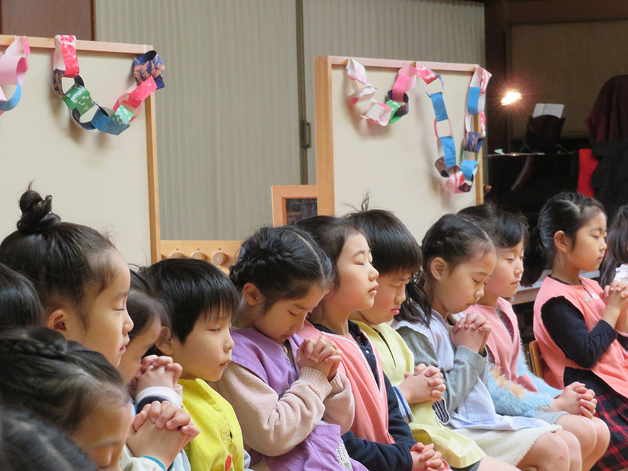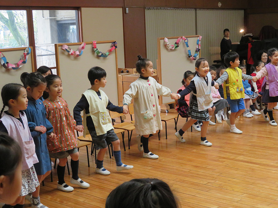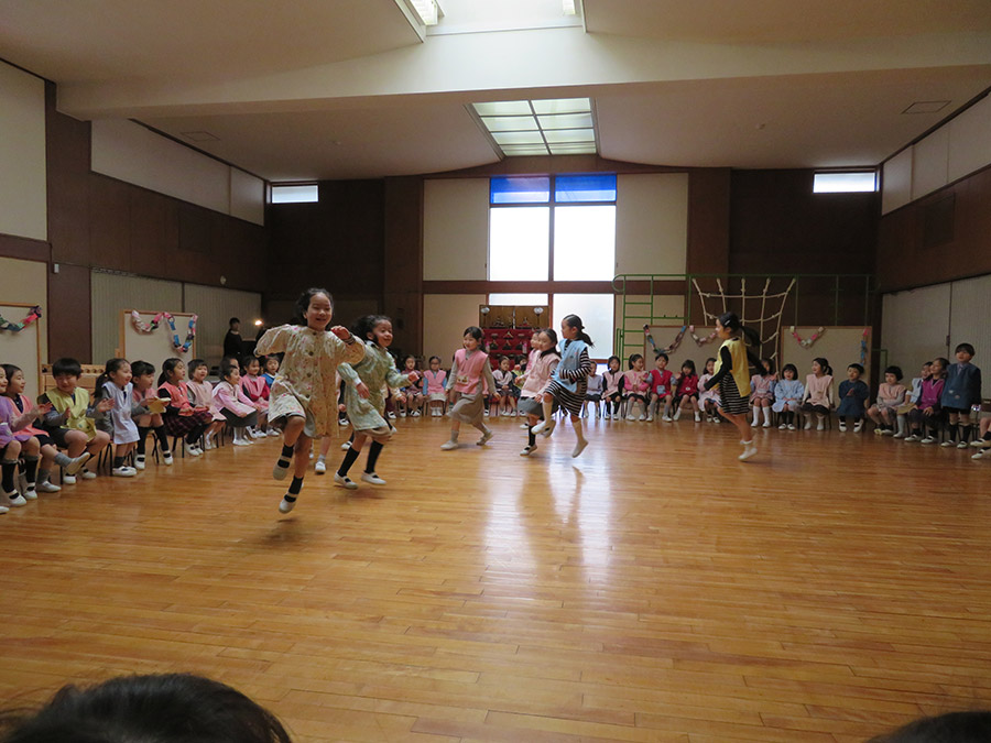 東洋英和幼稚園だより おわかれ会 4月から小学生になる年長組の子どもたちに感謝の気持ちを込めて、何かできないかと相談しました。 歌のプレゼント 年長組の子どもたちも得意の踊りを見せてくれました。 4月生まれのお友だち~みんな出てきておどろうよ~♪大好きな誕生月のなかまを楽しみました。 感謝のお祈りを捧げました。 ひみつひみつで用意していた鉛筆立てをプレゼントしました。 前へ 一覧へ戻る 次へ