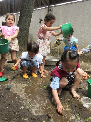 東洋英和幼稚園だより 年少の様子(その1) 何のごちそうができるかな? お水を入れて・・・こっちも掘って・・・川ができた! もっと長くしようと地道に掘っていきます 橋をかけて、渡れるようにもなりました 川でごちそうだって作れるよ! 前へ 一覧へ戻る 次へ