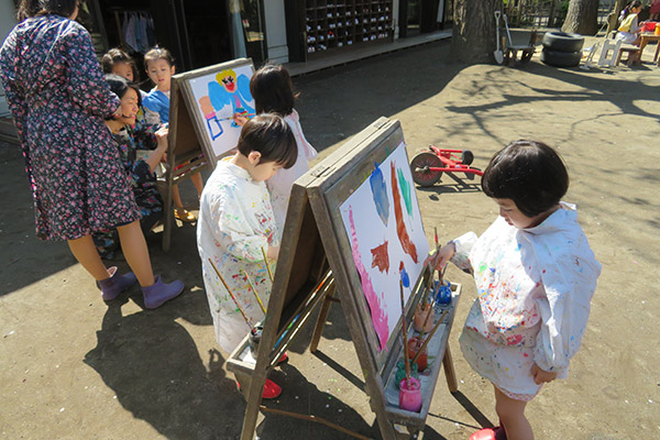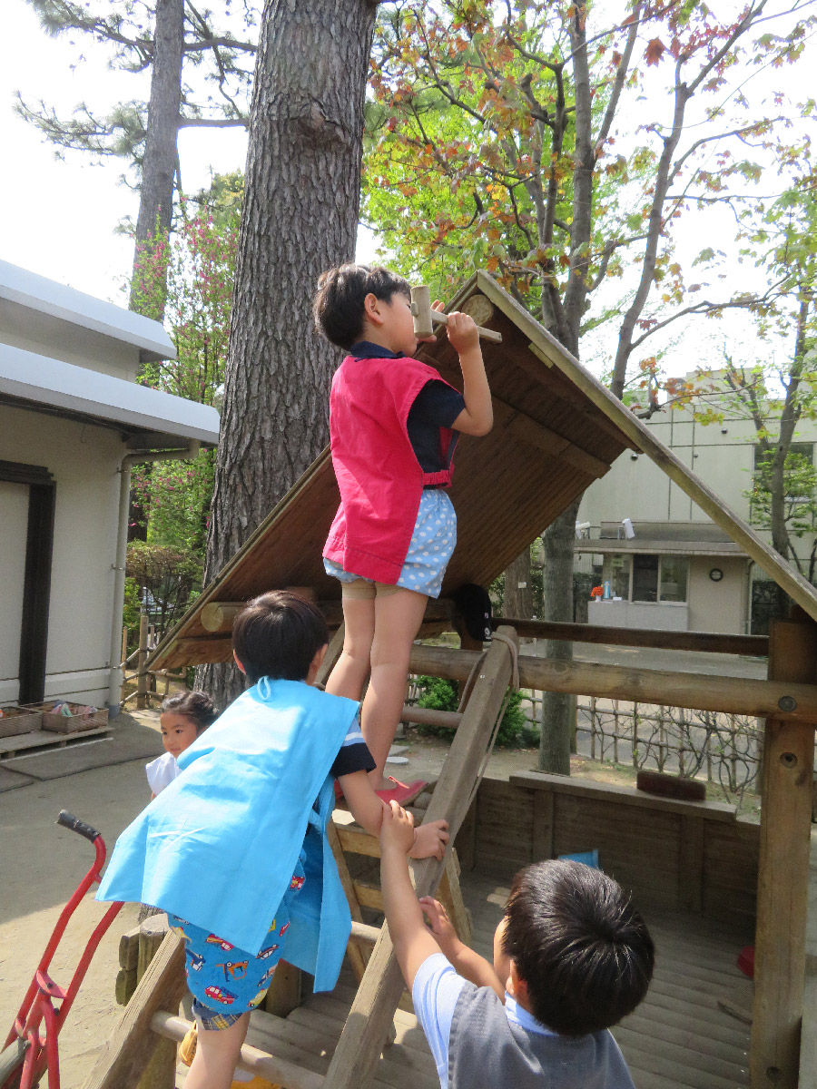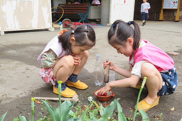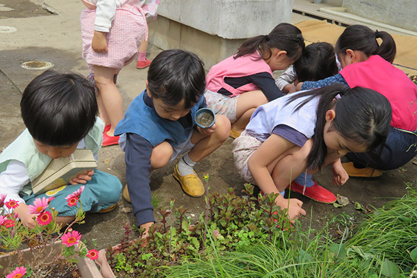 東洋英和幼稚園だより 4月の様子(その1) 何がいるの? ほら、あそこに・・・ 幼稚園の池に、カエルが遊びにきました 池の横では、虫探し。たくさんのダンゴムシがいる! おうちをきれいにお掃除 何ジュースにする?すり鉢に花びらとお水を入れて、ゴリゴリゴリ 今度は何を描こうかな? 下駄が上手になるように みんなで頑張ろう エイエイオー! 壊れてないかな? みんなの好きな木の家を点検中 前へ 一覧へ戻る 次へ