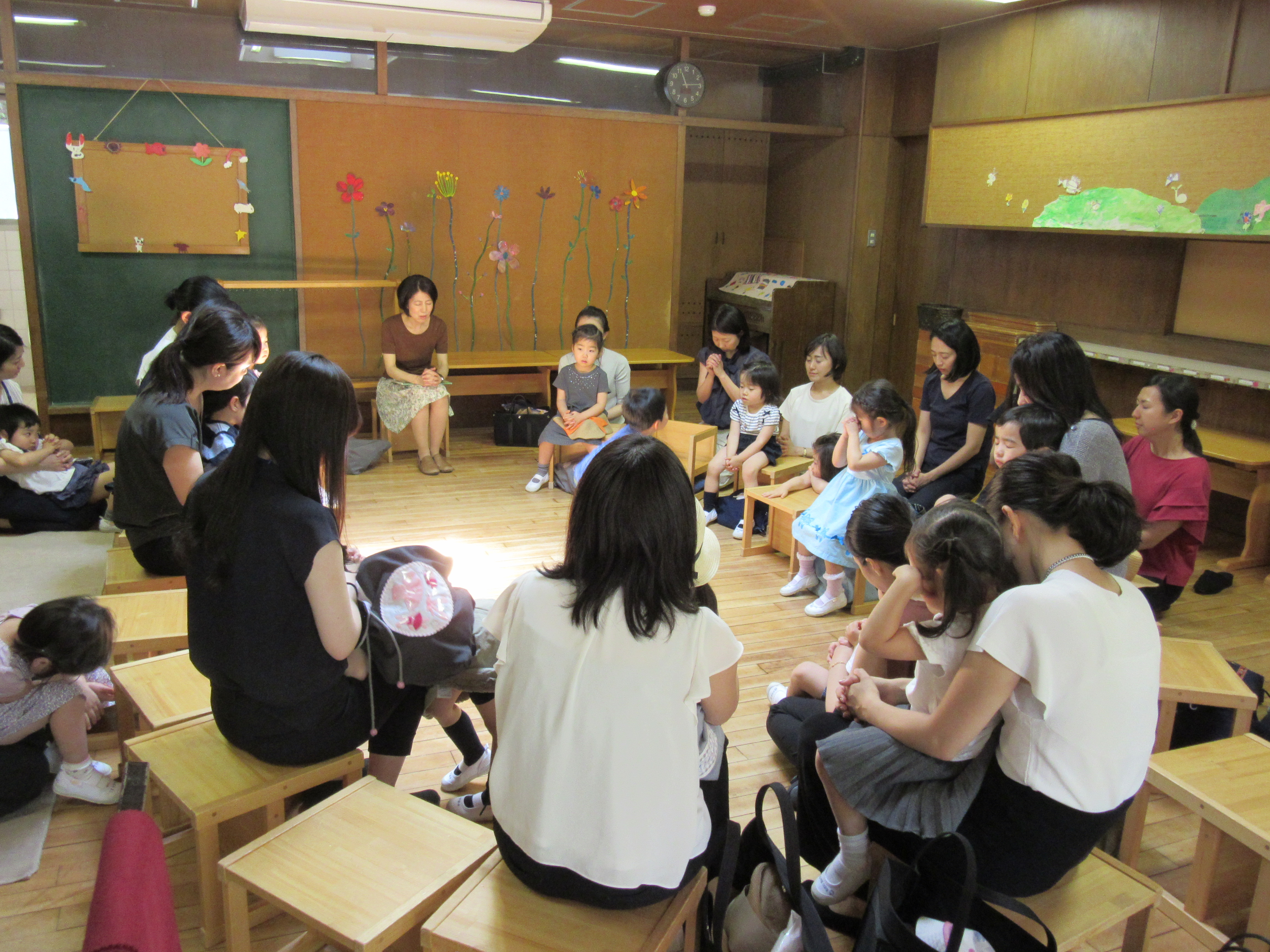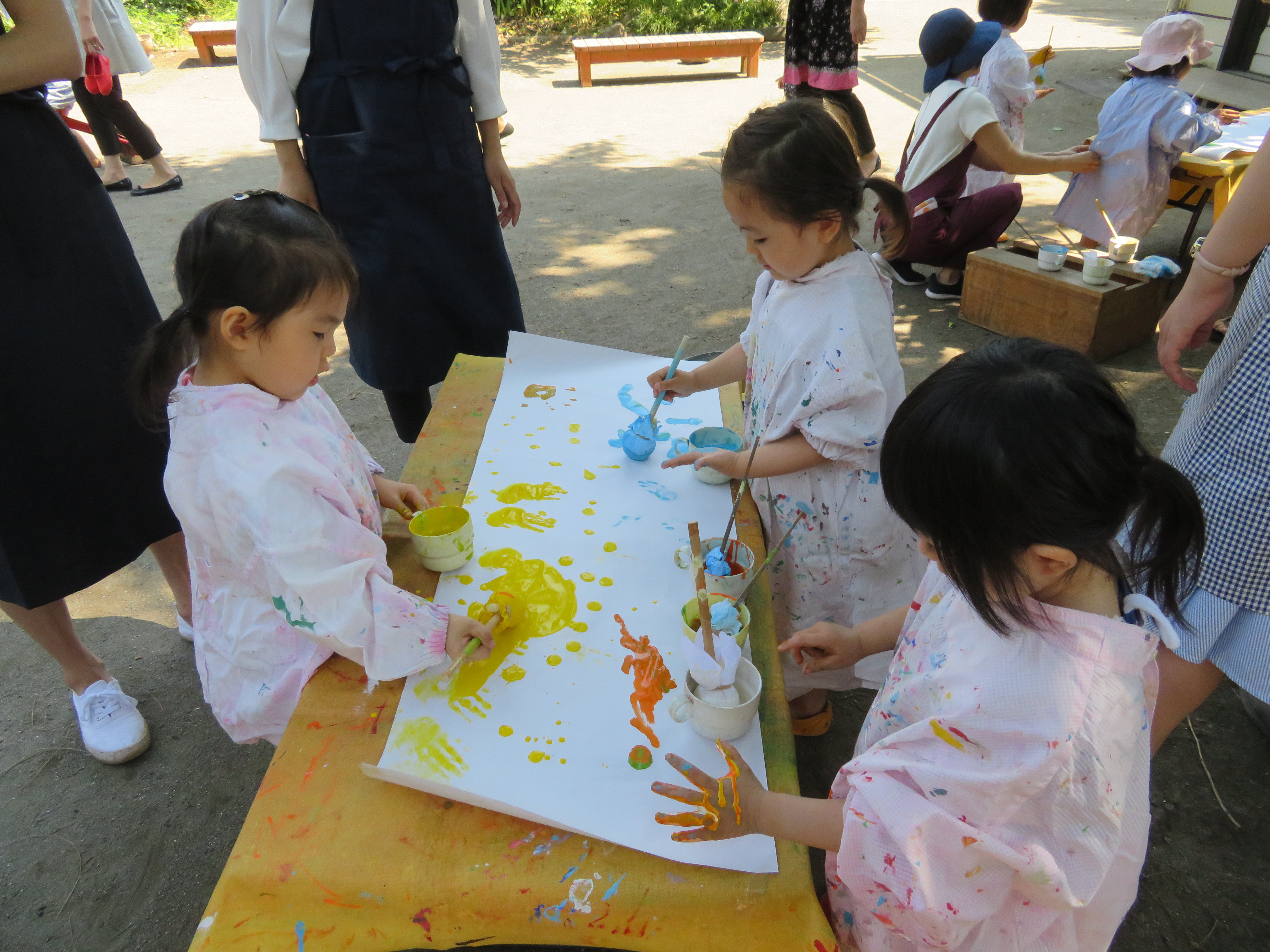 東洋英和幼稚園だより 母と子の集い 5月24日 年少組のお母様方が子どもたちと一緒に過ごしました。庭でおたまじゃくしを眺めたり、 お母様にも手伝っていただき、海を作ったり、 ポンポンポン・・・と絵の具でも遊びました。 ホールではピアノに合わせて楽しいひと時を過ごし、 おやつもいただきました。 今日は、お母様も一緒にお祈りをして帰りました。 前へ 一覧へ戻る 次へ