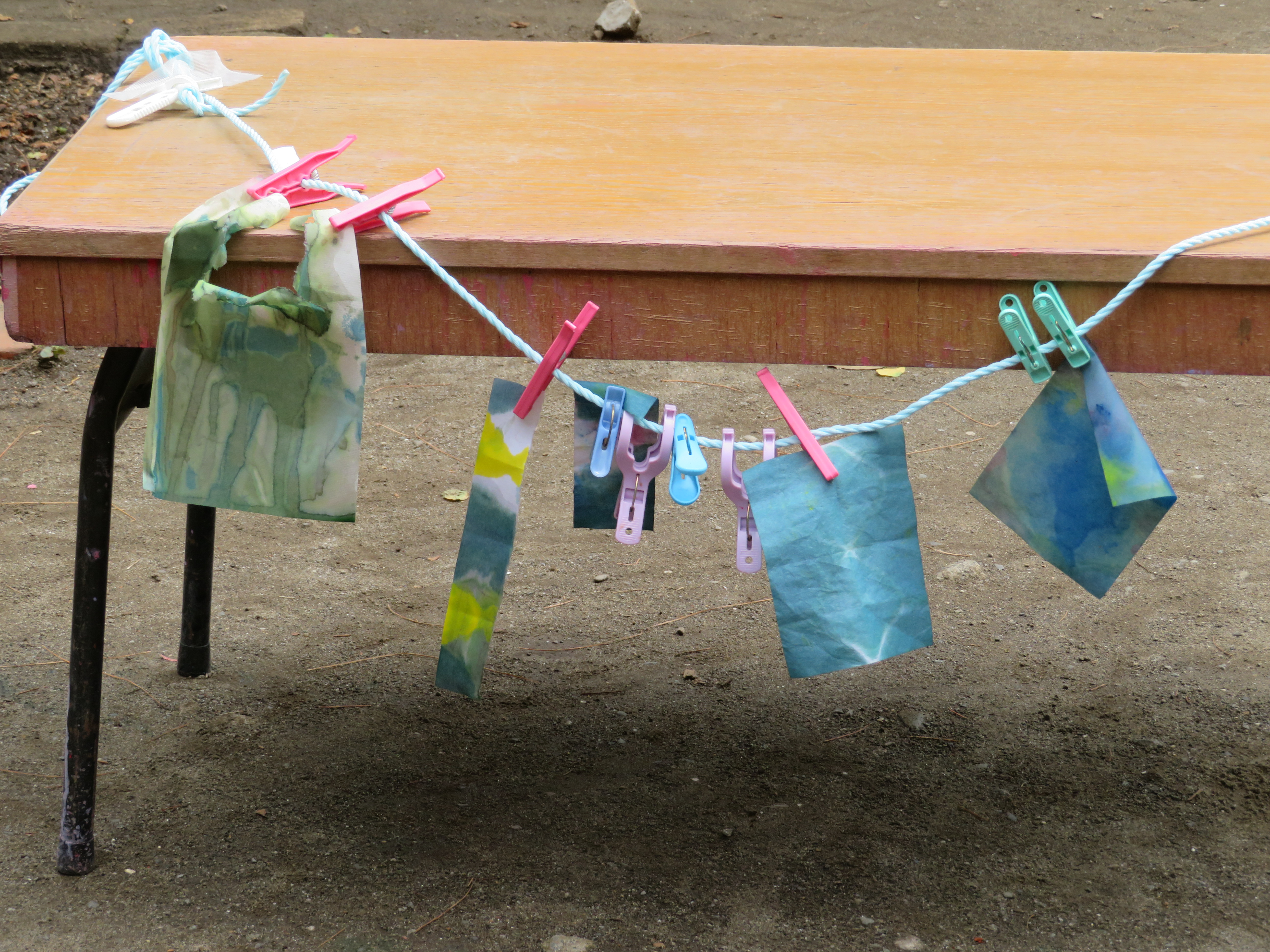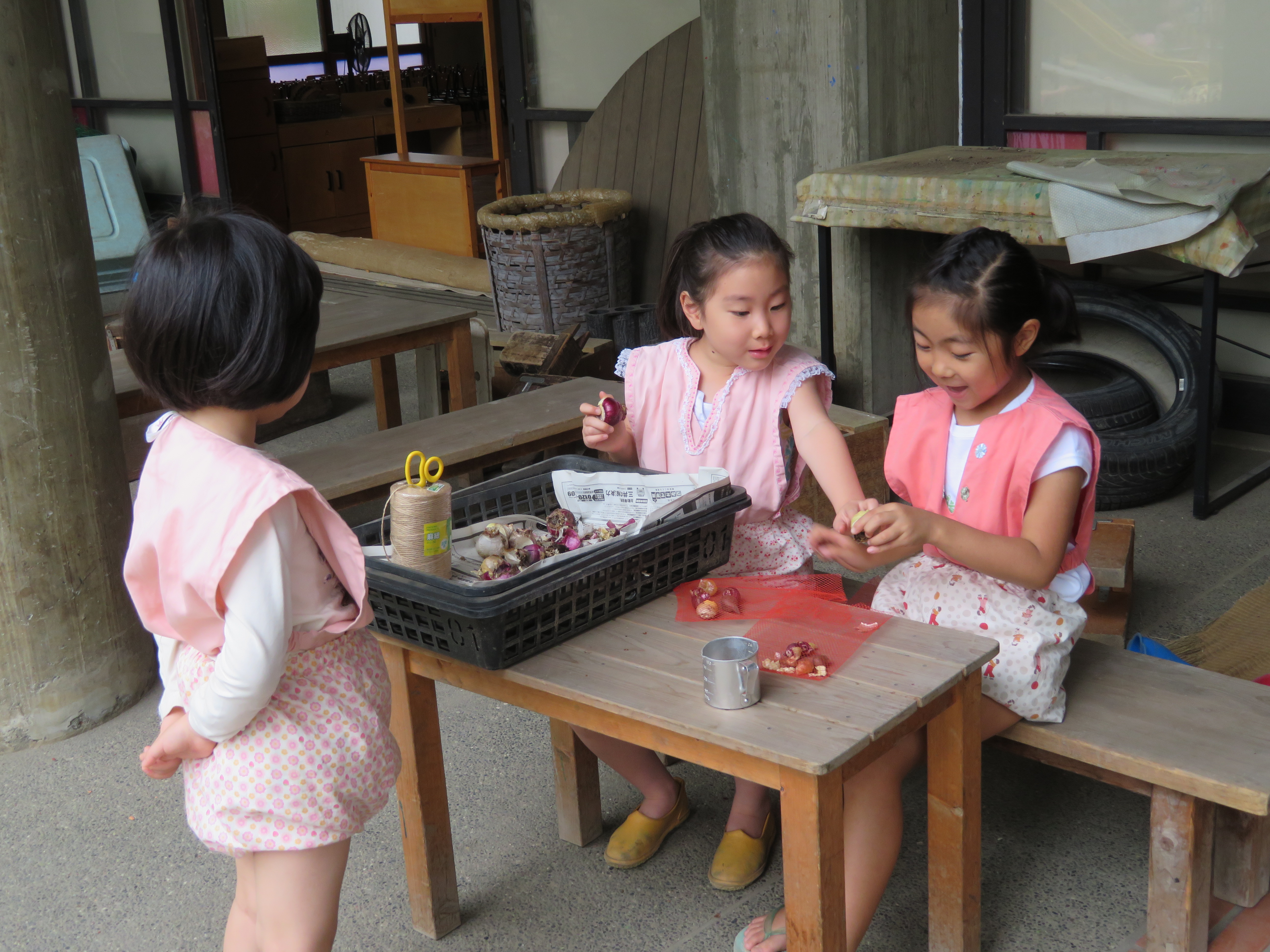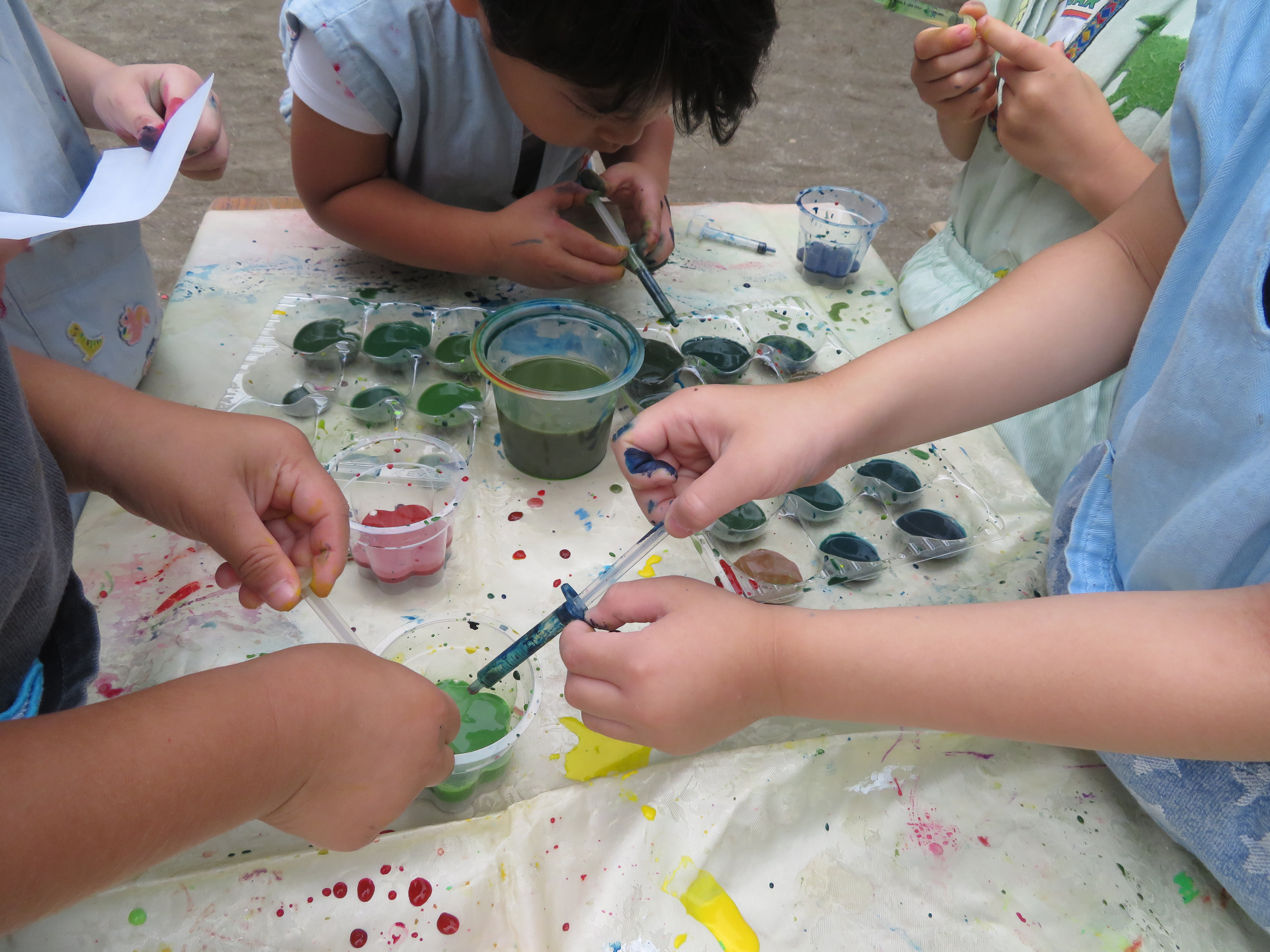 東洋英和幼稚園だより 6月の様子(その1) もっともっと大きくして、たくさん水を流そう! 「しー。赤ちゃん起きちゃうよ。」 色水実験に夢中の子どもたち。「今度は何色混ぜる?」 実験でできた絵の具で紙を染めてみると・・・ 「まってまってー!」 虫や蝶々を探す子どもたちがたくさんいます。 この幼虫、大きくなったら何になるのかな? カブトムシ? クワガタ? 子どもたちの夢は膨らみます。 「また冬になったら、植えようね」 この春に咲いていたチューリップの球根を干す準備中。 お母様方が、子どもたちに“布の絵本”(人形劇)を見せてくださいました。 前へ 一覧へ戻る 次へ