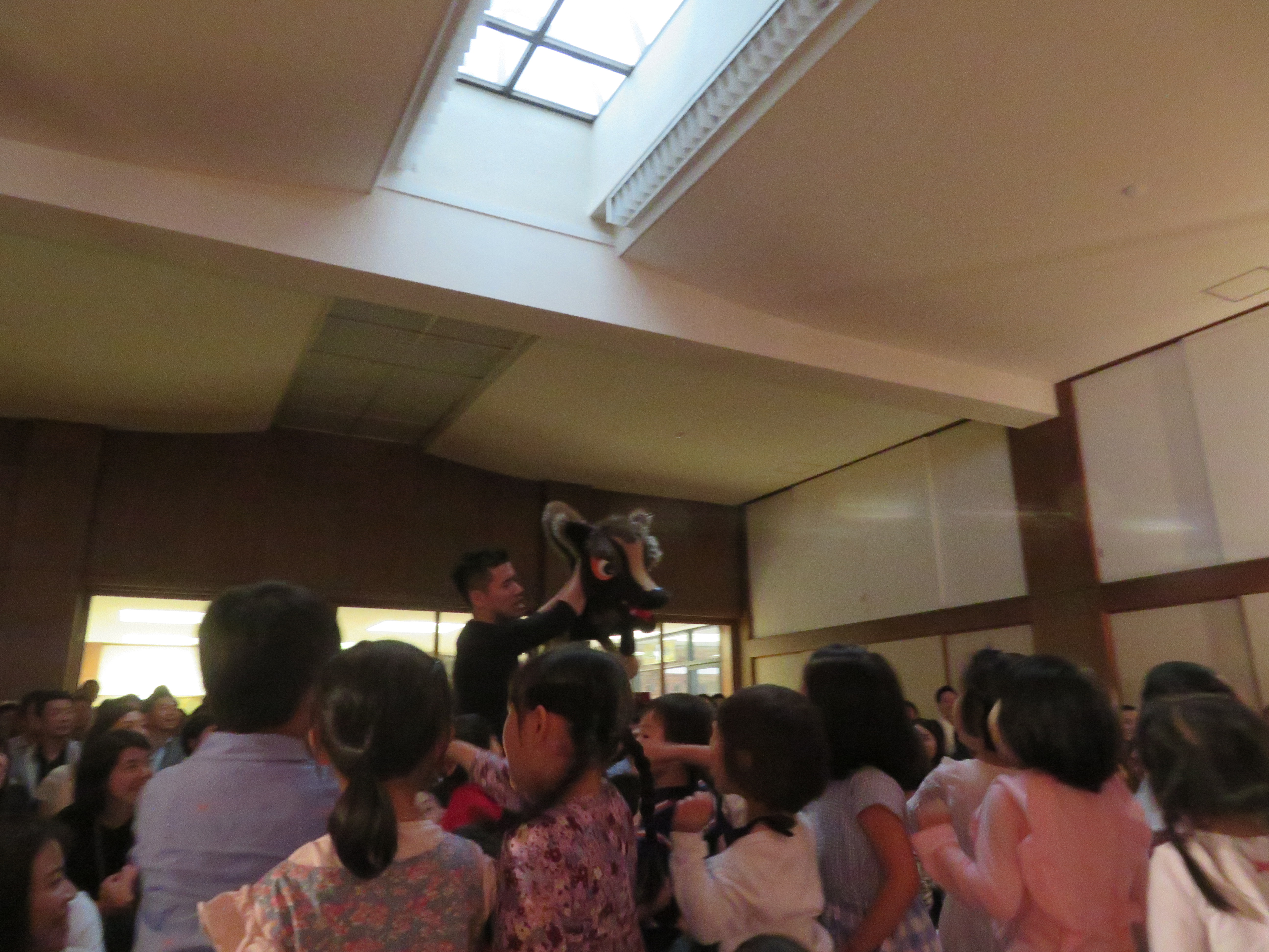 東洋英和幼稚園だより 父母の会 6月15日 平 常(たいら じょう)さんをお招きして、親子で人形劇を観ました。 人形劇「3匹のこぶた」 おおかみが観客席の方にもやってきて、子どもも大人も大騒ぎ!楽しい時となりました。 前へ 一覧へ戻る 次へ