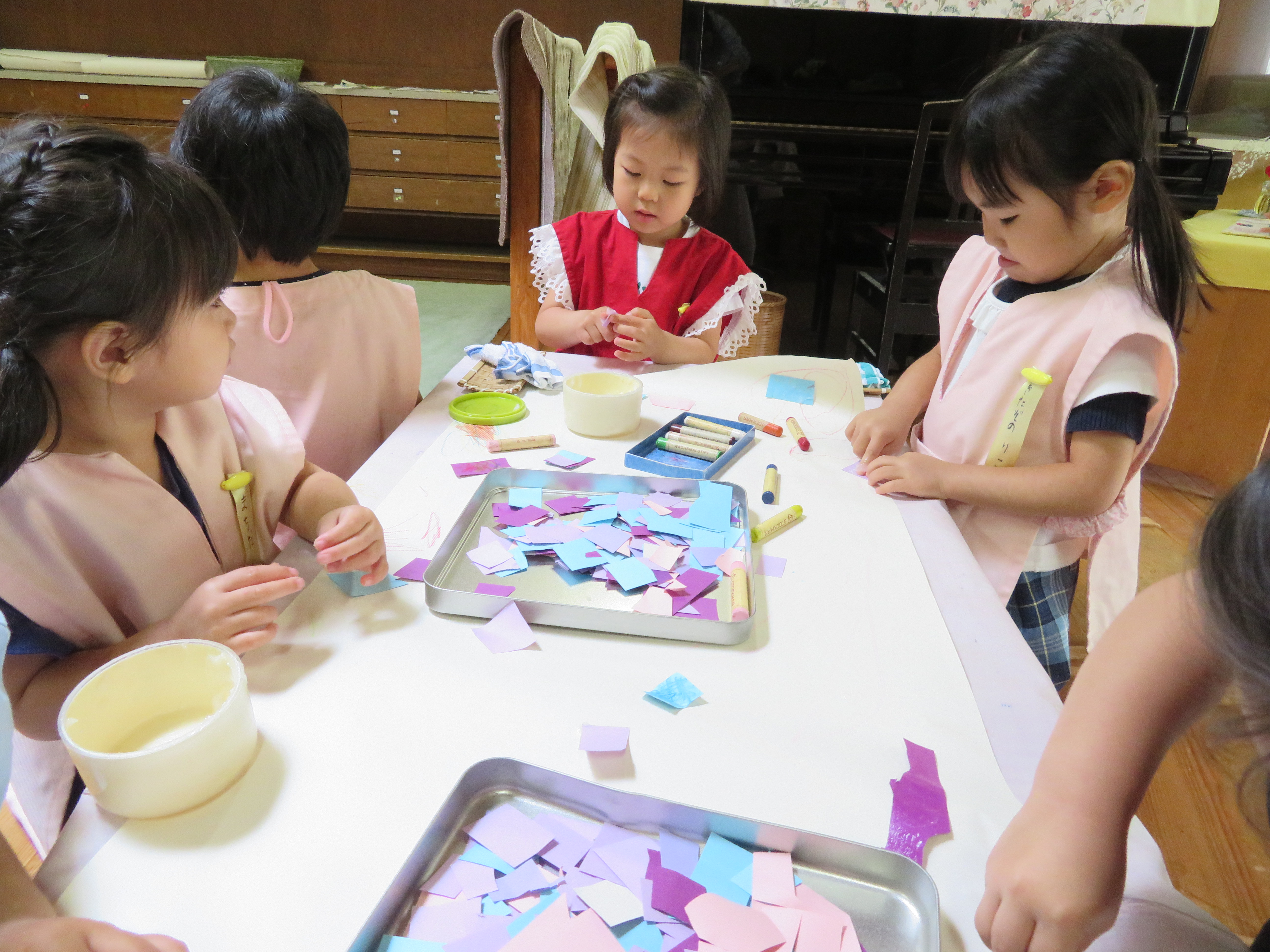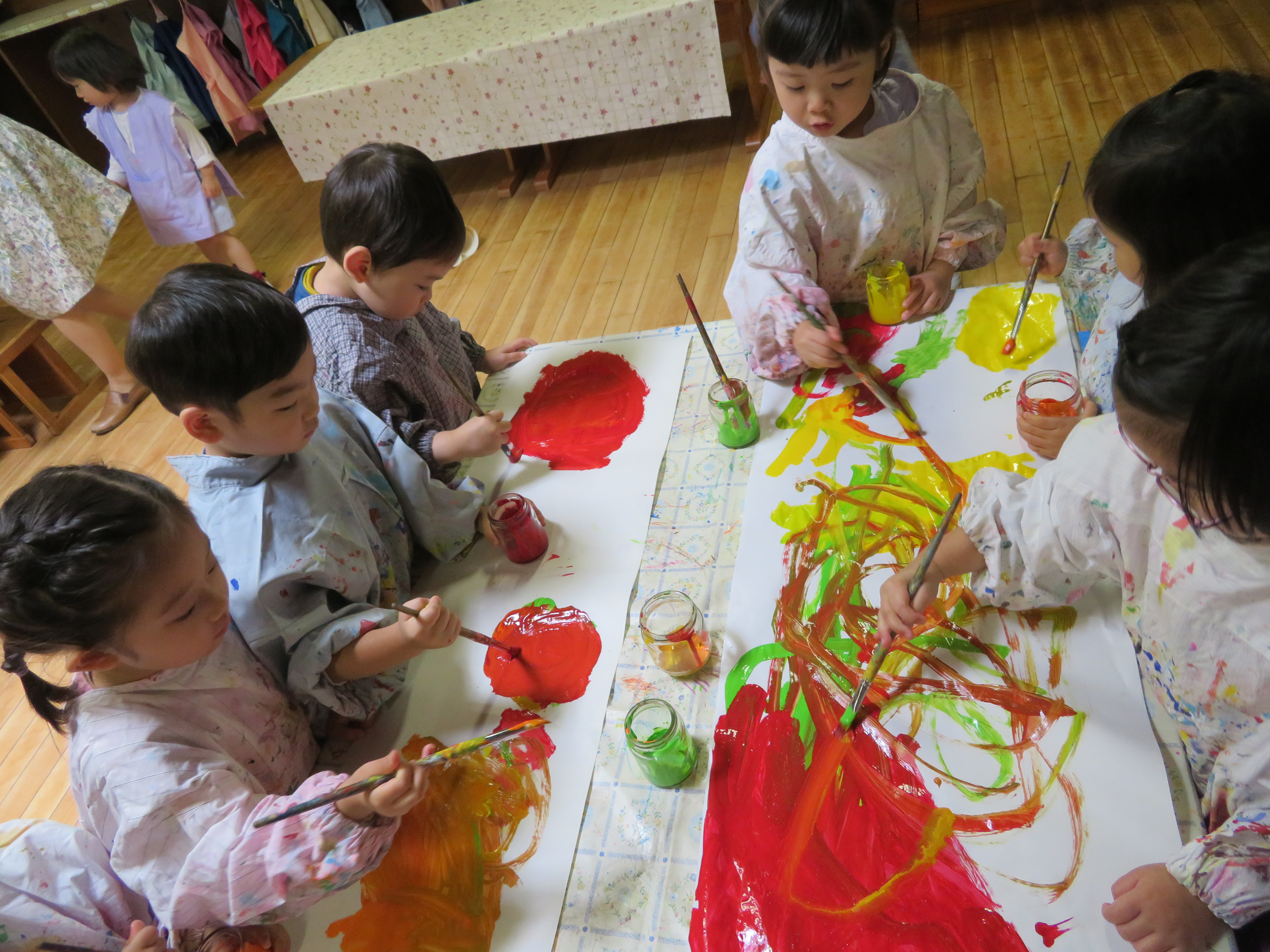 東洋英和幼稚園だより 6月の様子(その2) 2階建てのおうち。「いいながめ」 こちらには、公園ができました! 「ちょん ちょん すー」 今度は何色にしようかな? 金魚、何匹すくえるかな? ちょきん ちょきん とはさみで切って・・・ のりで ぺたぺた。 大きな紙に自由に貼ります あっ!! オレンジになった! 「おなかすいたー」 みんなで食べるとおいしいね! 前へ 一覧へ戻る 次へ