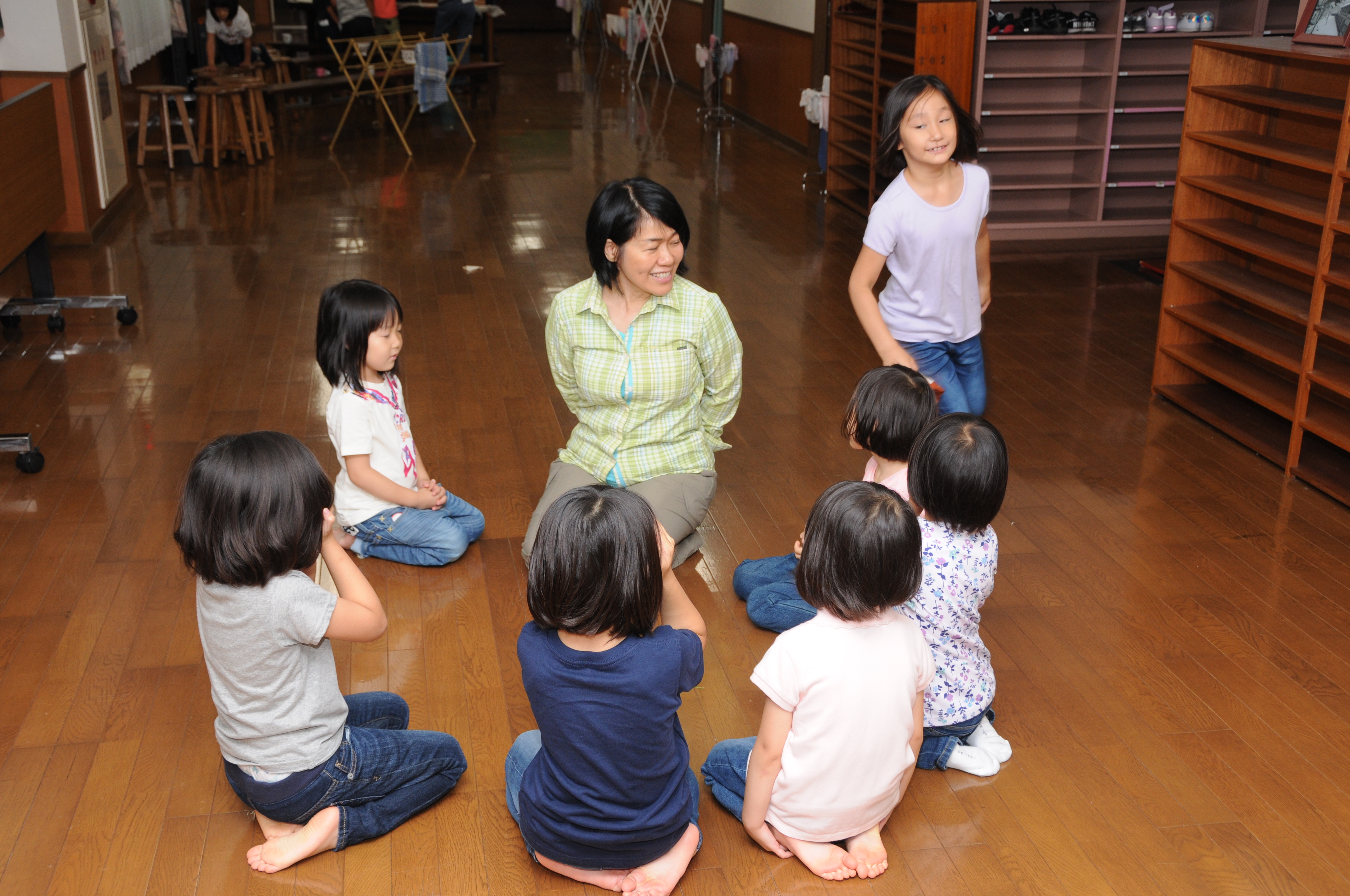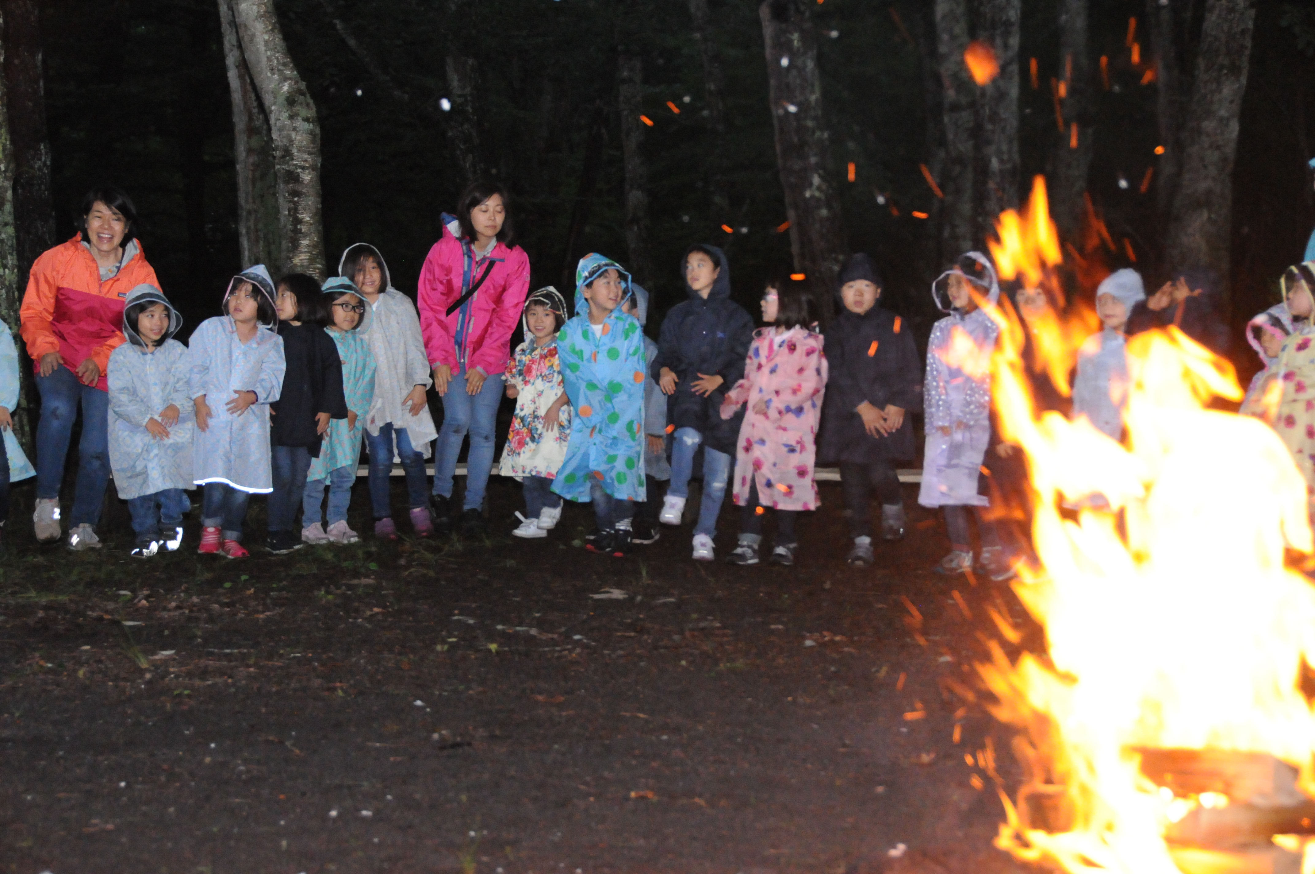 東洋英和幼稚園だより キャンプ(その2) 2日目は雨のため、部屋の中でバスケットをしたり、 サッカーをしたり、 ハンカチ落しなどをして過ごしました。 追分寮の近くのお店のおばあ様が来てくださり、お家にお土産を買うこともできました。 午後は晴れたので散歩に行き、 近くの公園であそびました。 散歩から戻り、庭では小石や枝で“ありのようちえん”を作り、 夜には小雨が降る中、レインコートを着てキャンプファイヤーをしました。 前へ 一覧へ戻る 次へ