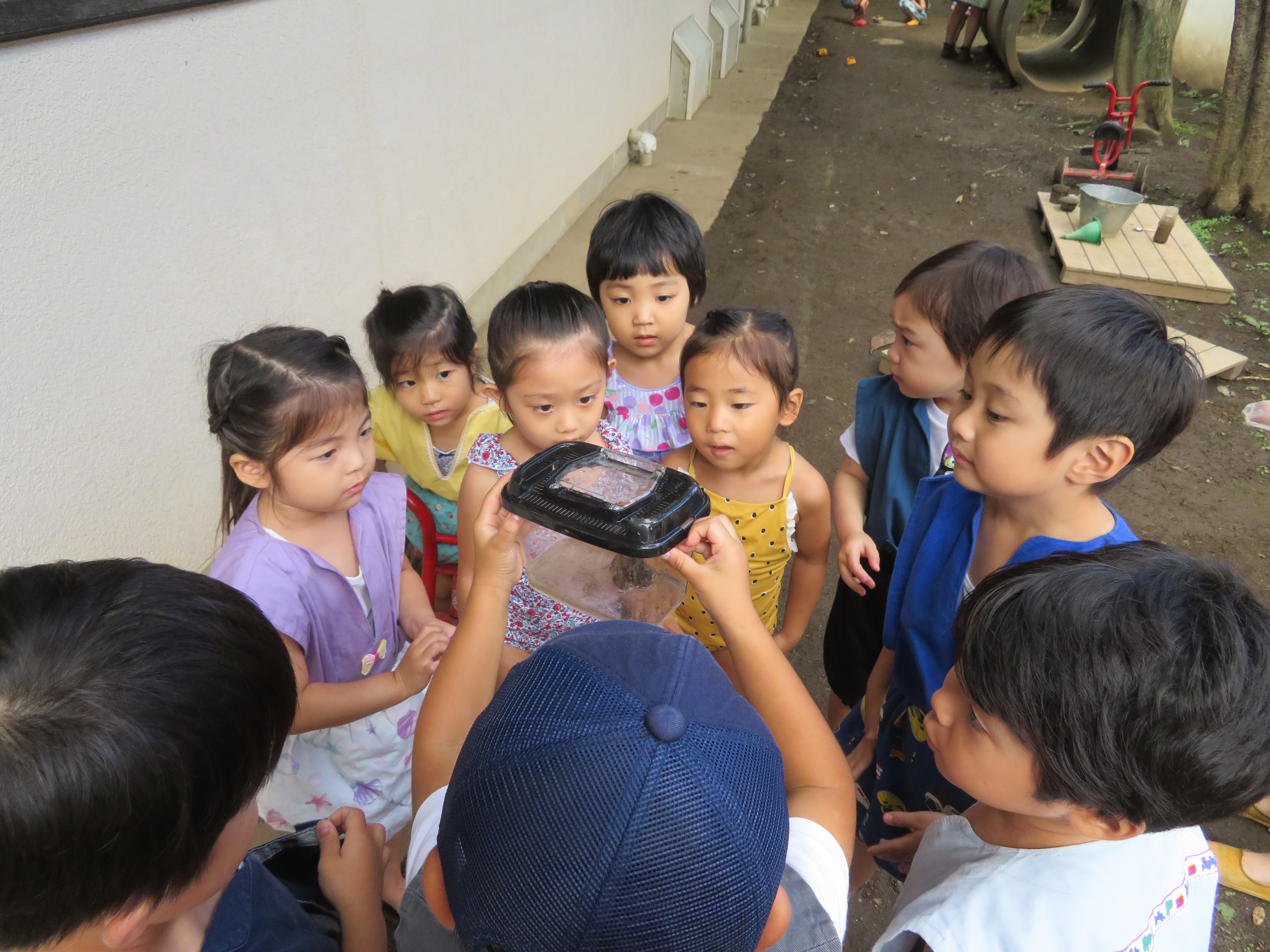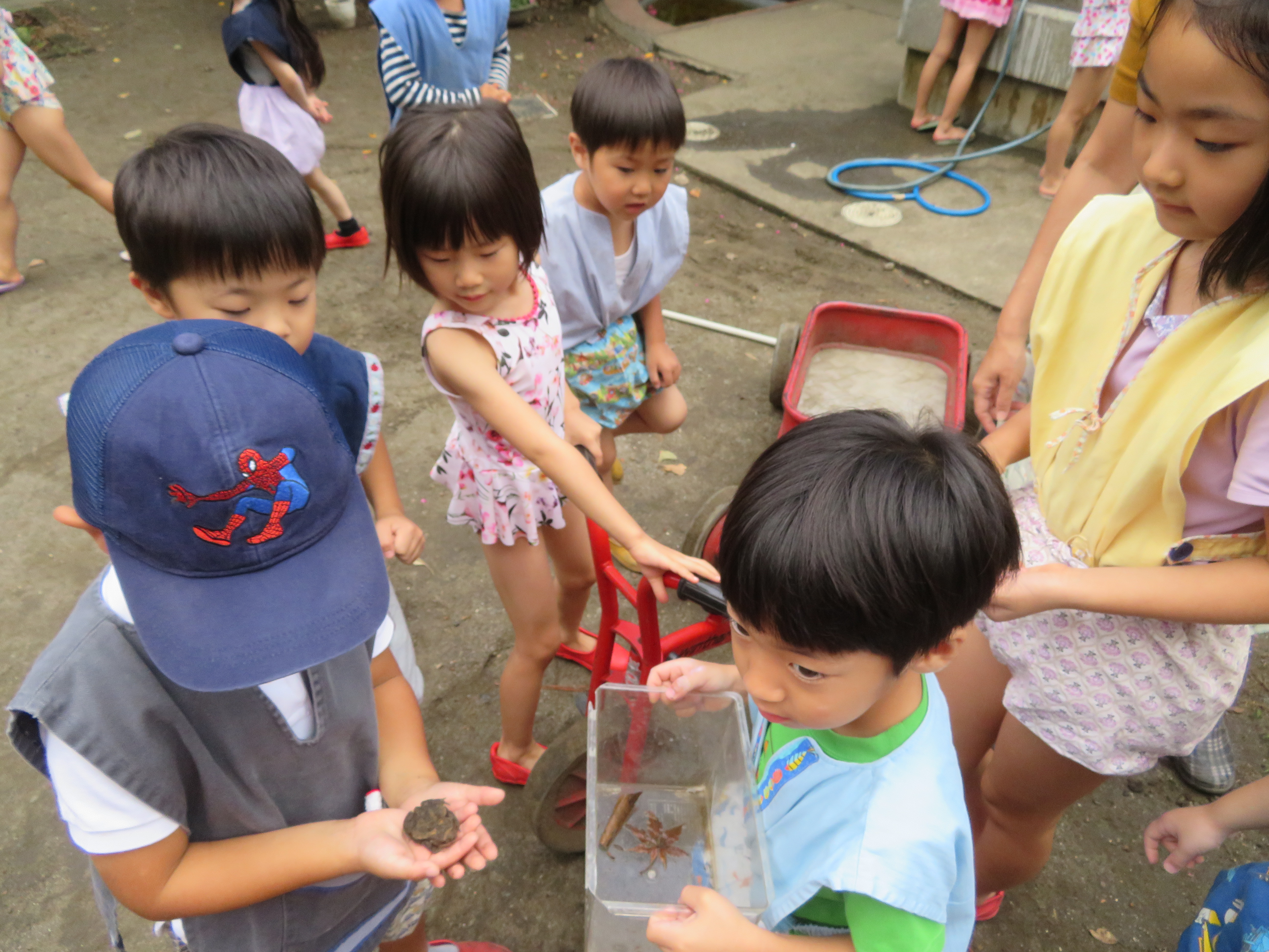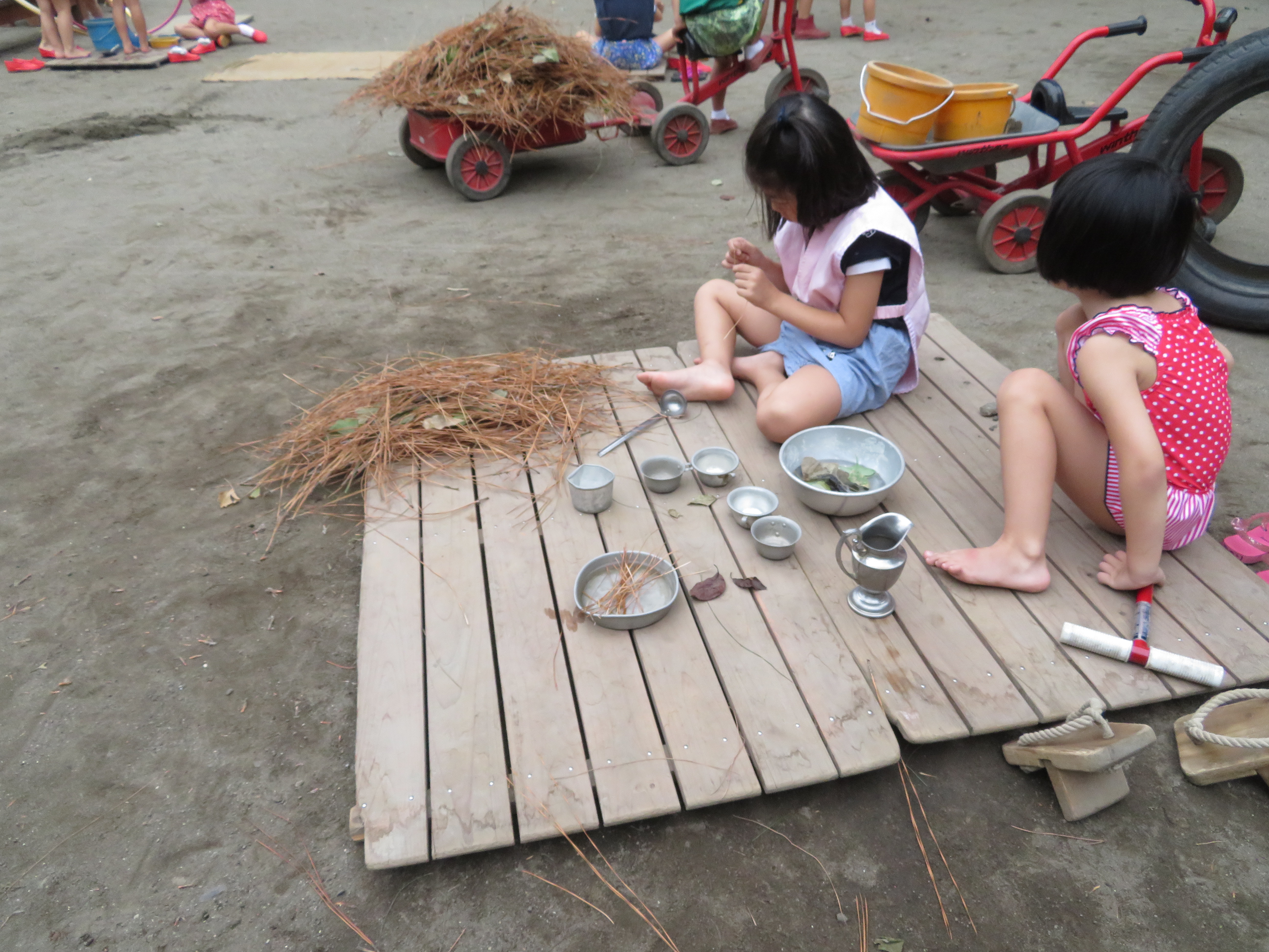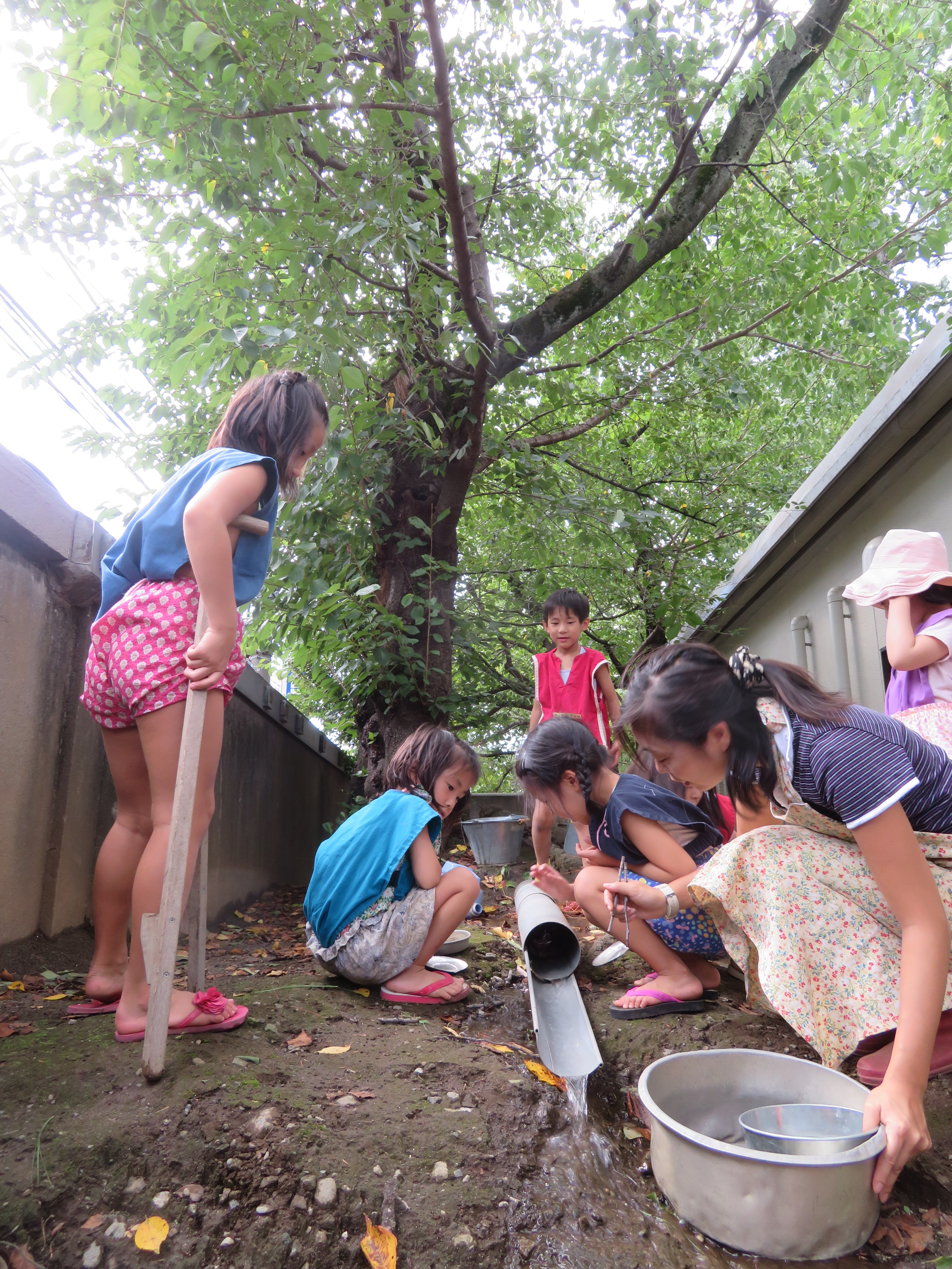 東洋英和幼稚園だより 9月の様子(その1) 布をまとって、ショーのはじまり。お客さんが集まってきました 松葉のごちそう、何にしようかな?おそば?スパゲッティ? こちらでは、松葉の流しそうめんがはじまりました いたいた!カエルがいた!あのおたまじゃくしかな・・・? ほら、見て!カエルだよ! カップケーキがたくさんできたね。食べる?お店にする? 前へ 一覧へ戻る 次へ