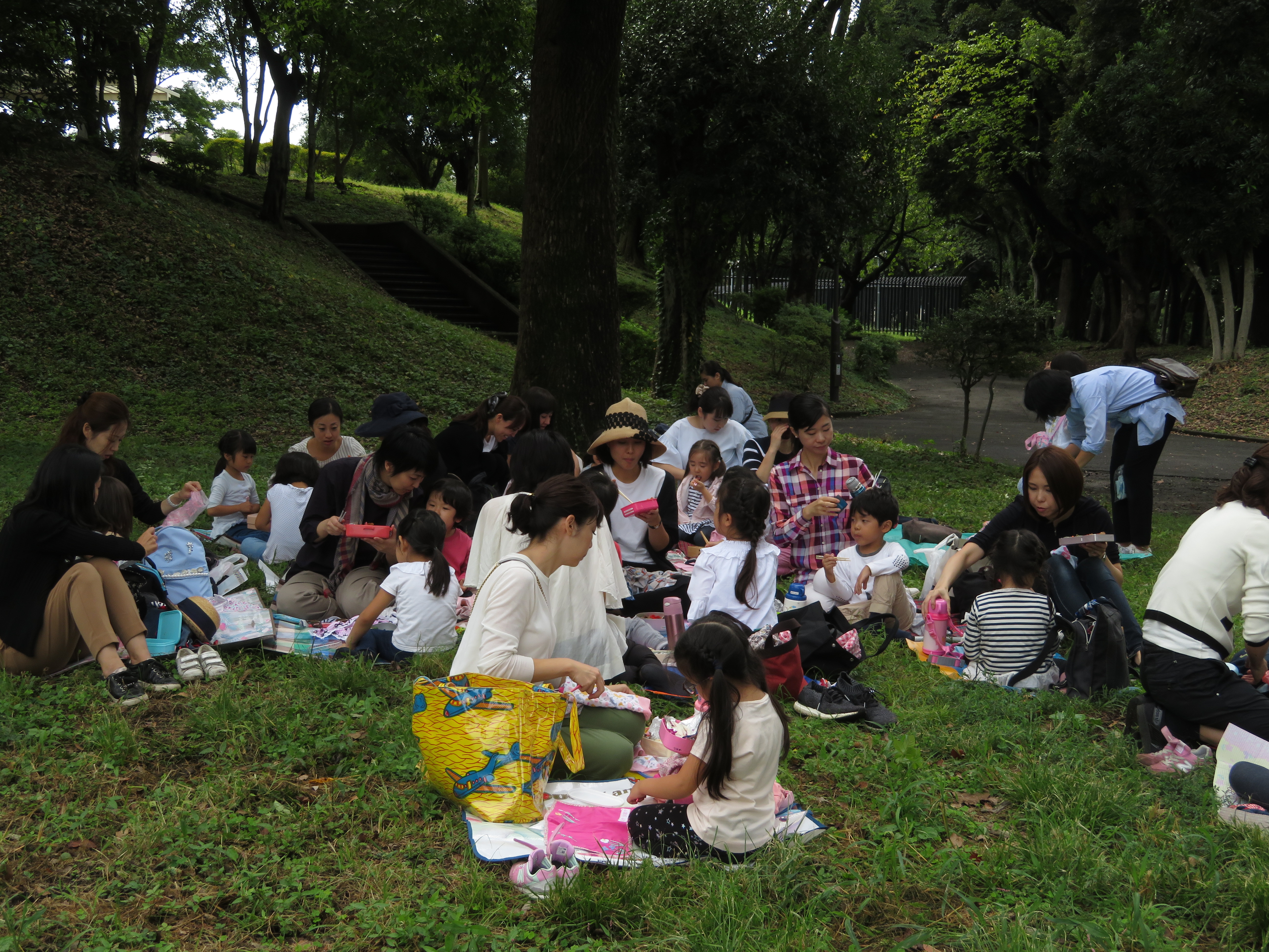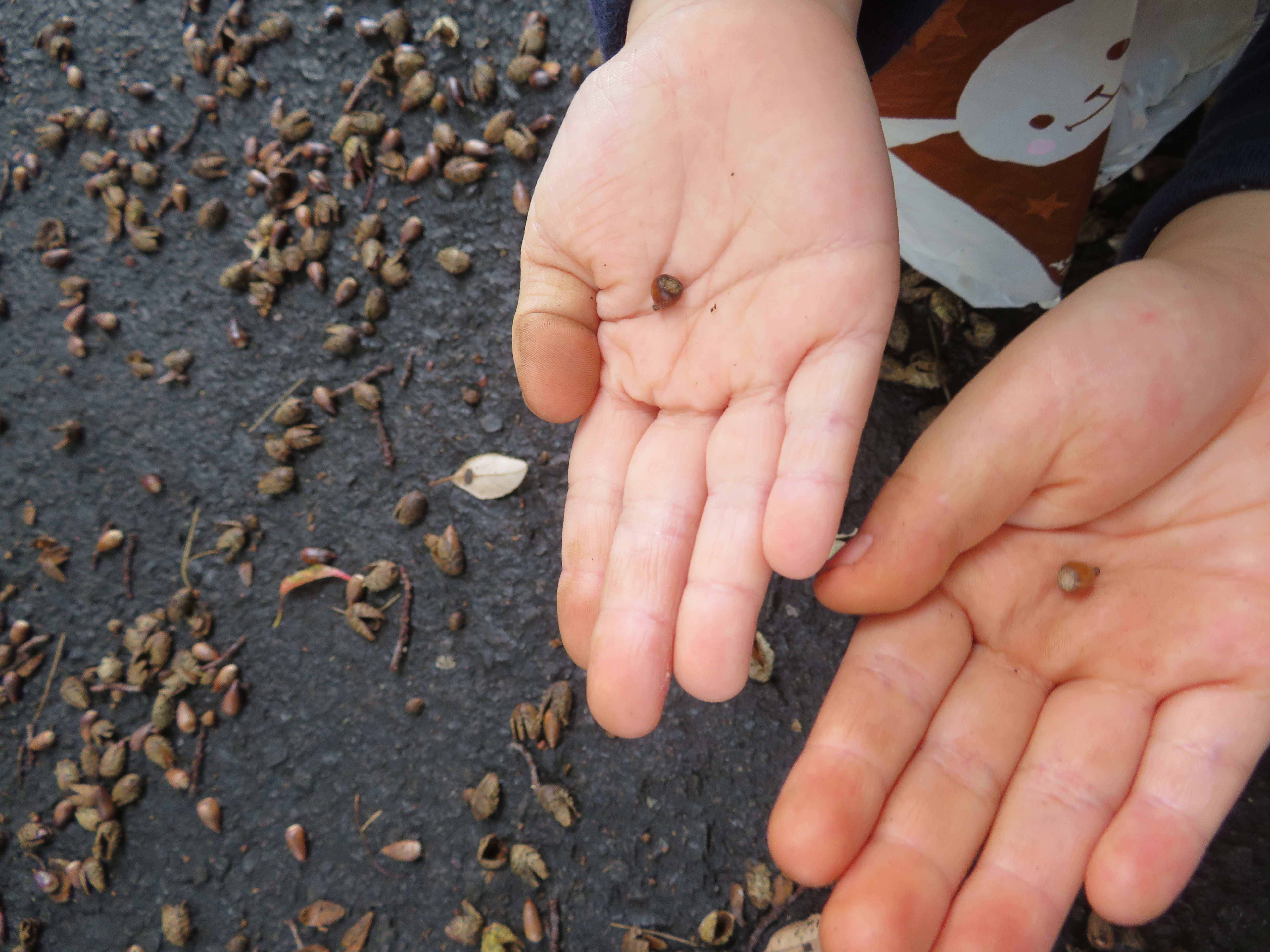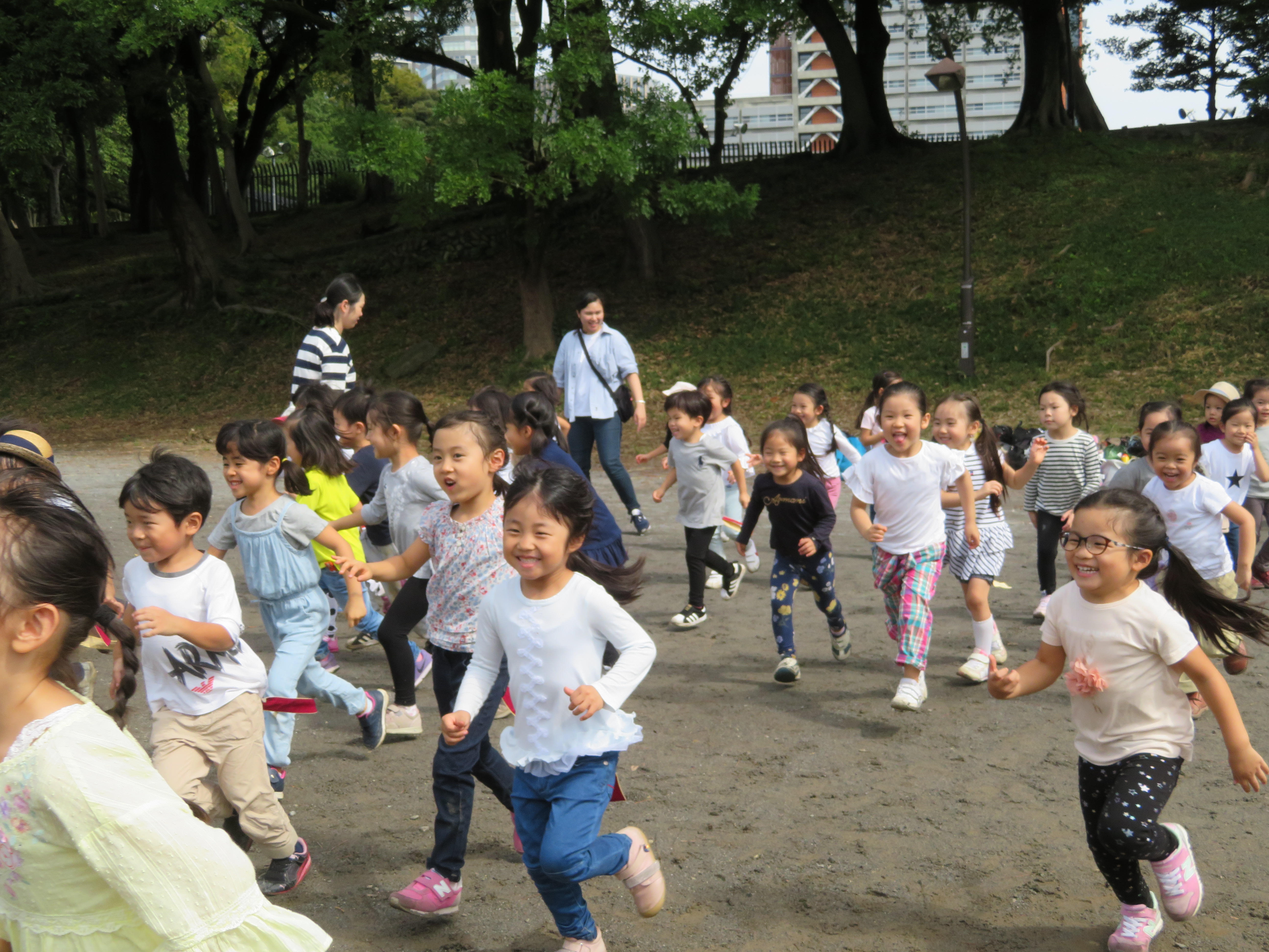 東洋英和幼稚園だより 園外保育 どんぐり拾い 10月8日(年中組) 福島にある幼稚園へどんぐりを送るために、お母様と共に、幼稚園から近くの公園へ出かけどんぐり拾いをしました しゃがみこんで、1つ1つ拾っていきました 足の踏み場もないほどたくさん落ちています 葉をかきわけてみると、出てくる出てくる お母様も夢中になって探しています たくさん拾った後は、お弁当をいただき 鬼ごっこなどもして楽しみました 「赤ちゃんどんぐりも送ろう」とどのようにして送るか相談しています 前へ 一覧へ戻る 次へ