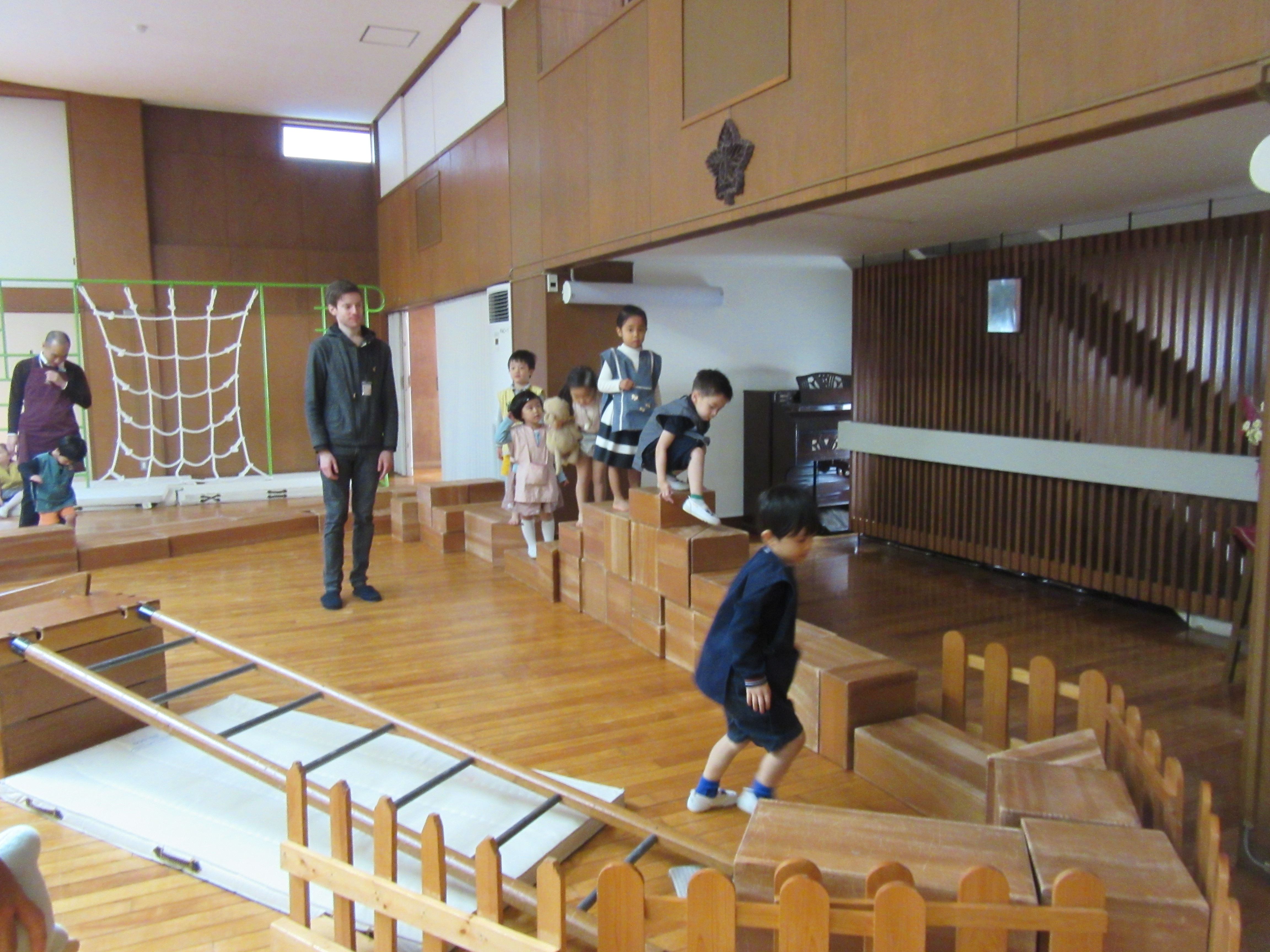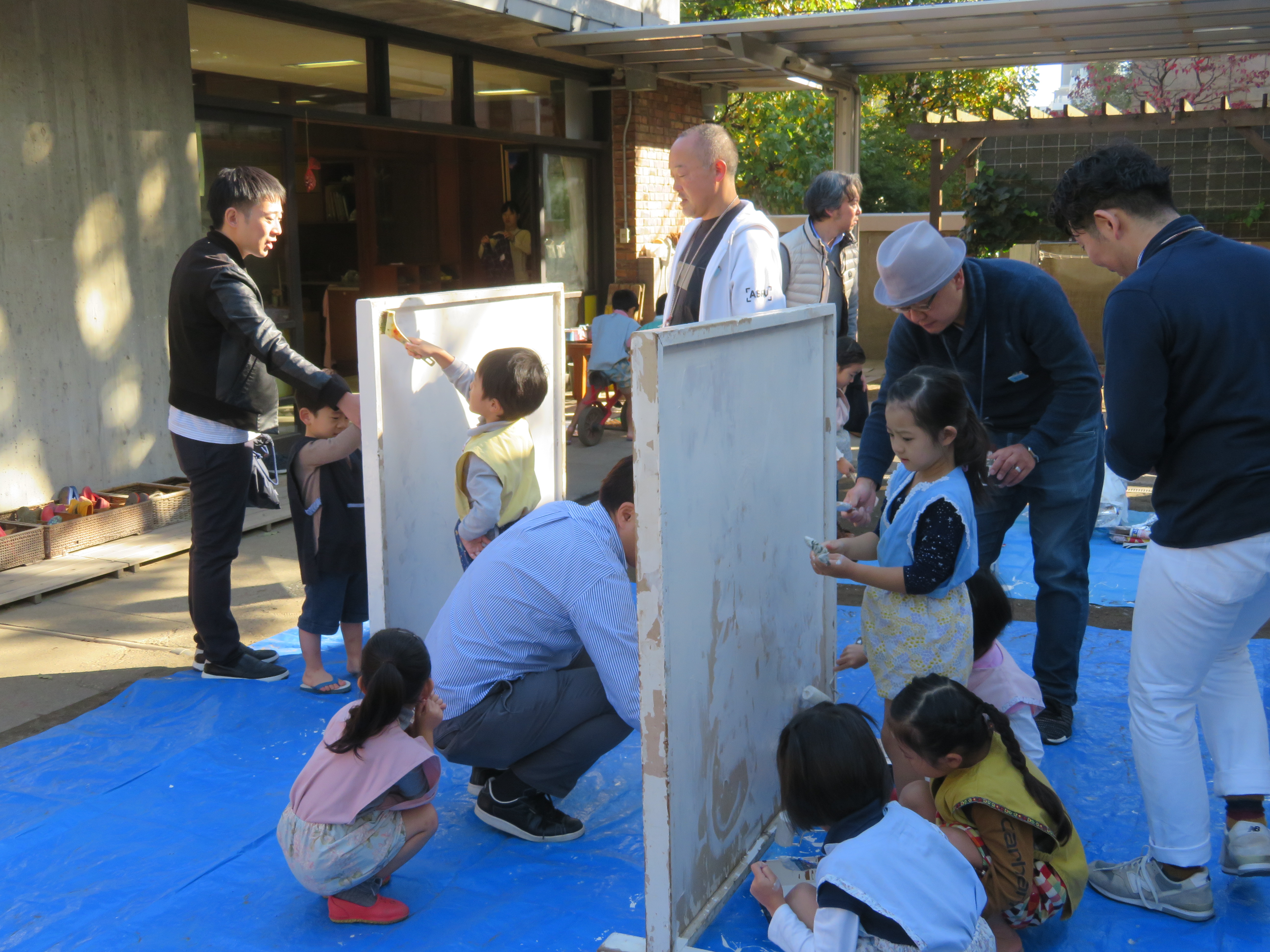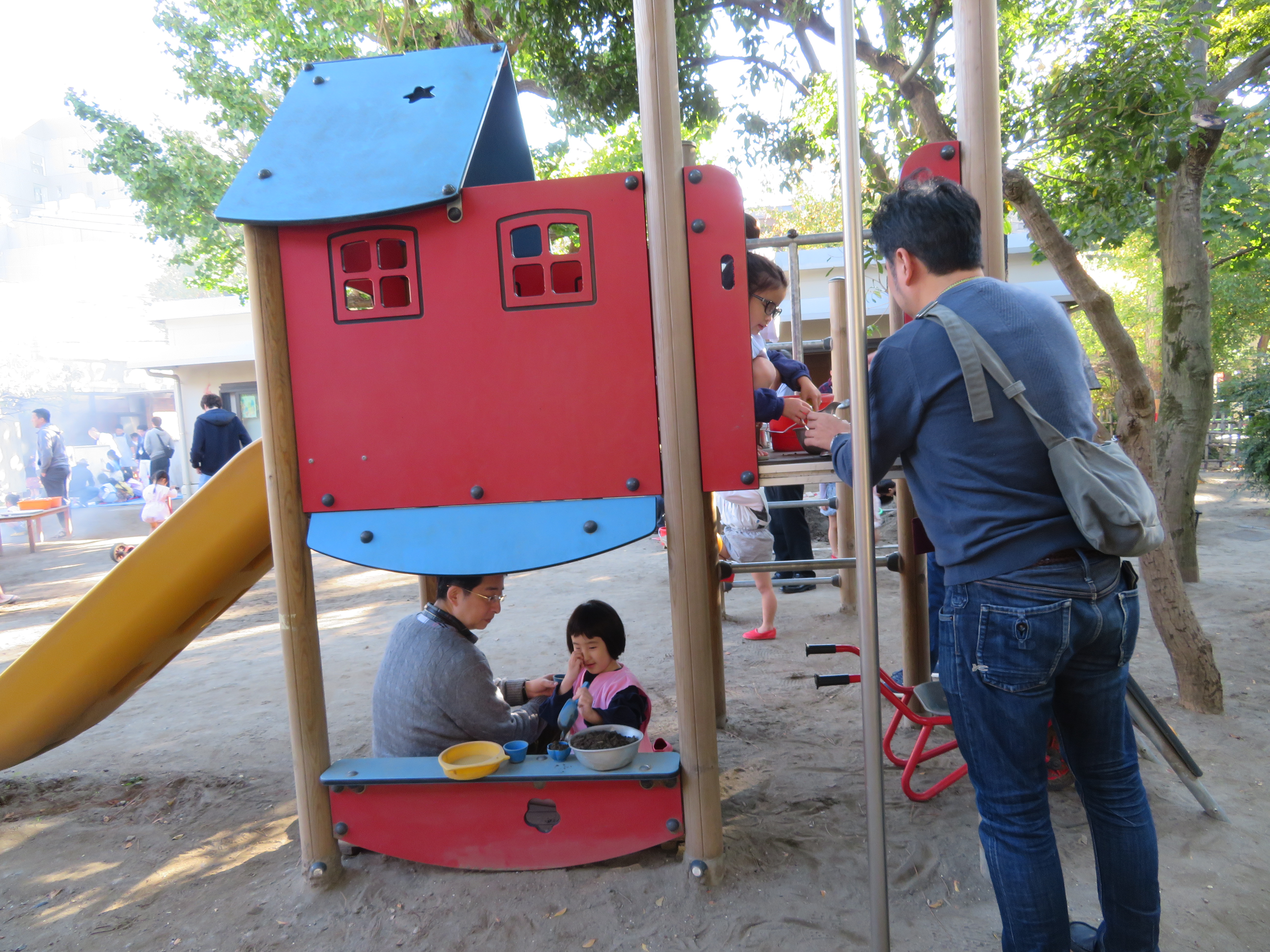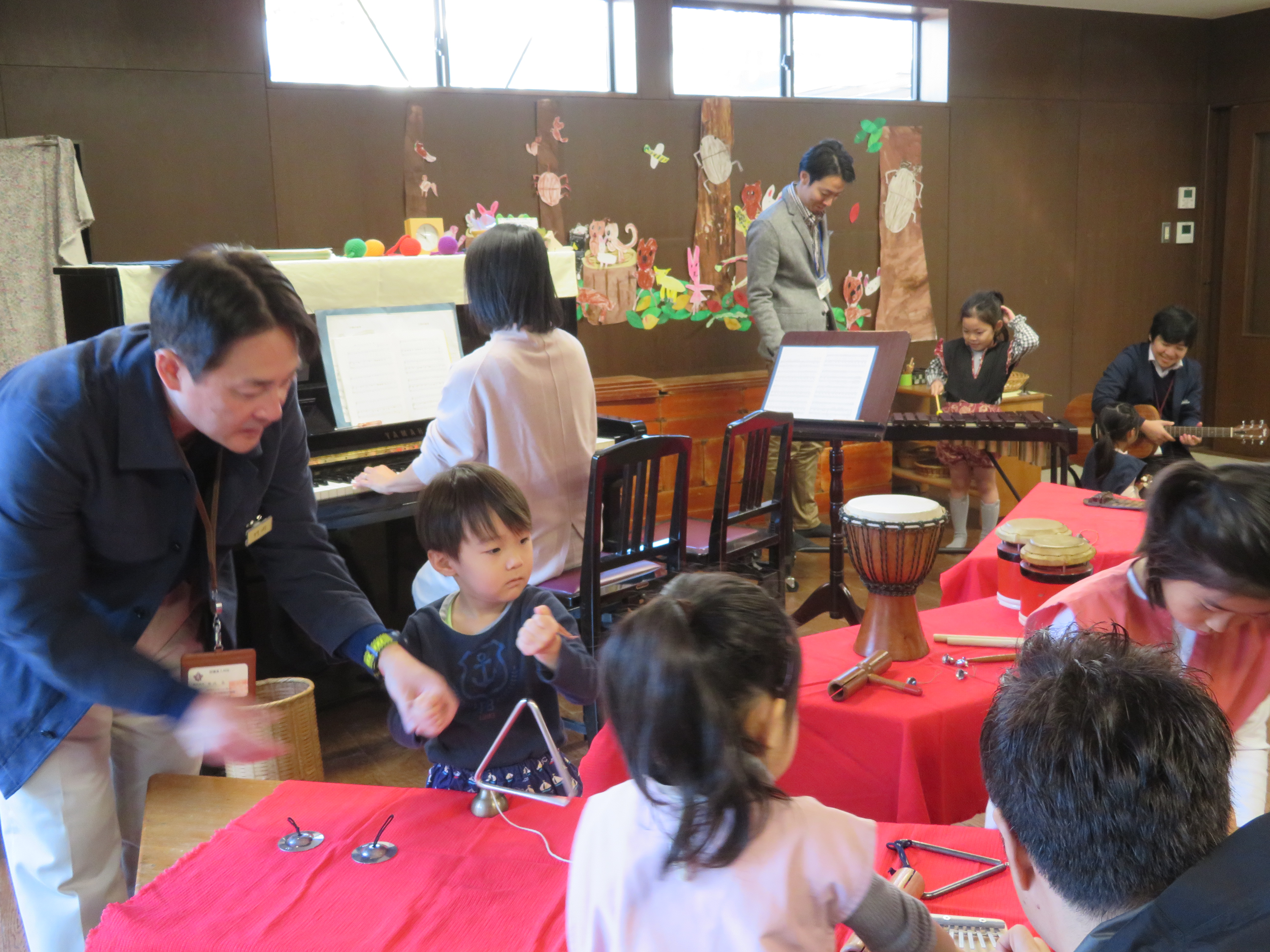 東洋英和幼稚園だより 父と遊ぶ日 11月16日 (その1) 気持ちの良い土曜日、お父様と幼稚園で遊びました いつも子どもたちが遊んでいるように、お父様も小さな遊具で一緒に過ごします ペンキを塗ったり ホッピングに乗る手伝いをしてくださったり 室内では、大きな積み木も運ぶ事手伝ってくださいました 他にも、汽車や小さな積み木でじっくりと遊んだり 楽器を思い思いに奏で、部屋中、素敵な音色でいっぱいになりました 前へ 一覧へ戻る 次へ