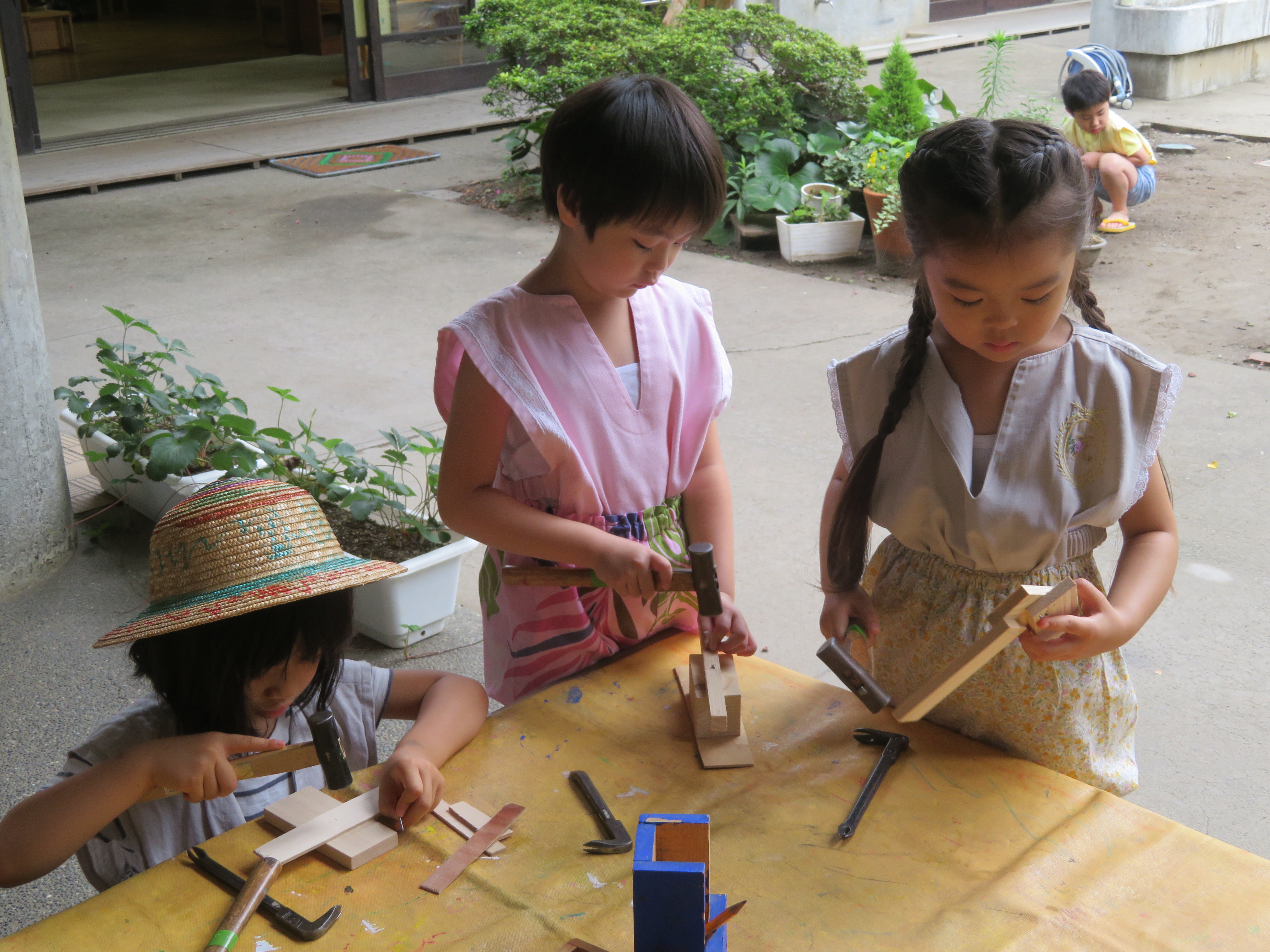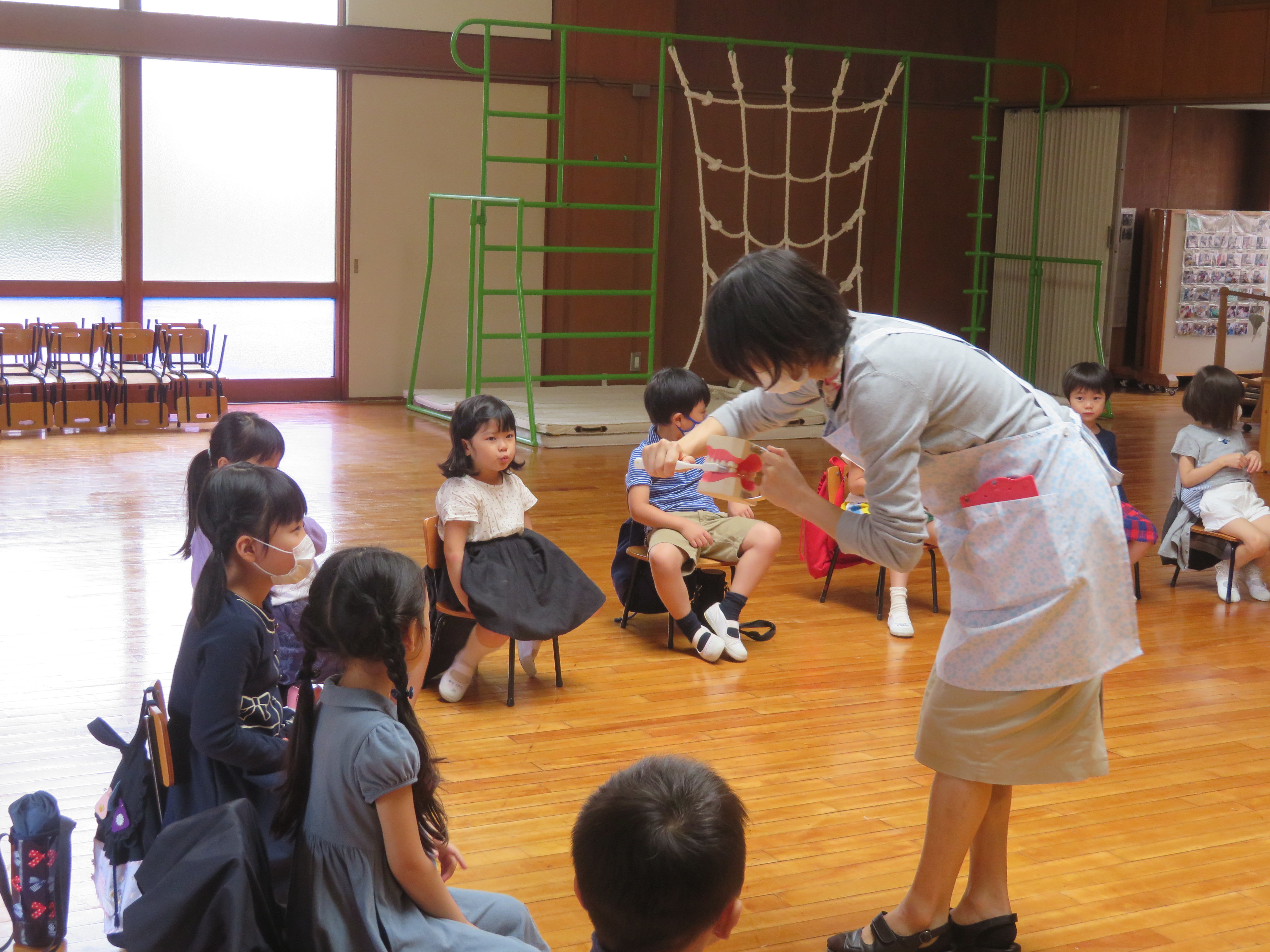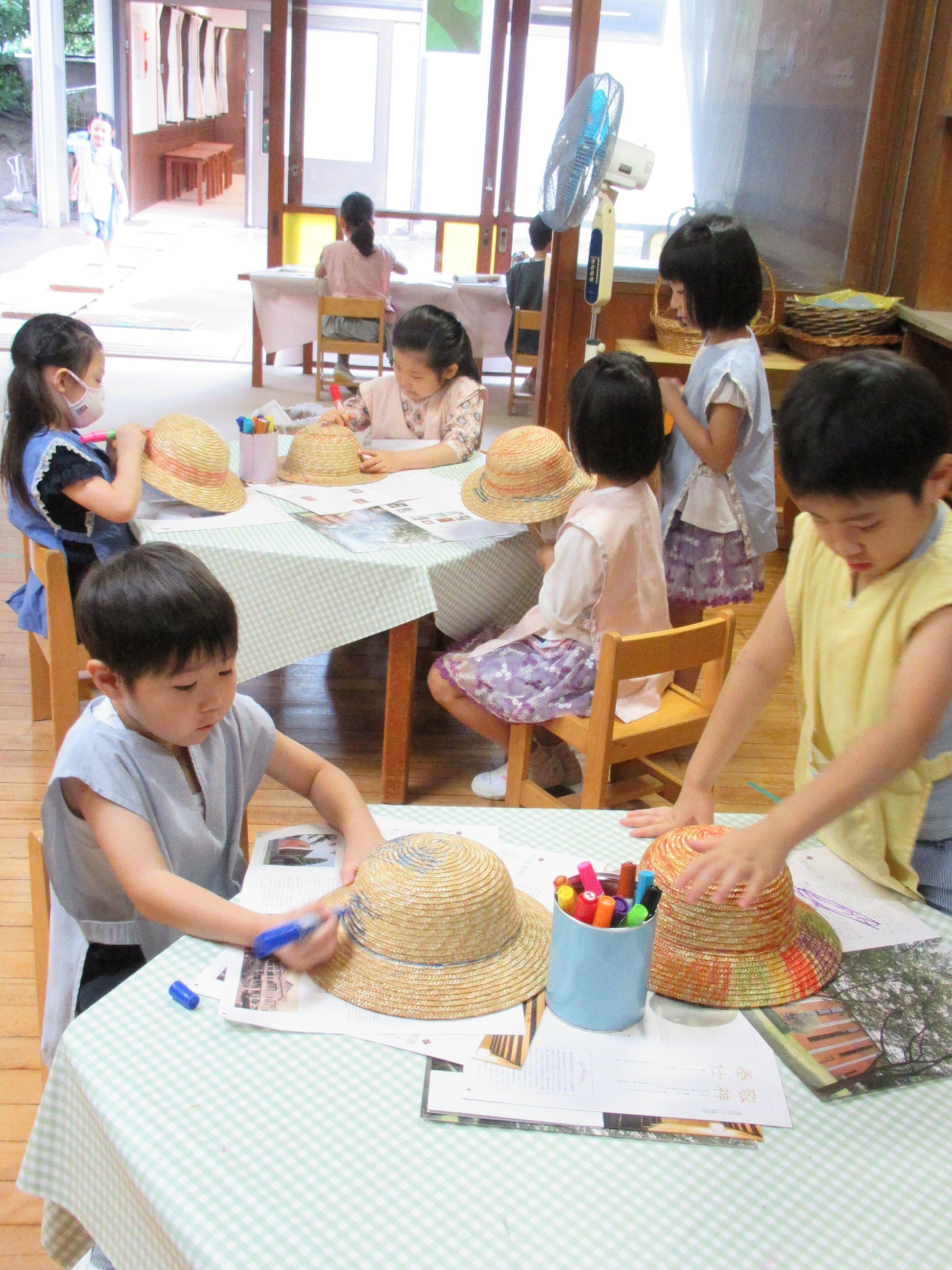 東洋英和幼稚園だより 夏の様子(その1) 幼稚園にも暑い夏がやってきました 年長組の子どもたちが自分たちで模様を描いた世界に一つだけの麦わら帽子 お気に入りの麦わら帽子をかぶって、庭でおやつをいただきました 大工をしたり 雨の日には傘をさして遊びました 歯の磨き方、覚えているかしら? 歯磨きについての話を聞きました 前へ 一覧へ戻る 次へ