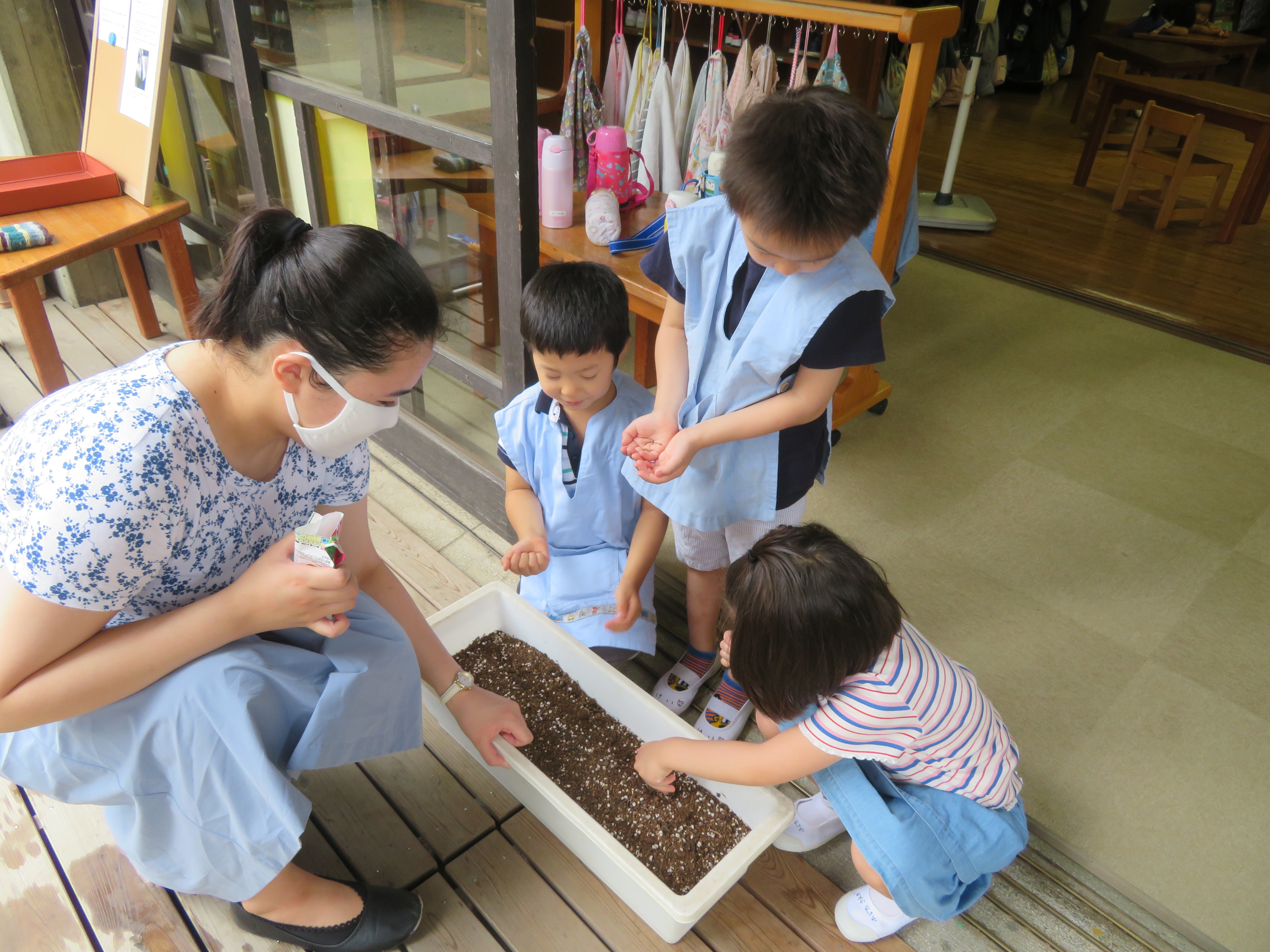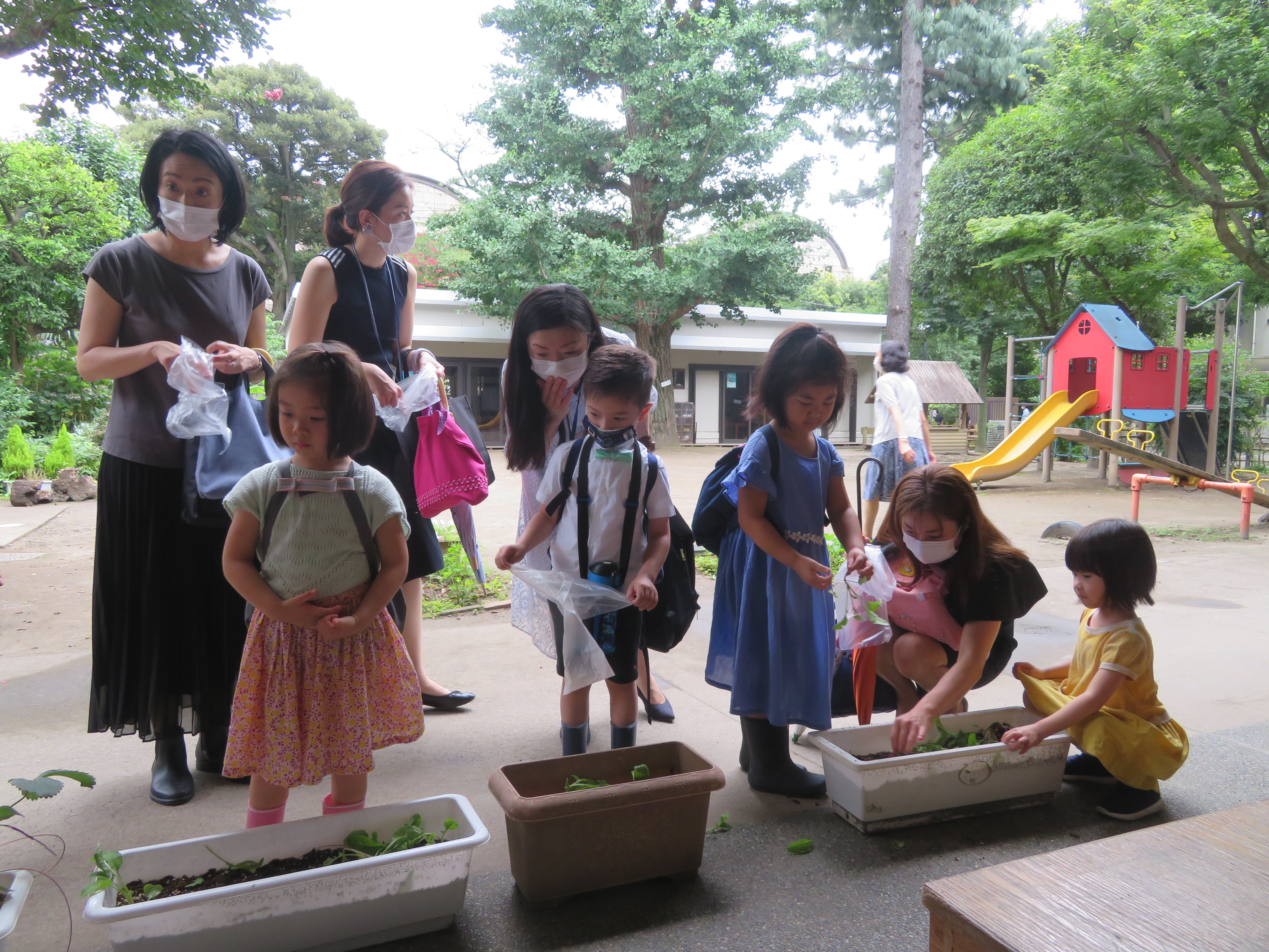 東洋英和幼稚園だより 夏の様子(その2) ホールで楽器を楽しみました 手作りのブランコに乗って・・・ゆらしてあげるね 年中組が植えたラディッシュ 青虫も遊びにやってきました 最終日にラディッシュを持ち帰りました さつまいもの畑にせみのぬけがらをみつけました 夏の銀杏はまだ緑色です 前へ 一覧へ戻る 次へ