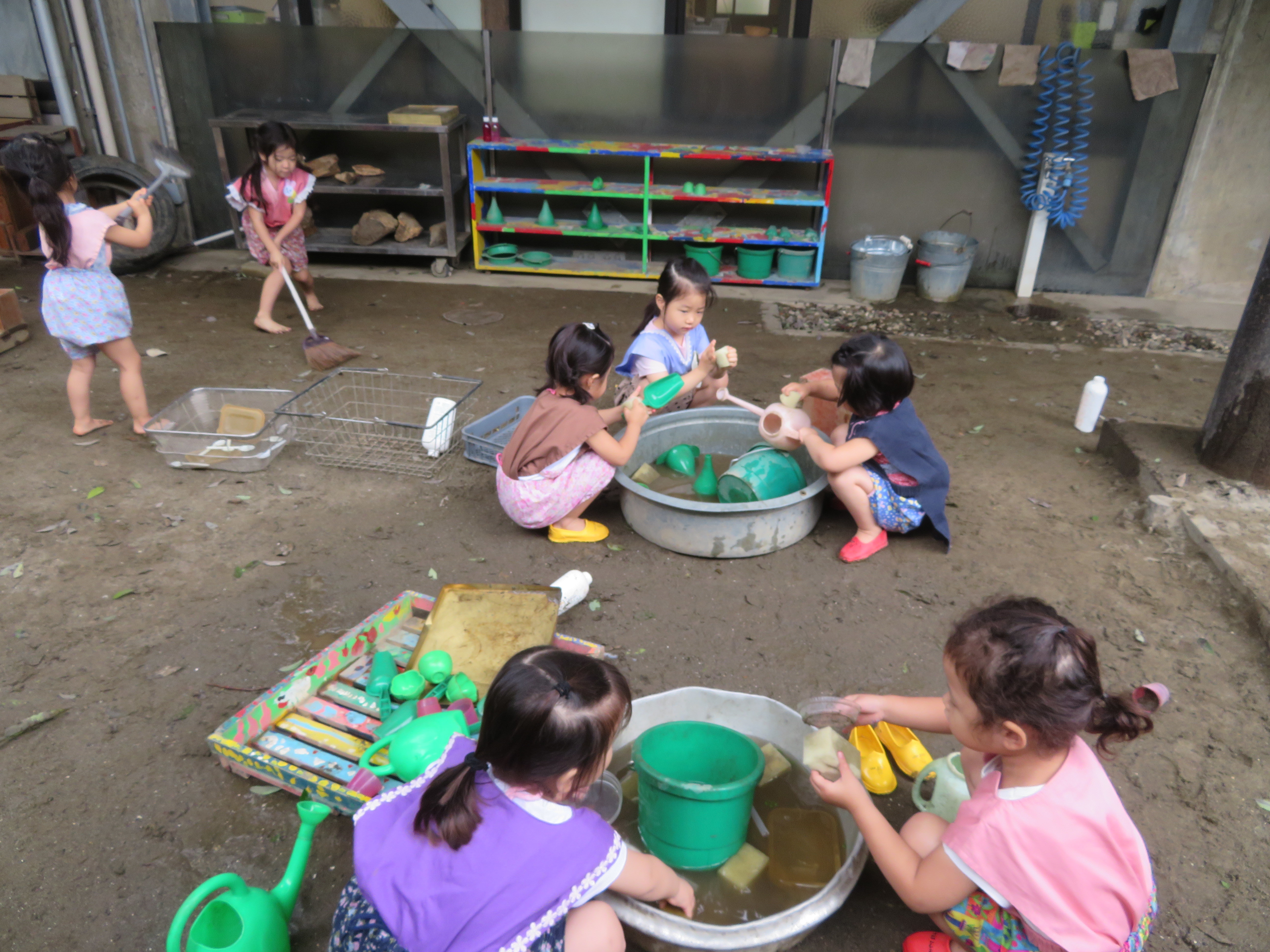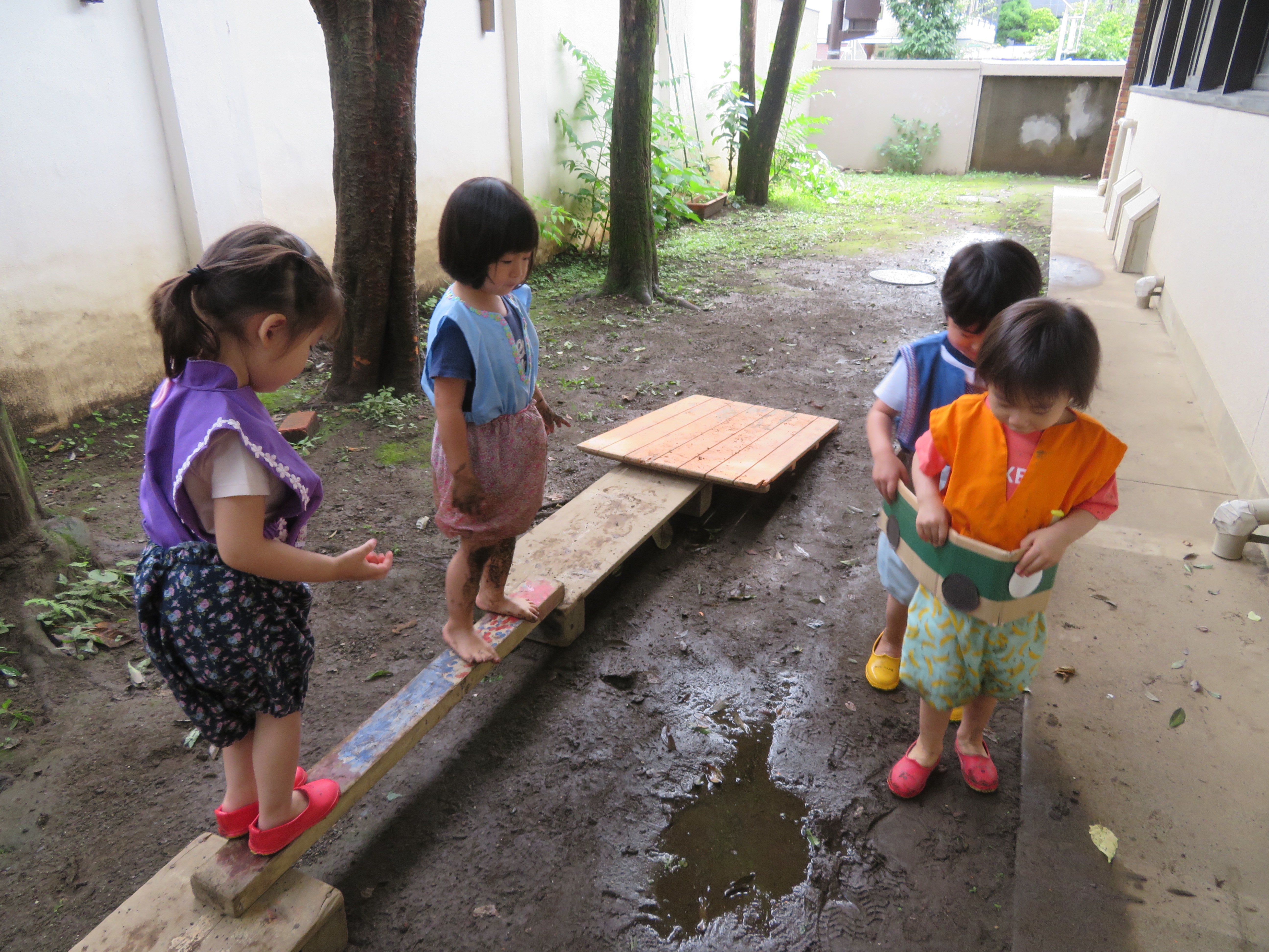 東洋英和幼稚園だより 夏の様子(その3) 積み木を組み立てておうちを作ったり 橋を作りました 虫を探したり あけびの実をみつけましたね どろの川もできました ほうきで掃いて、バケツを洗って・・・また遊ぼうね 前へ 一覧へ戻る 次へ