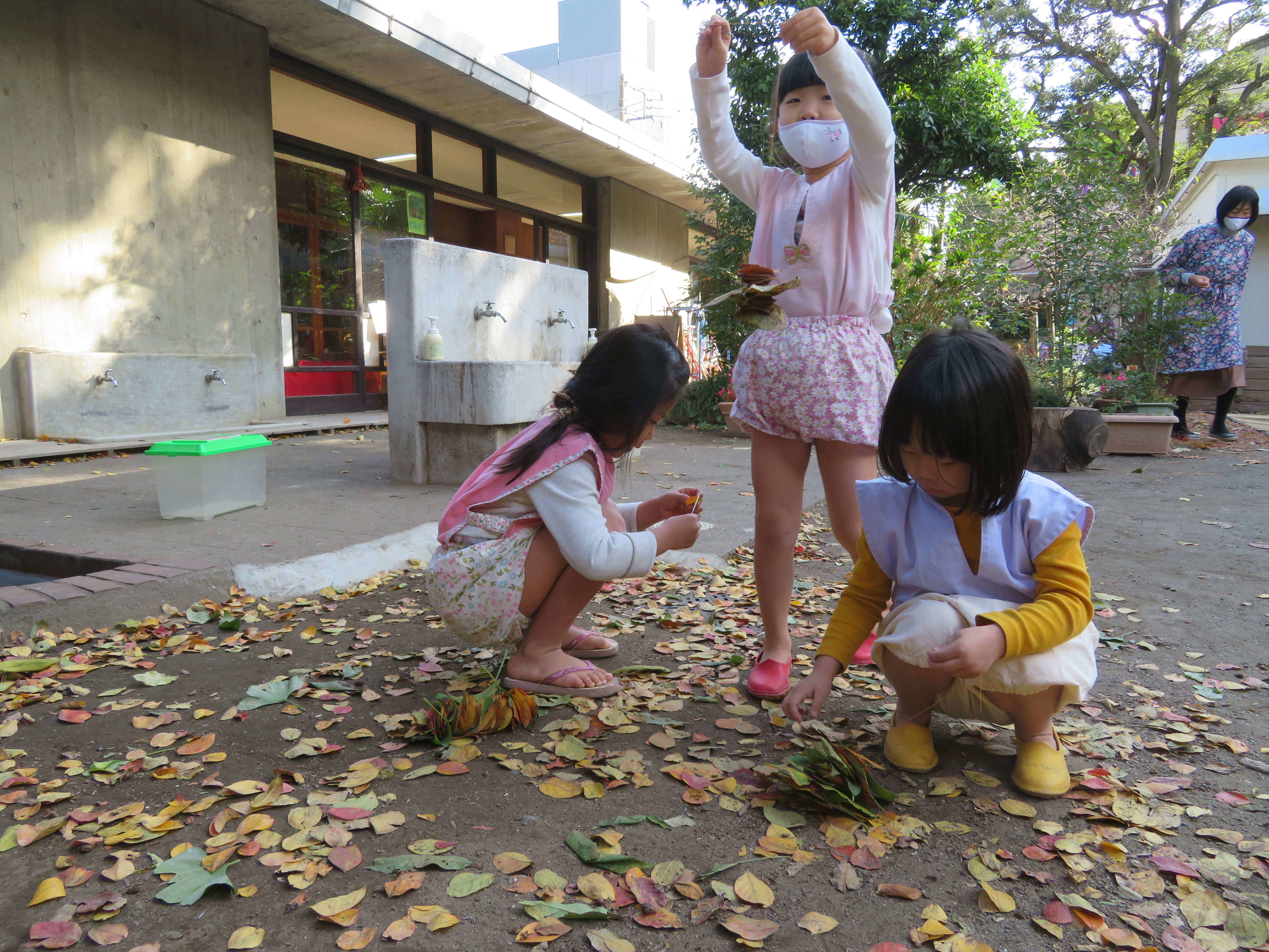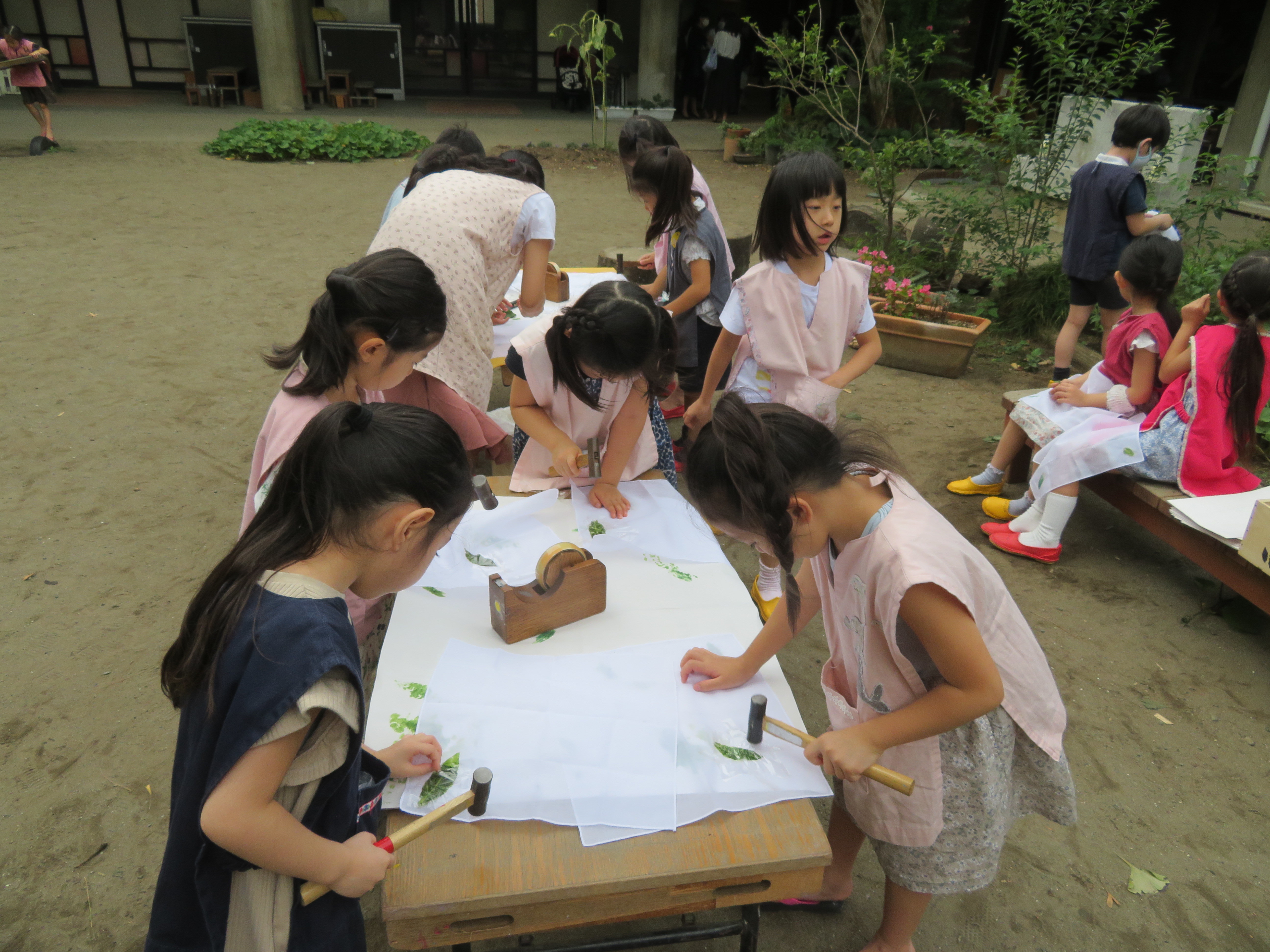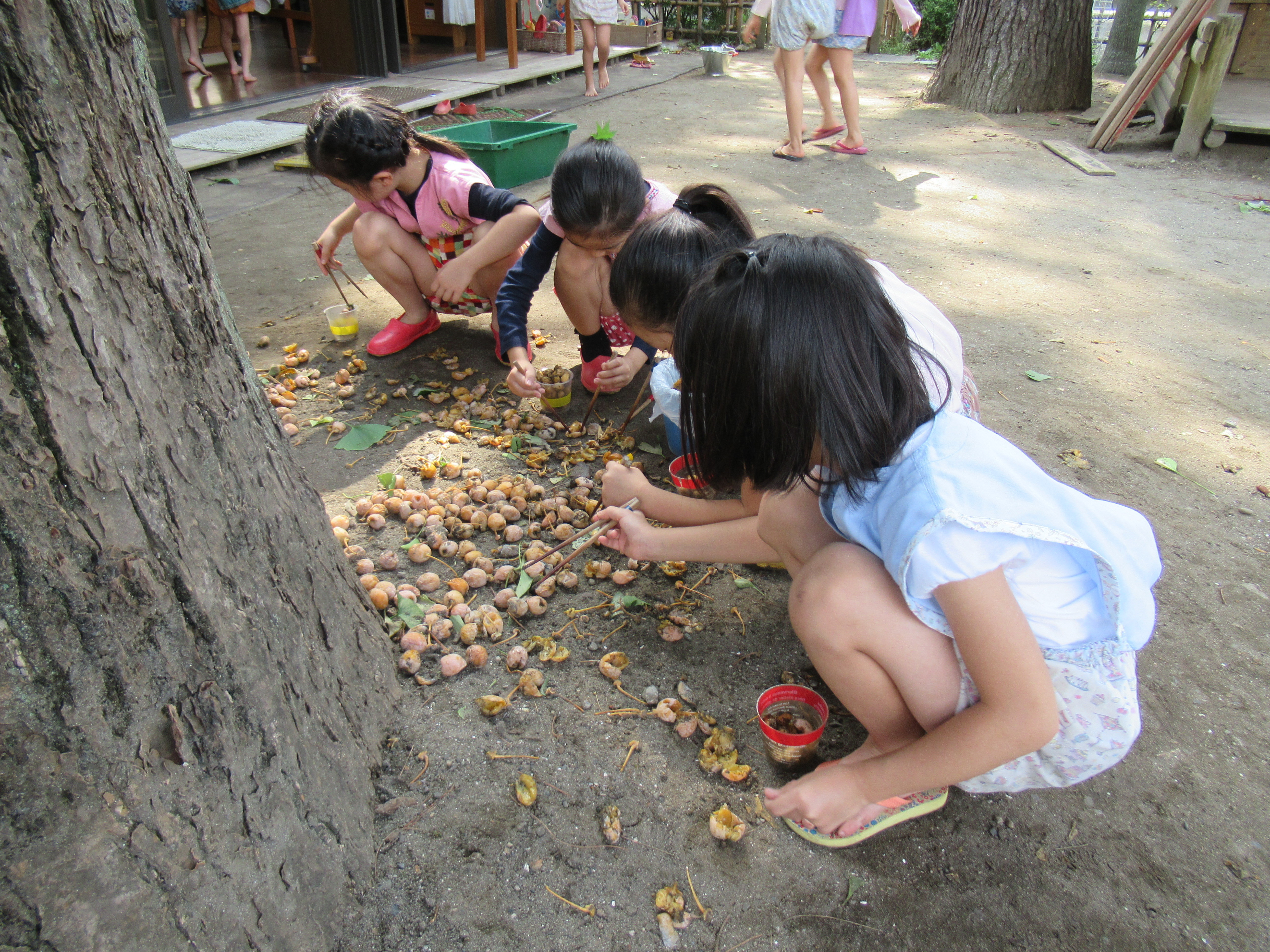 東洋英和幼稚園だより 秋の様子(その1) 緑色だった銀杏が黄色く色づきました 銀杏拾いが始まりました たくさんの秋を感じながら、落ち葉で遊んだり 6月に植えた藍の葉っぱでたたき染めをしました うれしい秋の実りが 幼稚園にもやってきました 陽だまりの中でごちそうづくり ごはんを作るのに大忙しなお母さんたち、今日のごはんは何かしら? 前へ 一覧へ戻る 次へ
