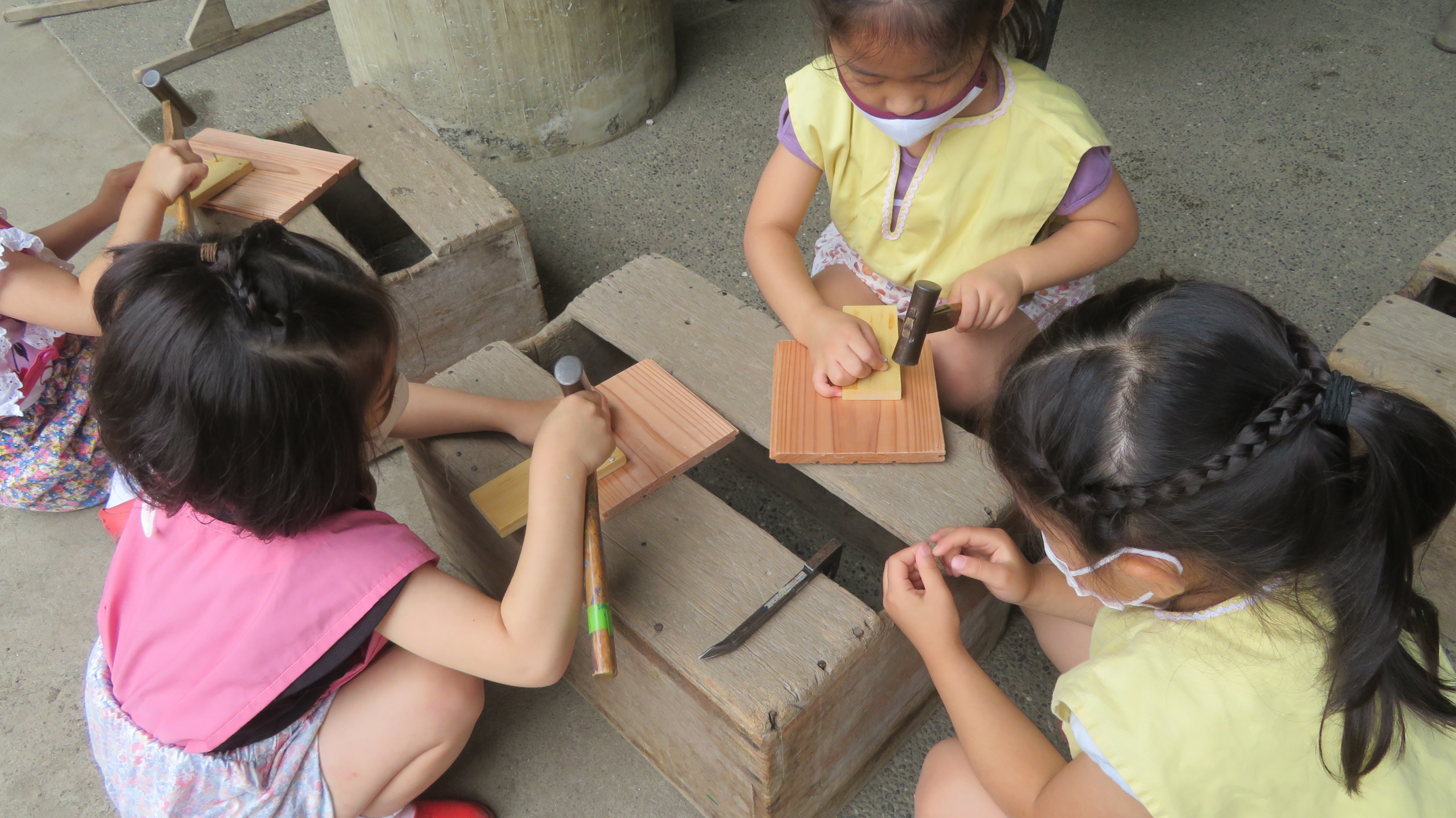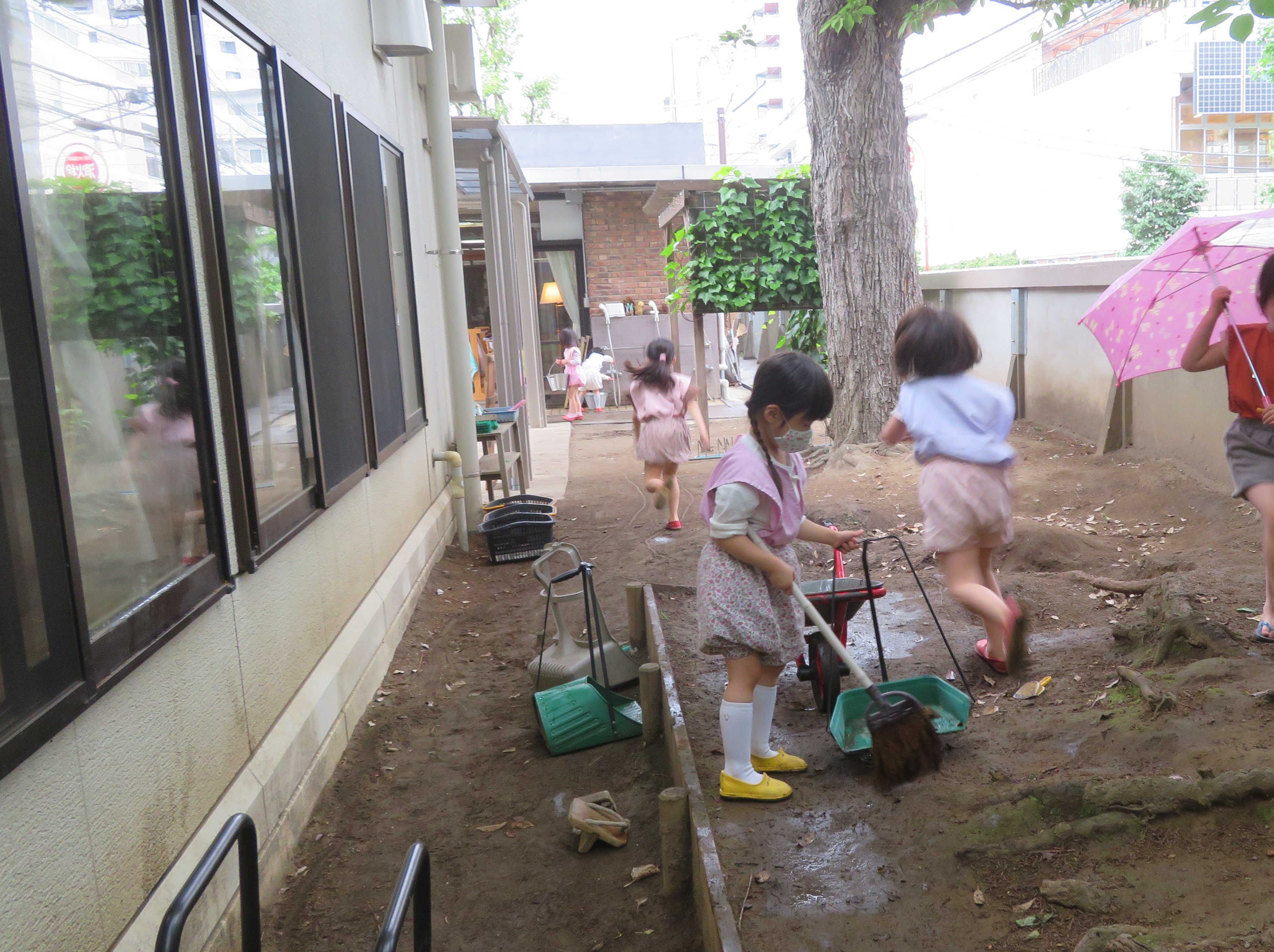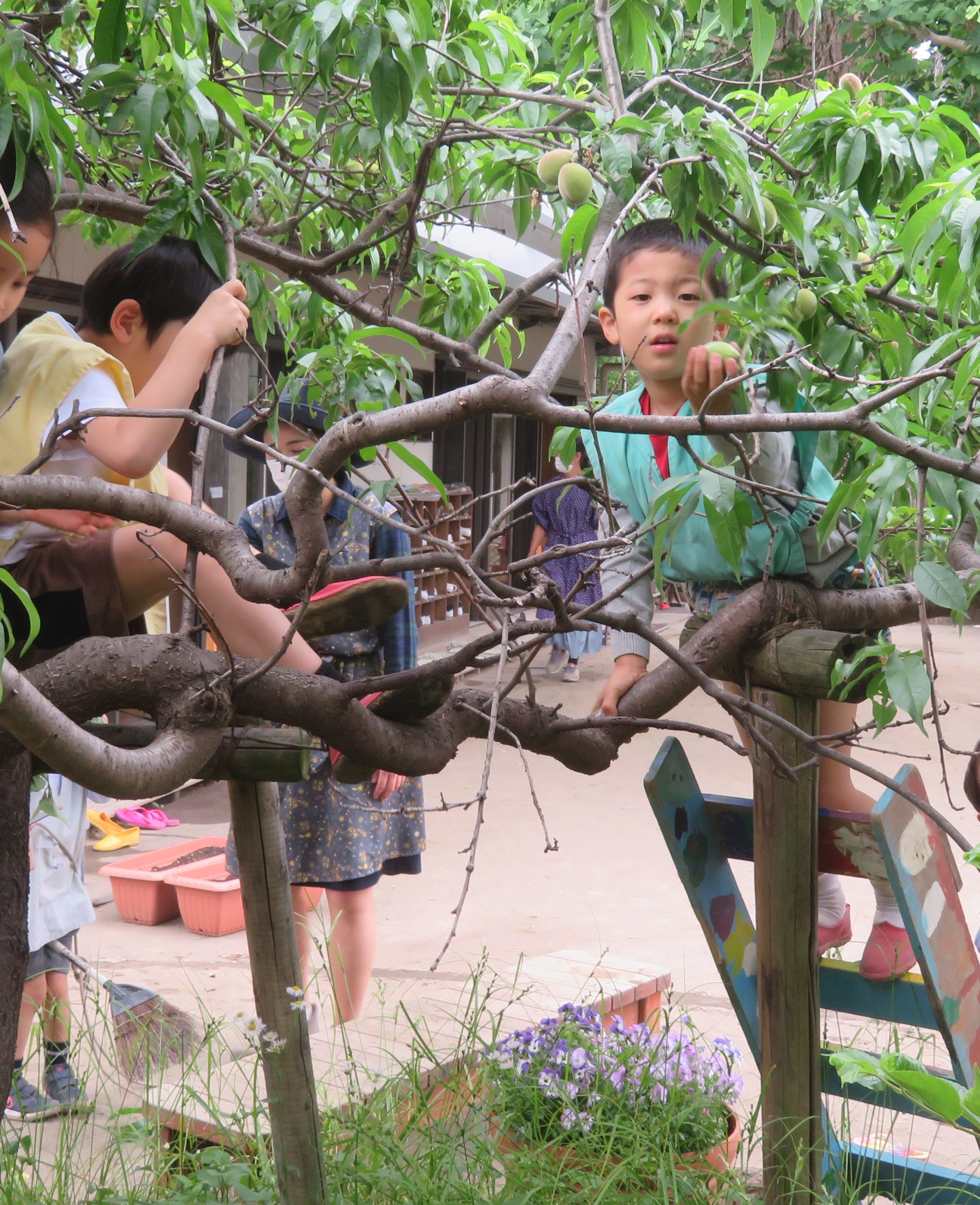 東洋英和幼稚園だより 年中組・年長組の子どもたち その1 5月に植えたトマトの苗、元気に育ちますように… 年中組も大工で何か作り始めました。 にんじんの種から芽が出てきました。作っていたのは看板だったのですね。 一枝にたくさん実った桃を摘果しました。届かないところは木に登って手を伸ばします。 「ねぇ、ここになにかいるよ」虫探しに夢中です。 静かな場所にはひっそりと住んでいる子どもたち。せっせと掃除をしています。 砂場にできた大きな川にはしごをかけて… 前へ 一覧へ戻る 次へ
