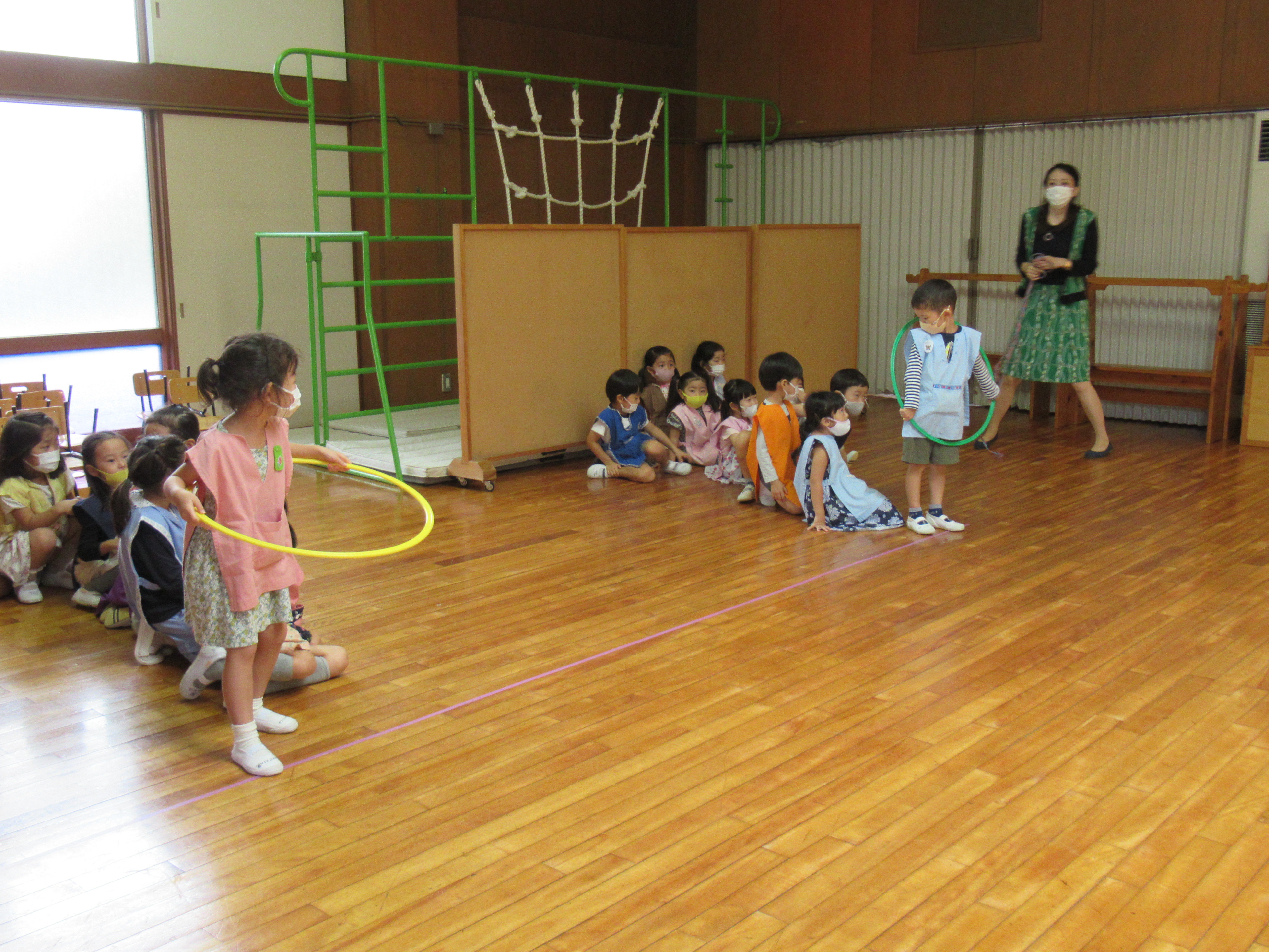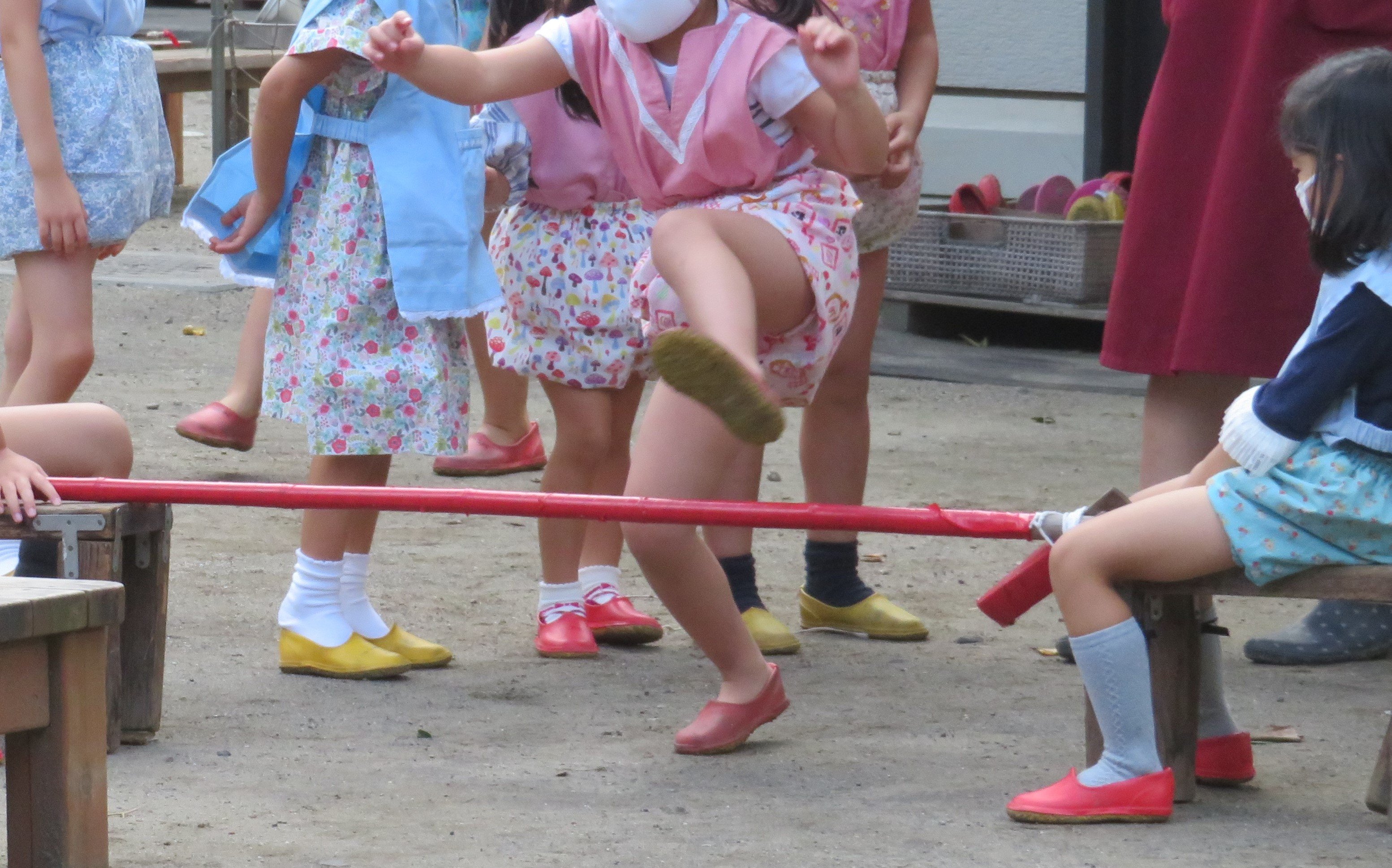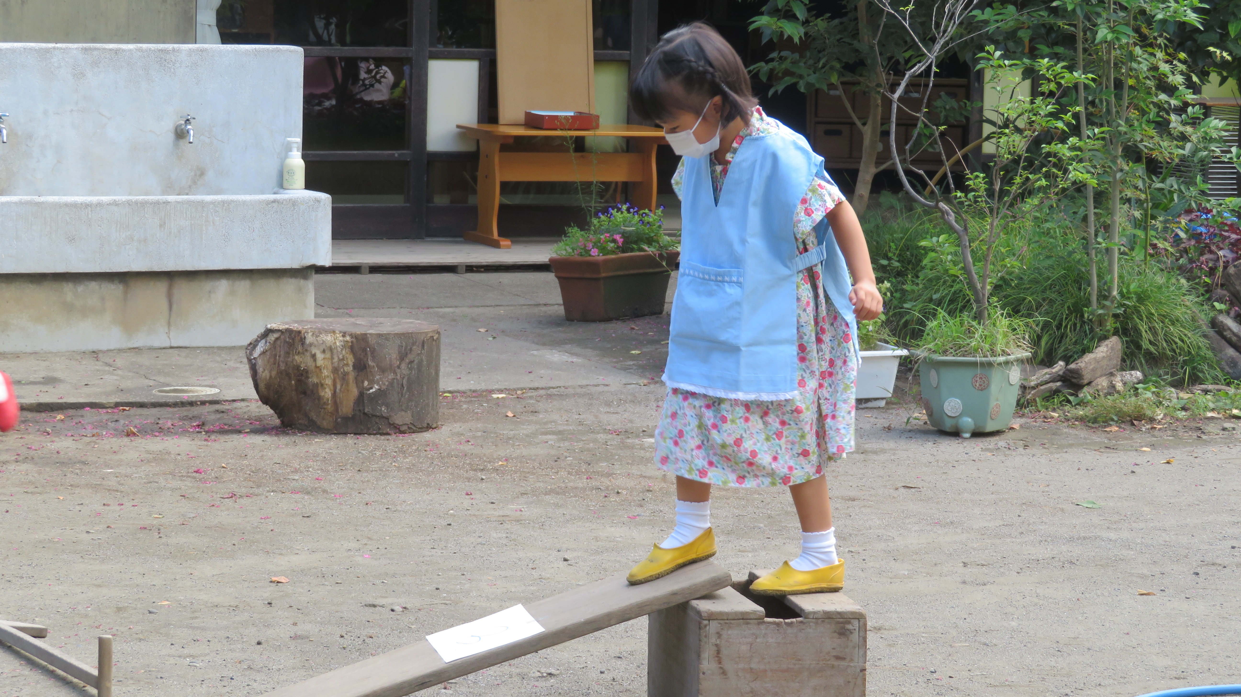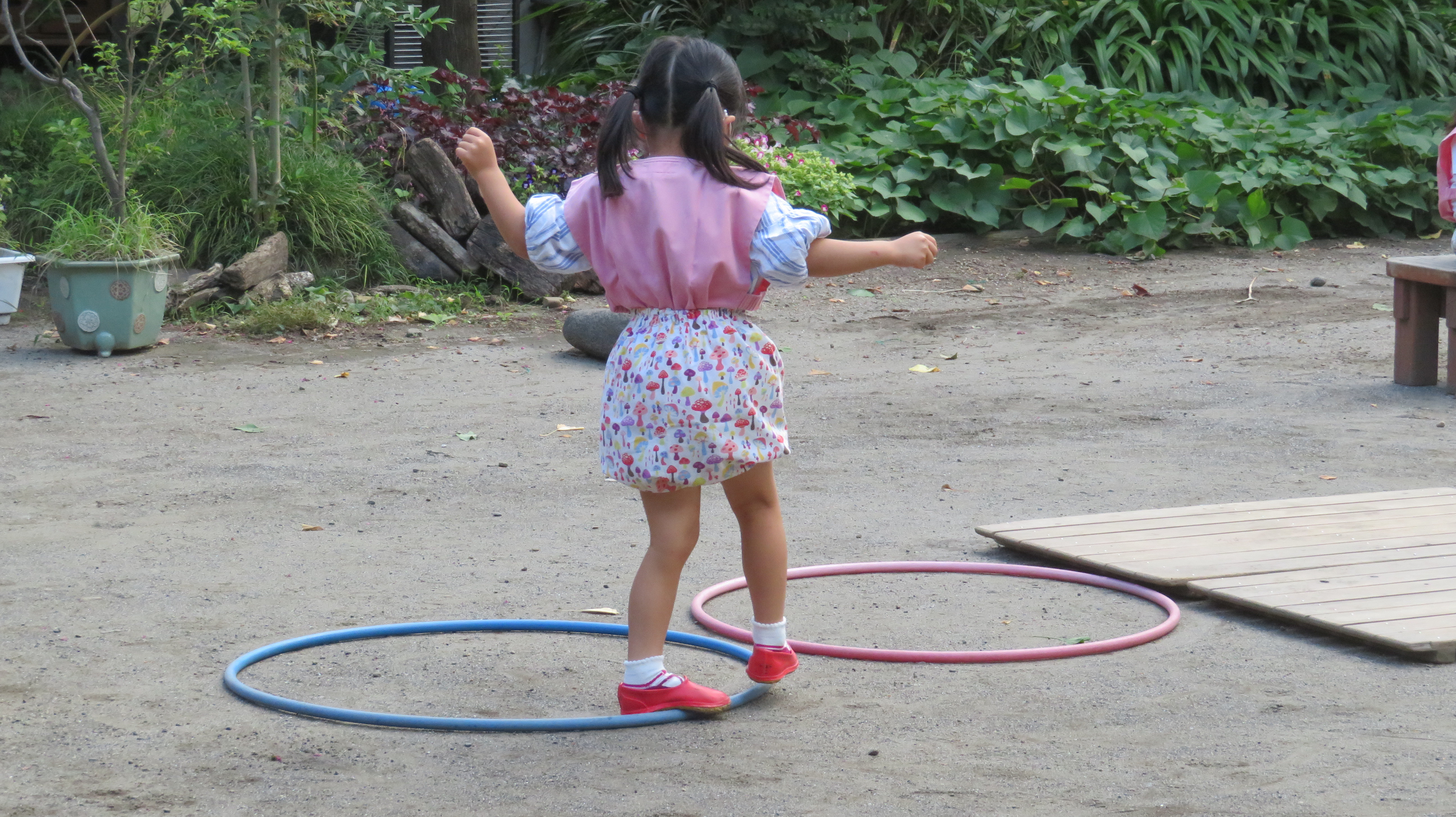 東洋英和幼稚園だより オリンピック 幼稚園の庭でもオリンピックの競技が行われました まず最初は棒を飛び越えます 輪に沿って、落ちないように落ちないように… 最後は板を足で押さえてぱたんと動かしてゴールです! ホールでは、誕生日会にオリンピックレースをして 大きなおせんべいのメダルをもらいました 前へ 一覧へ戻る 次へ