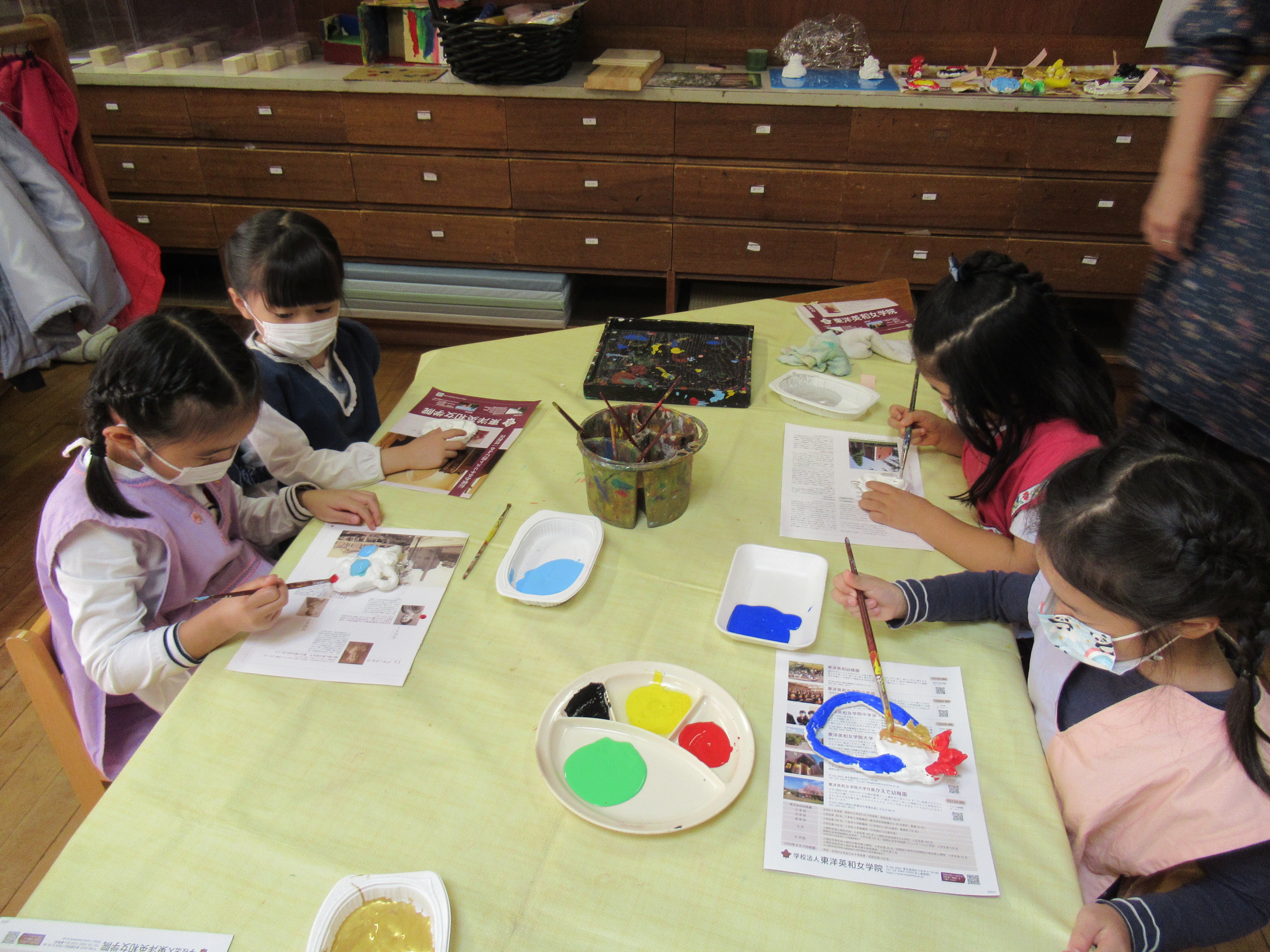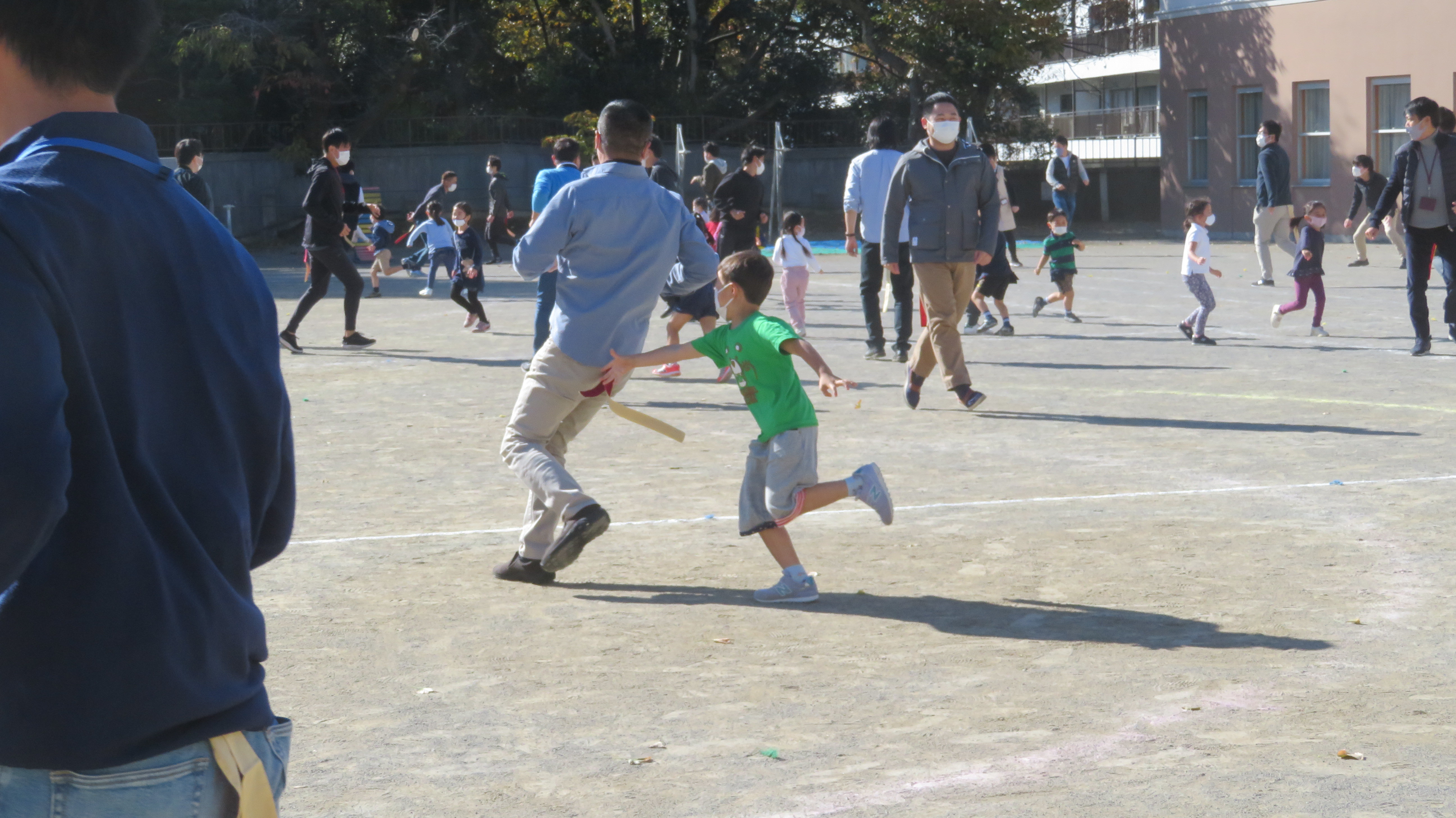 東洋英和幼稚園だより 父と遊ぶ日(年中) 粘土で作ったメダルに丁寧に色を塗ります お父様への秘密のプレゼントです まずは準備体操です お父様にしっぽが生えました!子どもたちがしっぽをとろうと走り回ります 玉入れ 拾っては投げ、拾っては投げ…たくさん入ったかしら お父様方の大玉転がしです 早い早い! 応援する子どもたちにも力が入ります よーいどん!腕を振ってぐんぐん前に進みます 最後に、秘密にしていたプレゼントのメダルをお父様にお渡ししました お父様、いつもありがとうございます 前へ 一覧へ戻る 次へ