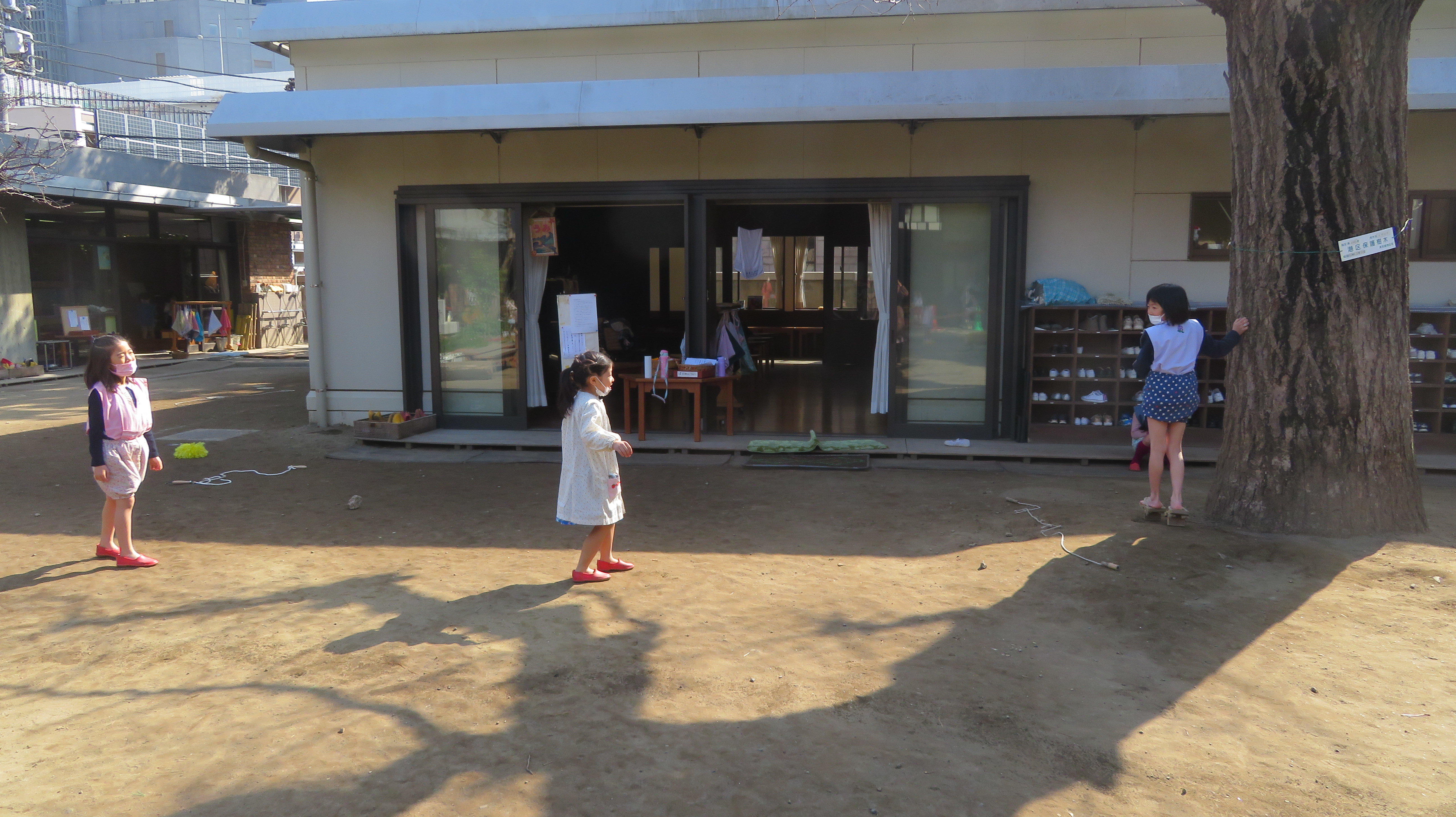 食後のゆったりとした時間には、いちょうの木の下で「だるまさんがころんだ」が始まりました
