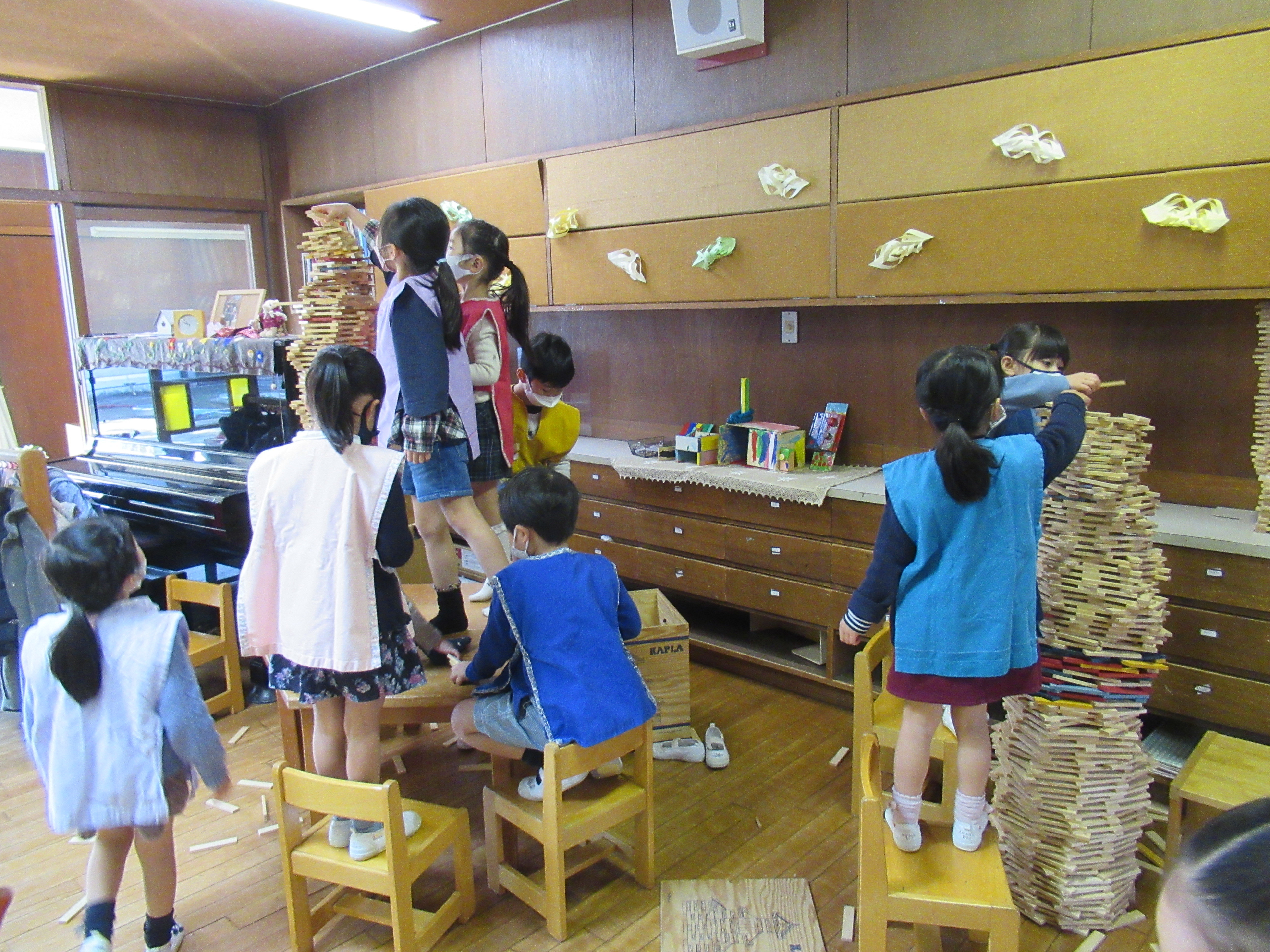 年中組では、カプラを積み重ねています。どんどん高く、背よりも高くなって、慎重に慎重に…