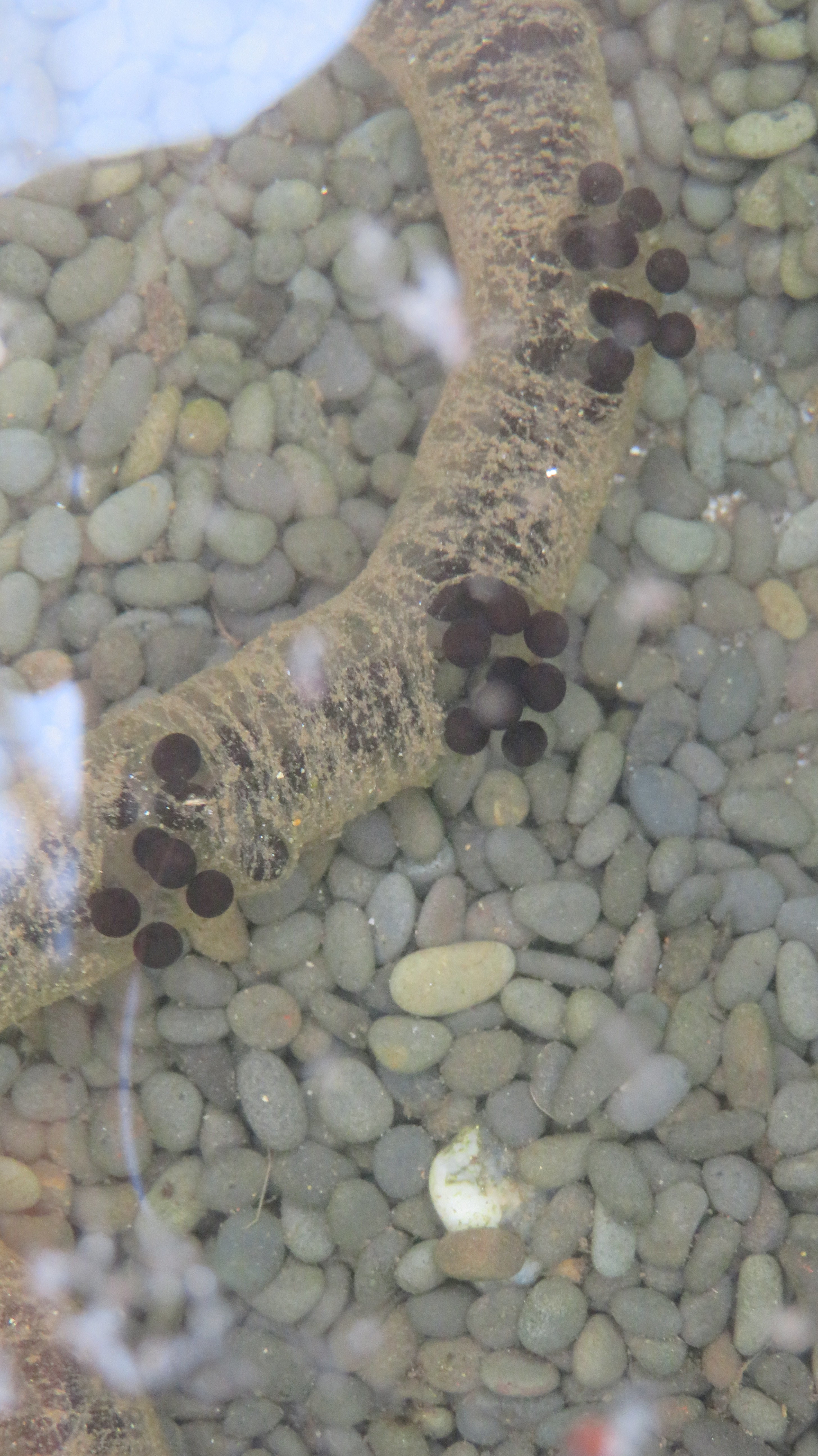 東洋英和幼稚園だより 幼稚園のかえる 幼稚園の庭に住んでいるかえるが今年も姿をみせてくれました 「せんせい!へびがいる!」年少組の子どもたちが大騒ぎしていました 「へびではなくて、かえるのたまごなのよ」 何日か経った暖かい日、黒い小さなまんまるいものが 出てきました おたまじゃくしです! 最初はしっぽが太くて動き方もゆっくりとしています 翌日にはちょろちょろとかわいらしくしっぽを動かし始めました 4月に子どもたちがやってくるのを待っています 前へ 一覧へ戻る 次へ
