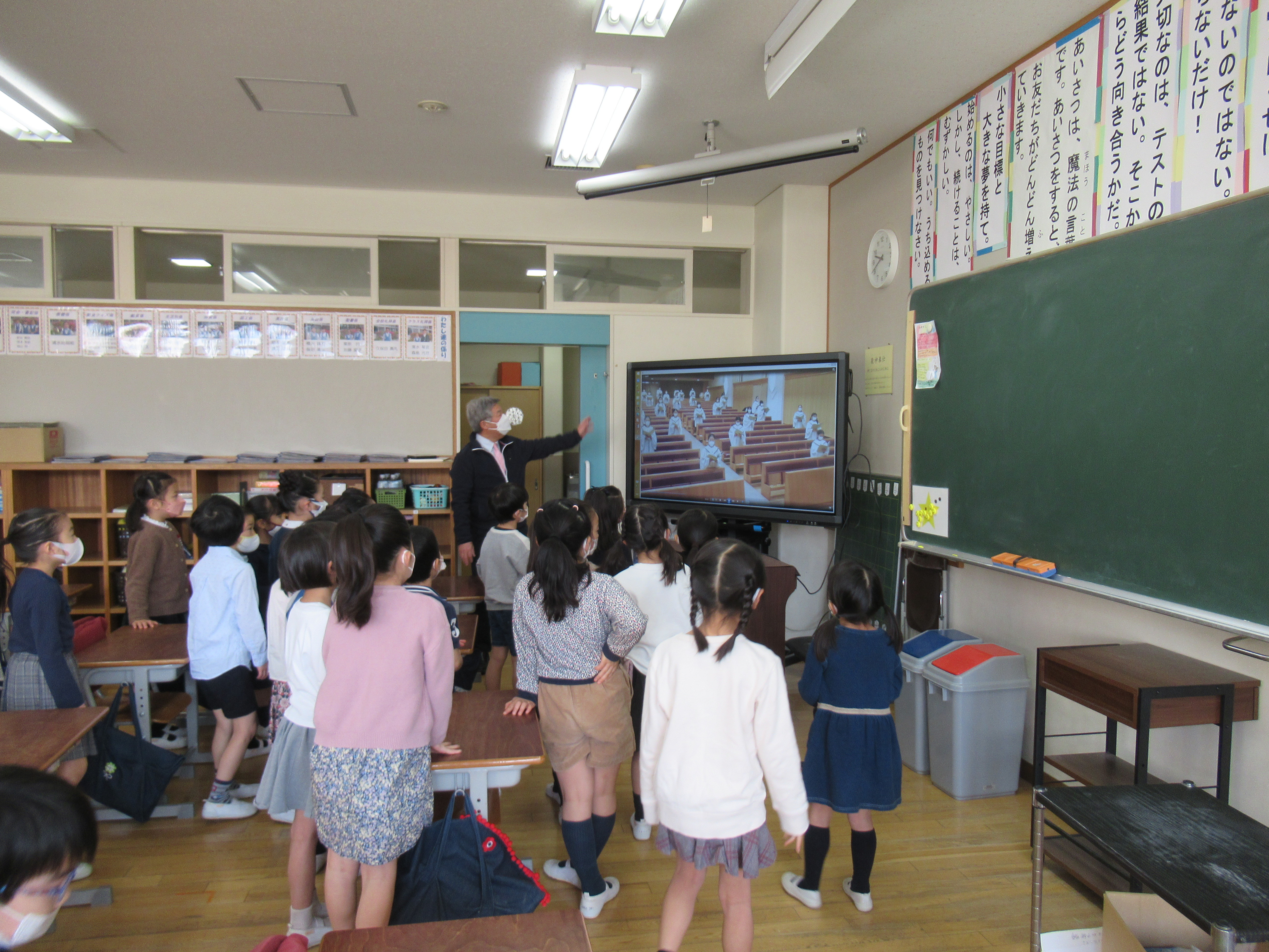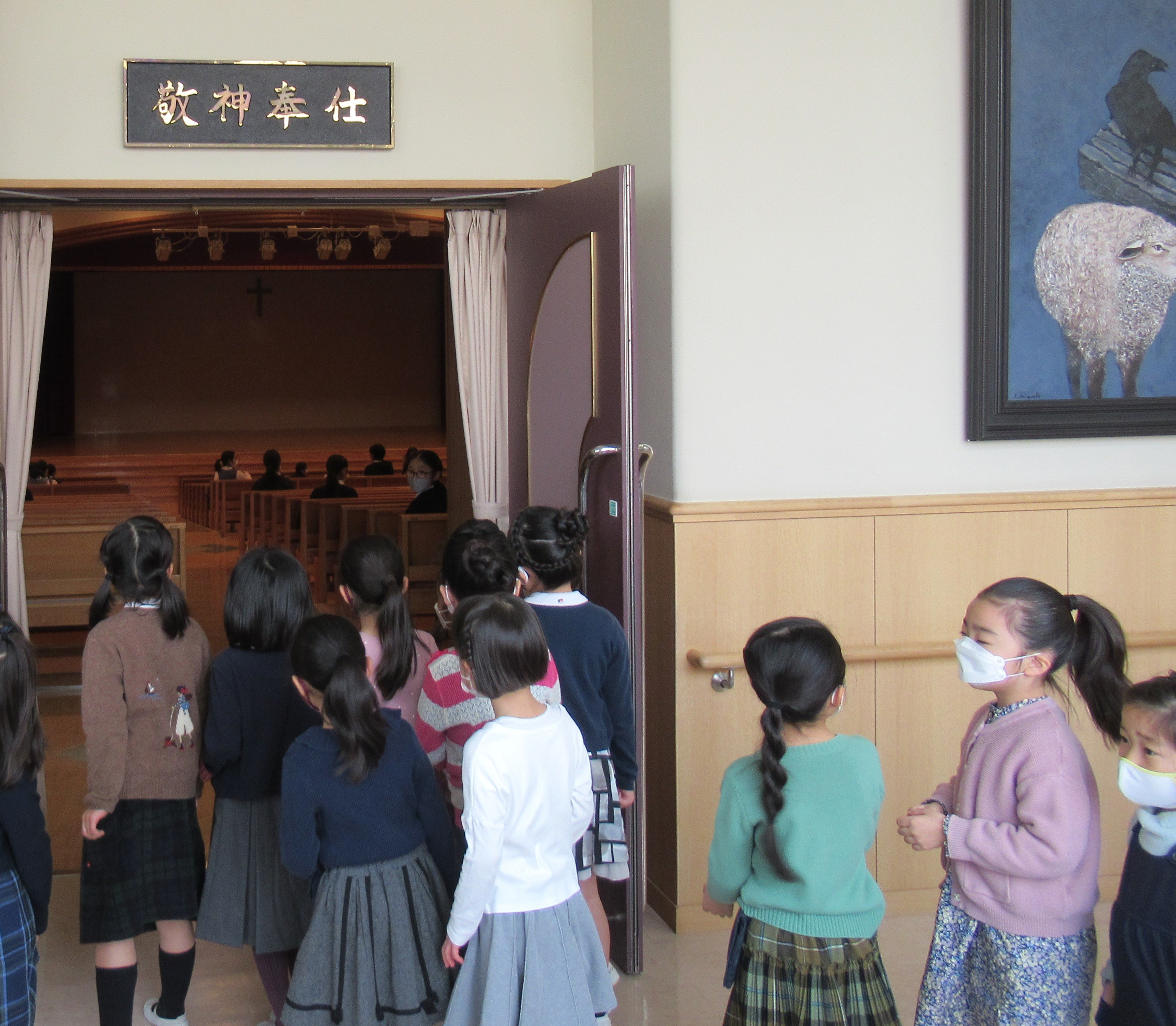 東洋英和幼稚園だより 小学部にお邪魔しました 少し緊張して出発です 教室 図書室 食堂です みんなで集まっておいしい給食をいただきます 講堂 ここでみんなで礼拝を守ります もうすぐ小学生、楽しみですね 前へ 一覧へ戻る 次へ