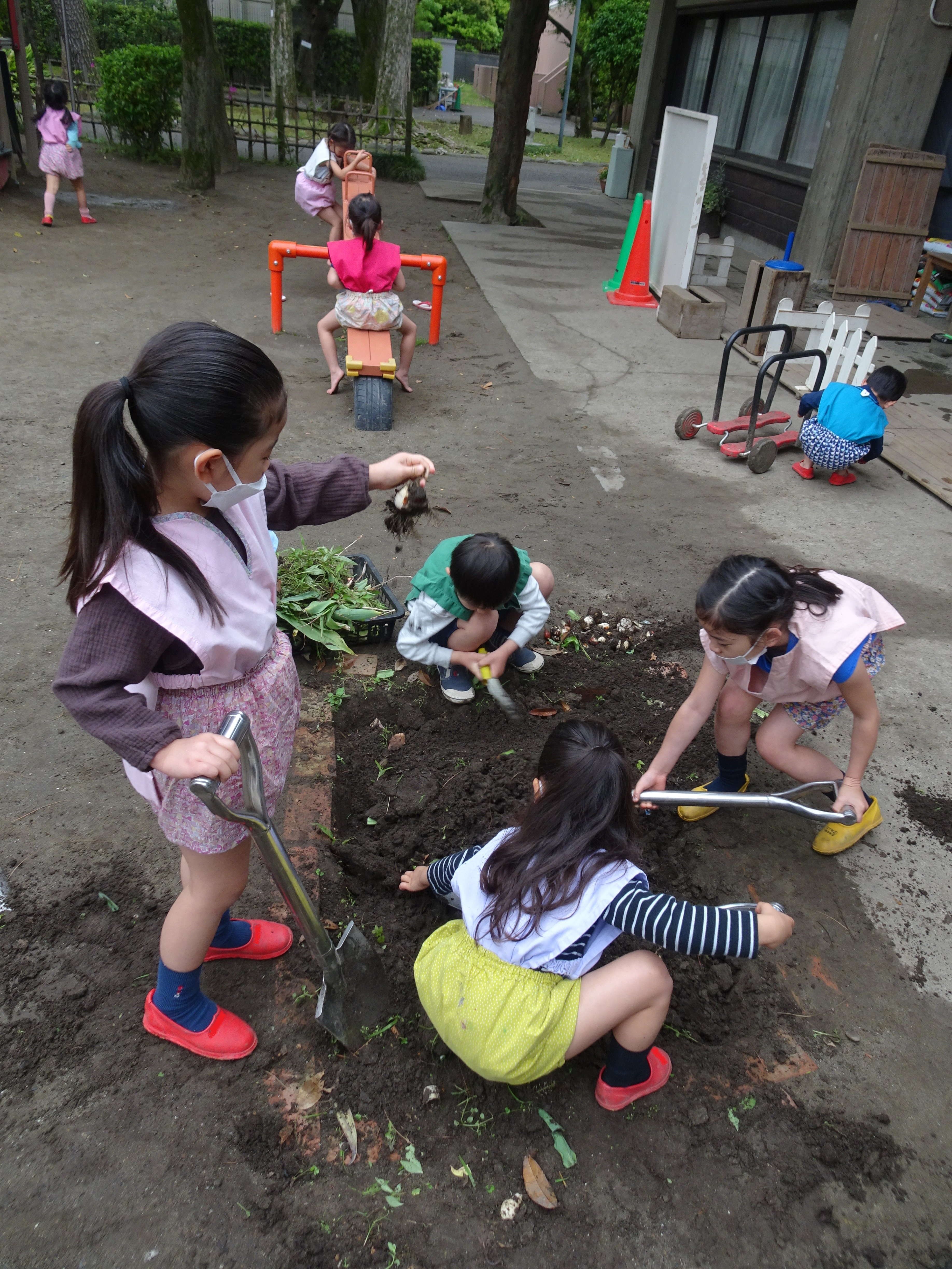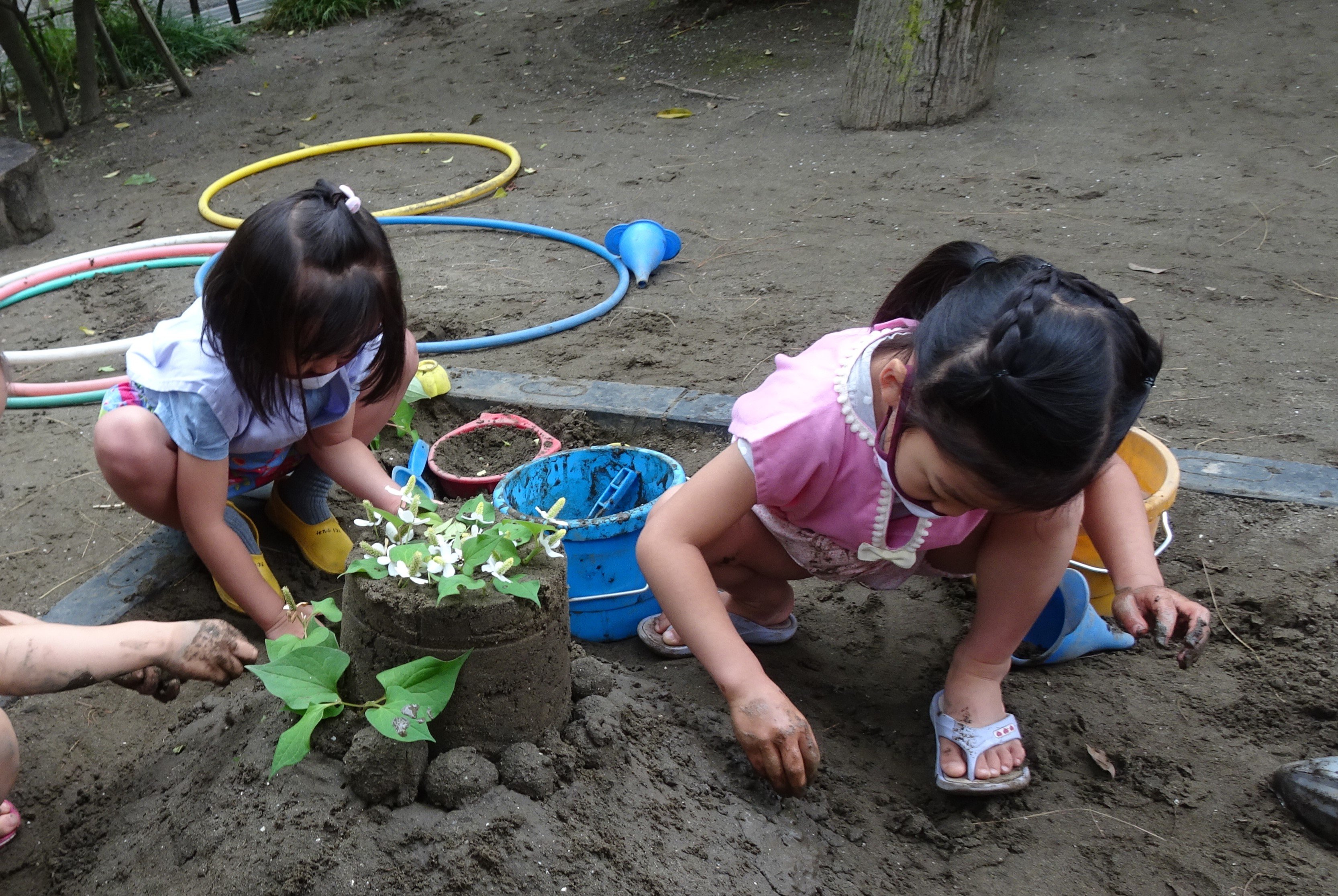 東洋英和幼稚園だより 夏の表庭 春にきれいにな花を咲かせてくれたチューリップの球根を掘り起こします 乾燥させて、また冬になったら植えましょう きれいケーキの出来上がりです 雨の日の散歩 暑い夏、水遊びを楽しみました 前へ 一覧へ戻る 次へ