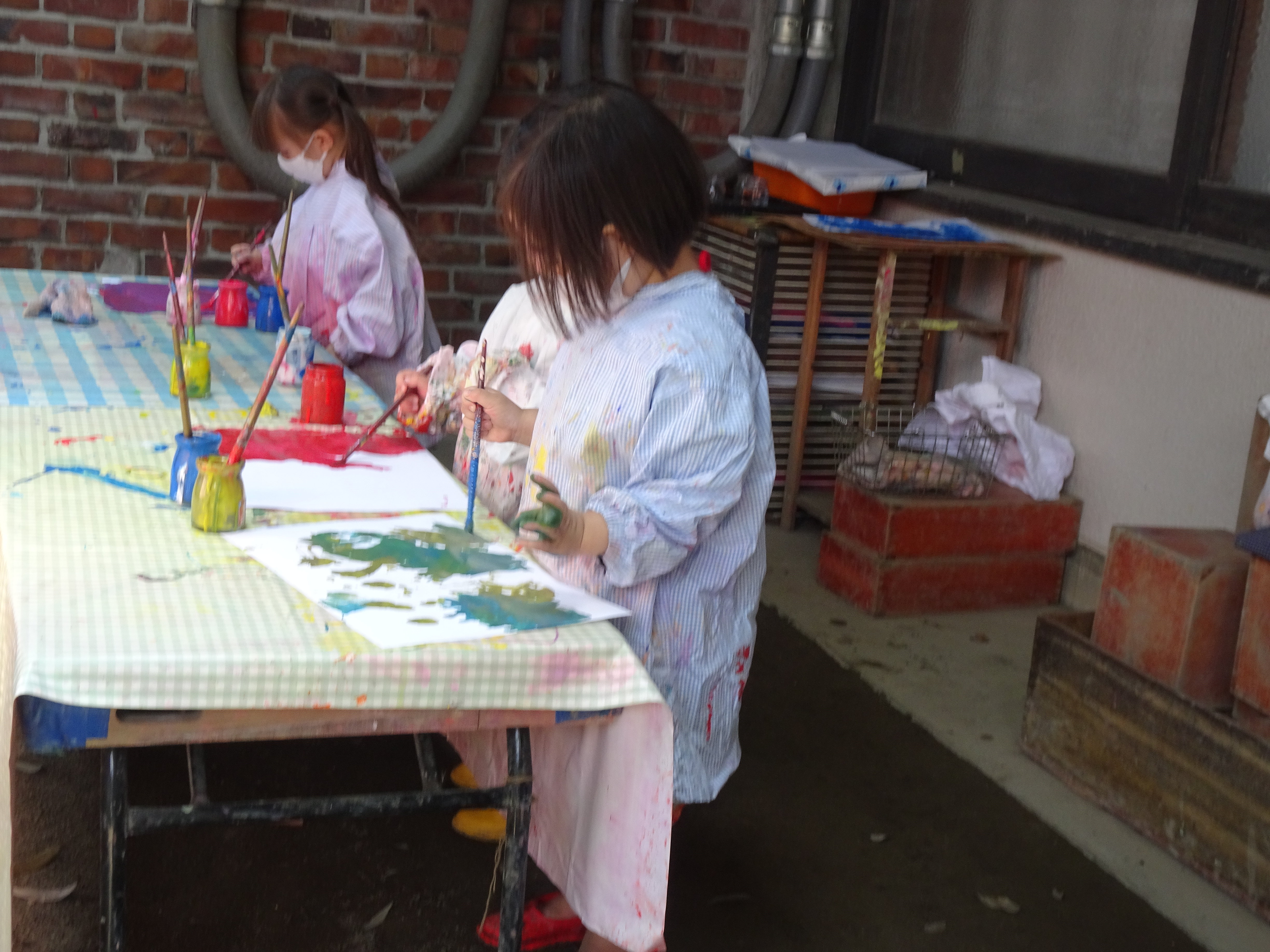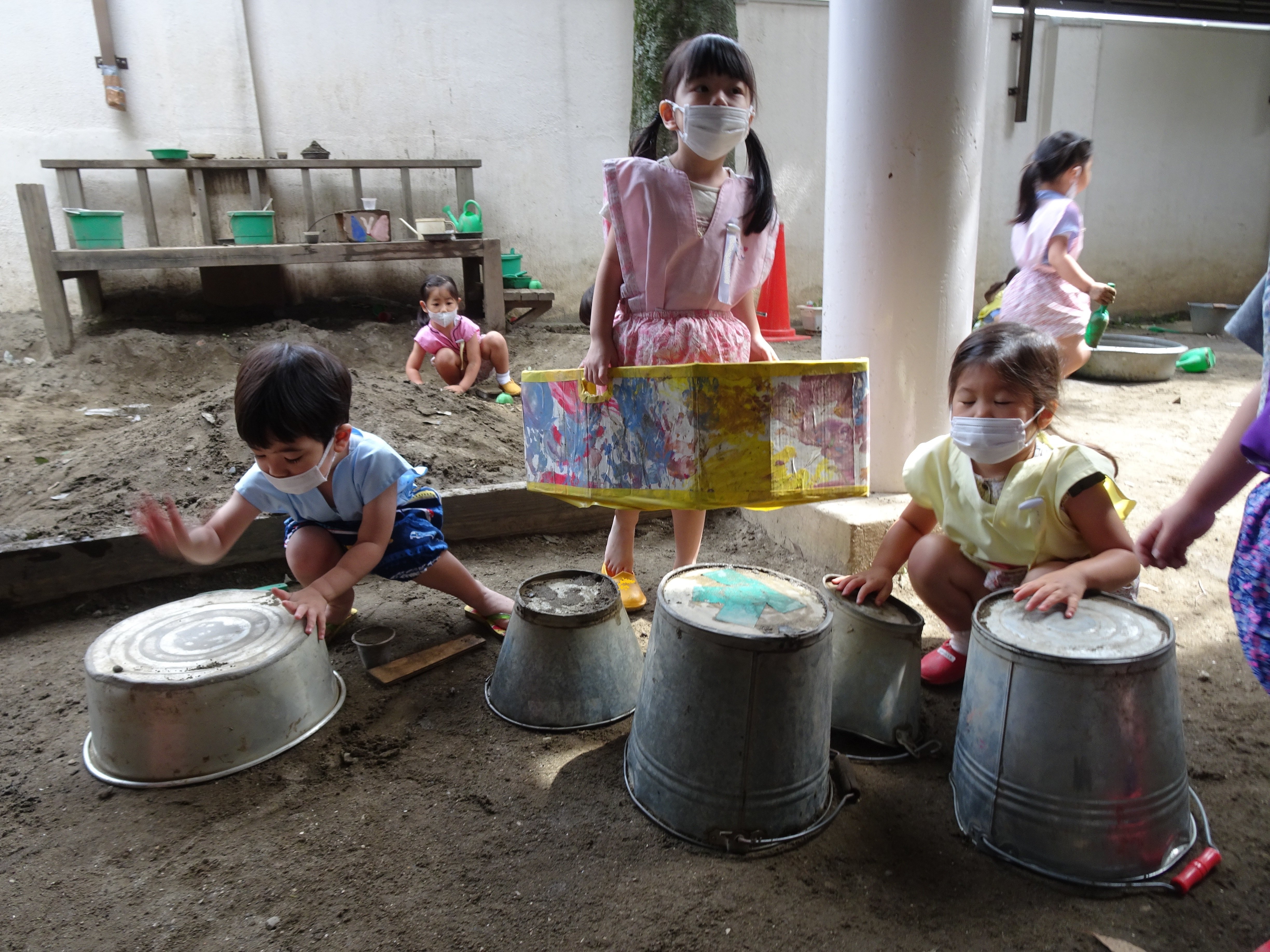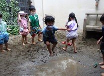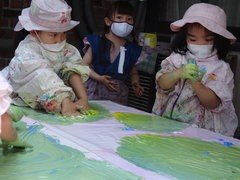 東洋英和幼稚園だより 裏庭の子どもたち せっせと水を運んで作った砂場の海に思いっきり飛び込みます 気づくと後ろには行列ができていました 叩いてみたら面白い音がしました!こっちはどんな音がするのかな 筆にたっぷりつけた絵の具が混ざりあっていくのを楽しみます ひとり一人、どんなことを思いながら描いているのでしょう フィンガーペインティング 伸ばして伸ばして……気持ちのよい感触を味わっています こちらは泥粘土 押したり、つかんだり、持ち上げたり、積み上げたり 前へ 一覧へ戻る 次へ