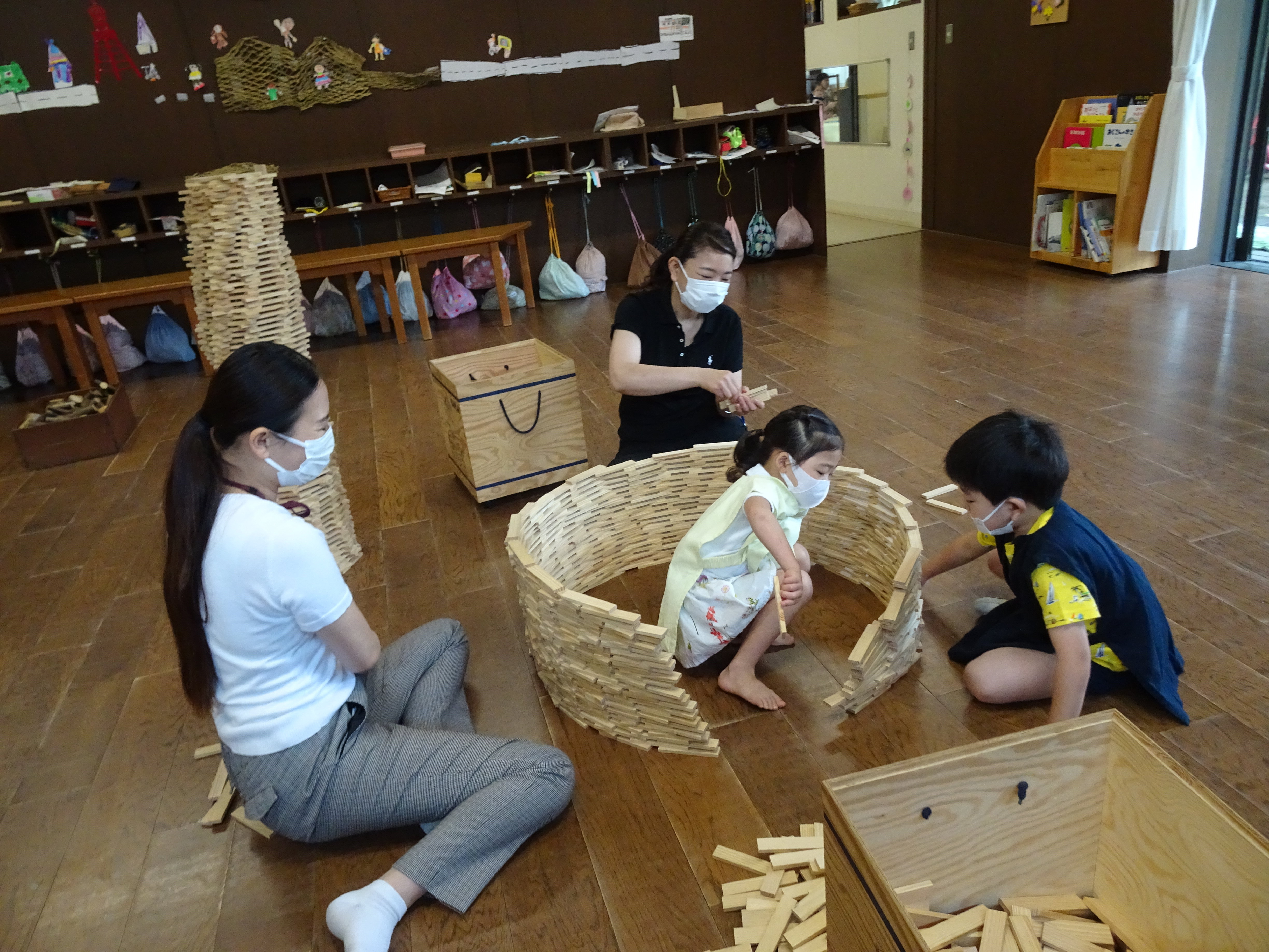 東洋英和幼稚園だより 年中組 母と子の集い いつもの砂場もお母様が一緒だと特別楽しくなります カプラ 慎重に積み上げていきます 大人も夢中になれる遊びの一つです 「小麦粉粘土」 今日は形にしたものをオーブンで焼いてみました パン屋さんのようですね 今日は子どもたちがお母さんになって料理をしているようです 積み木で何を作っているのでしょう 前へ 一覧へ戻る 次へ
