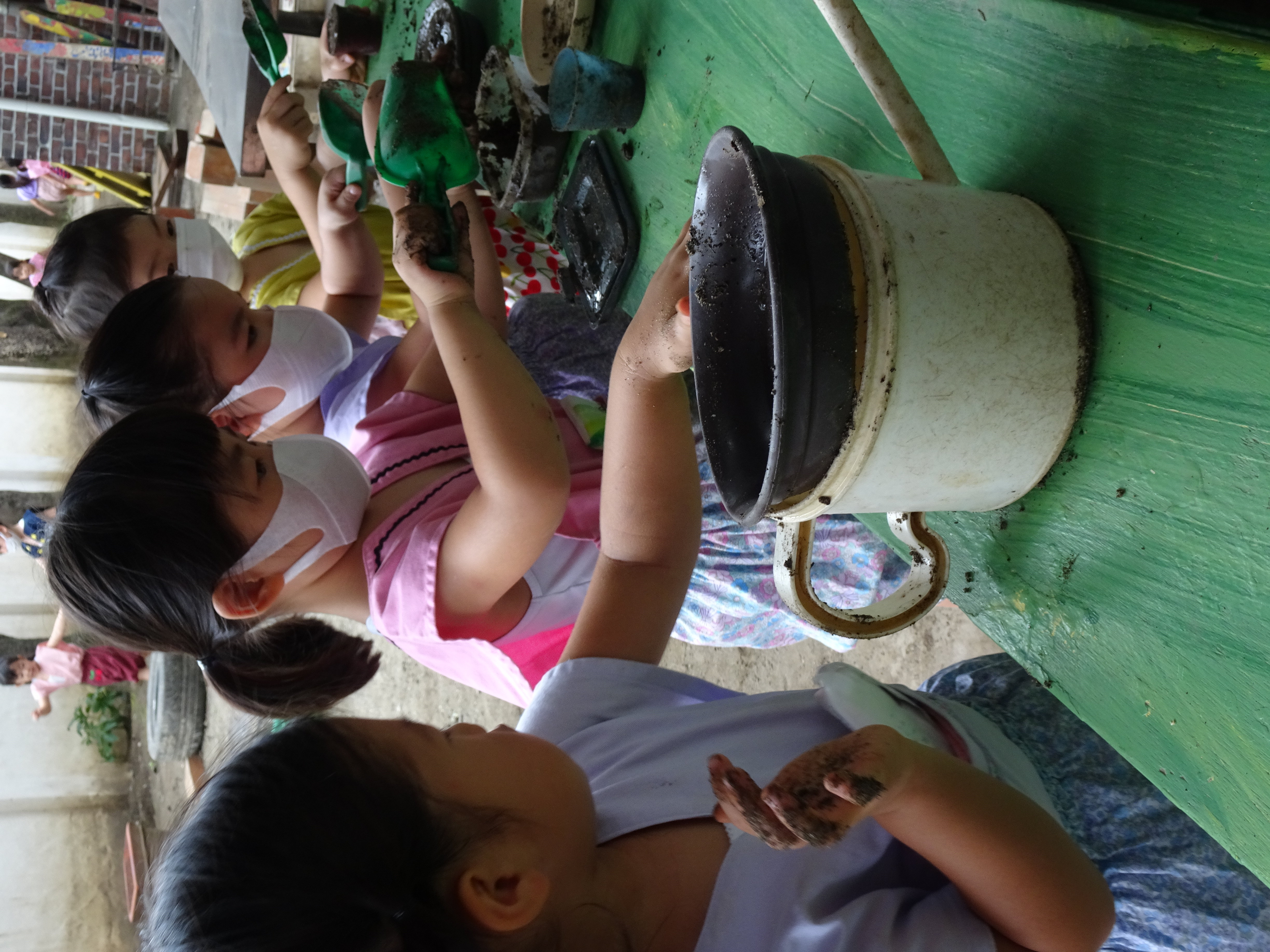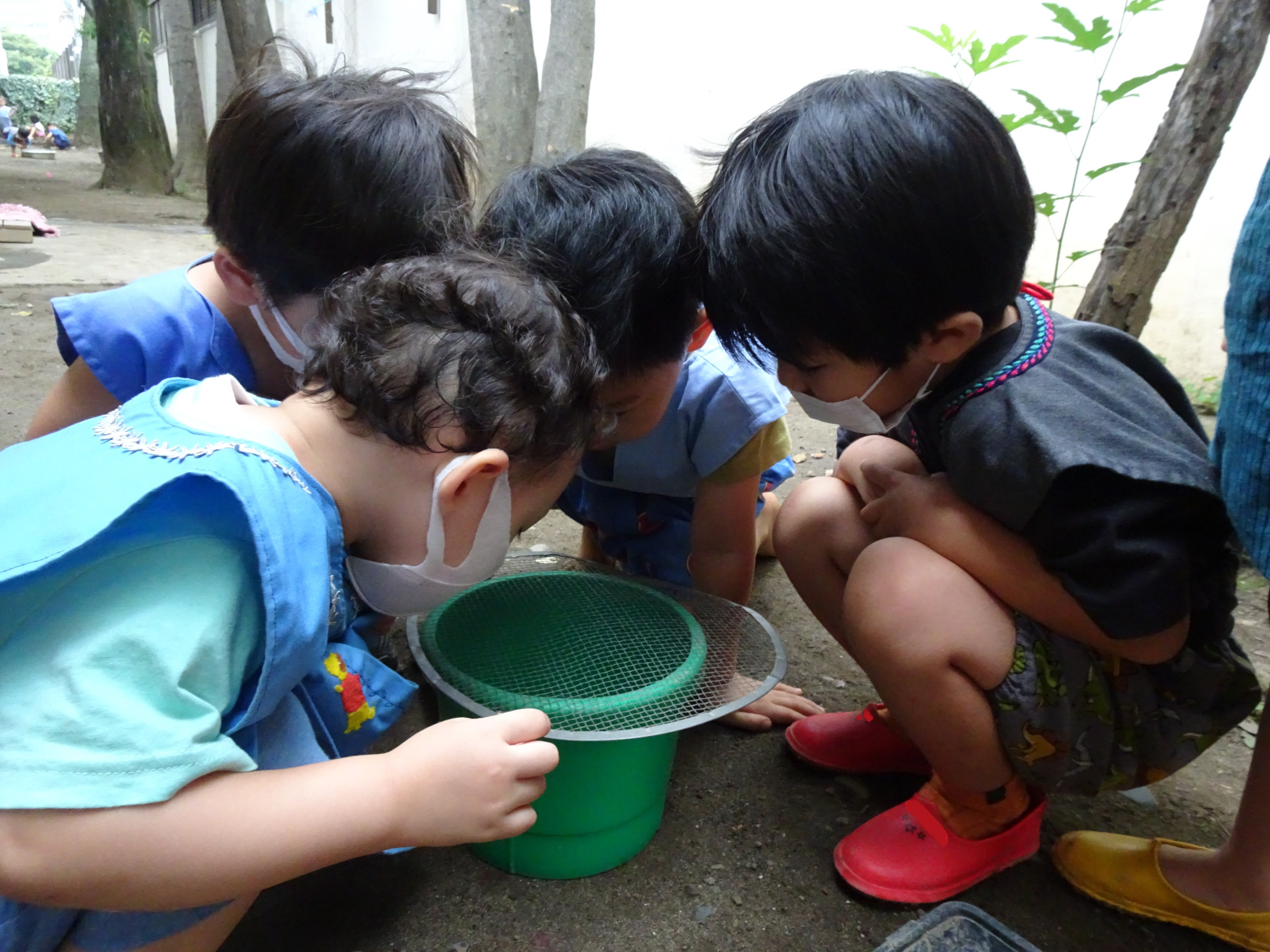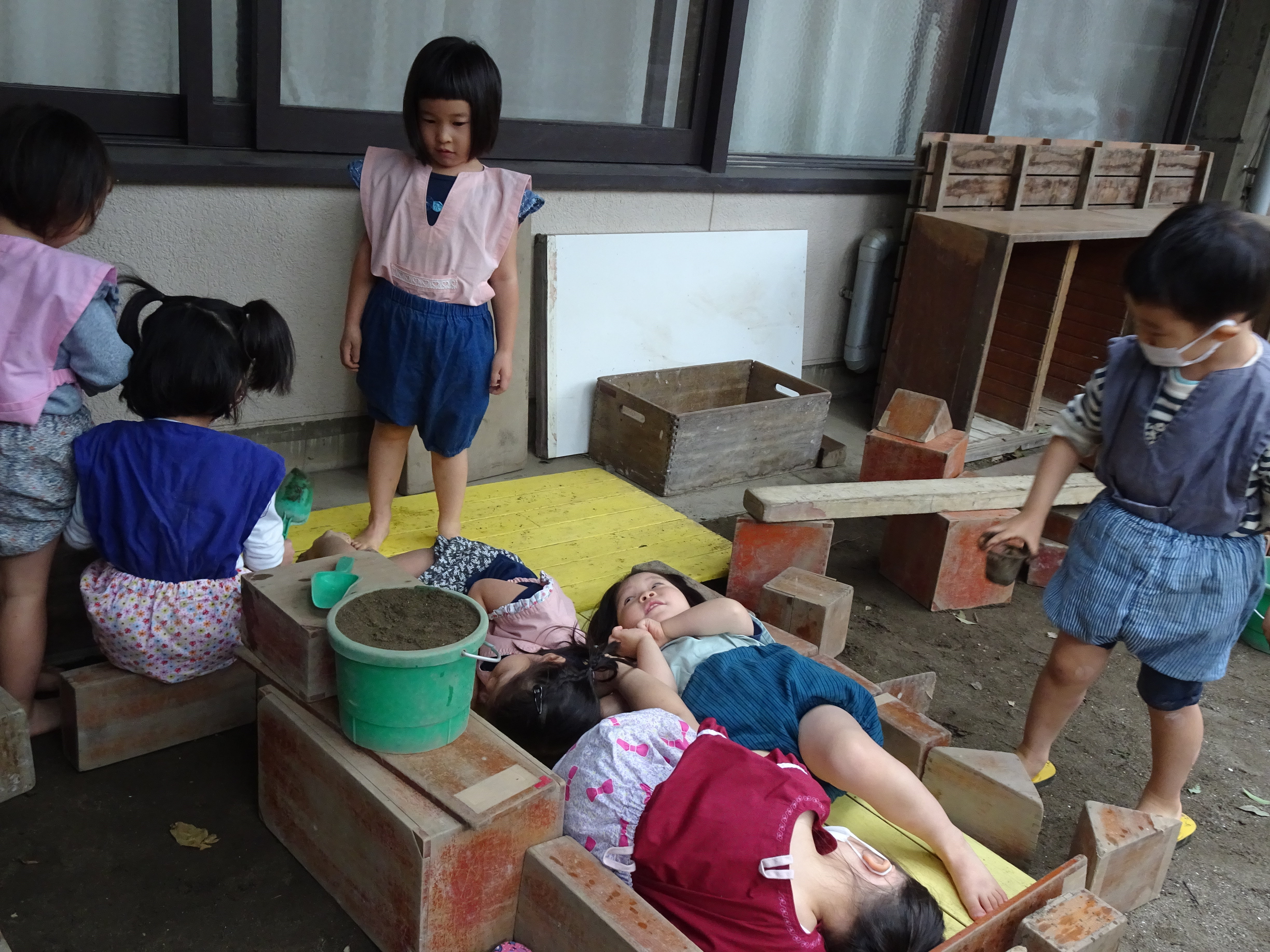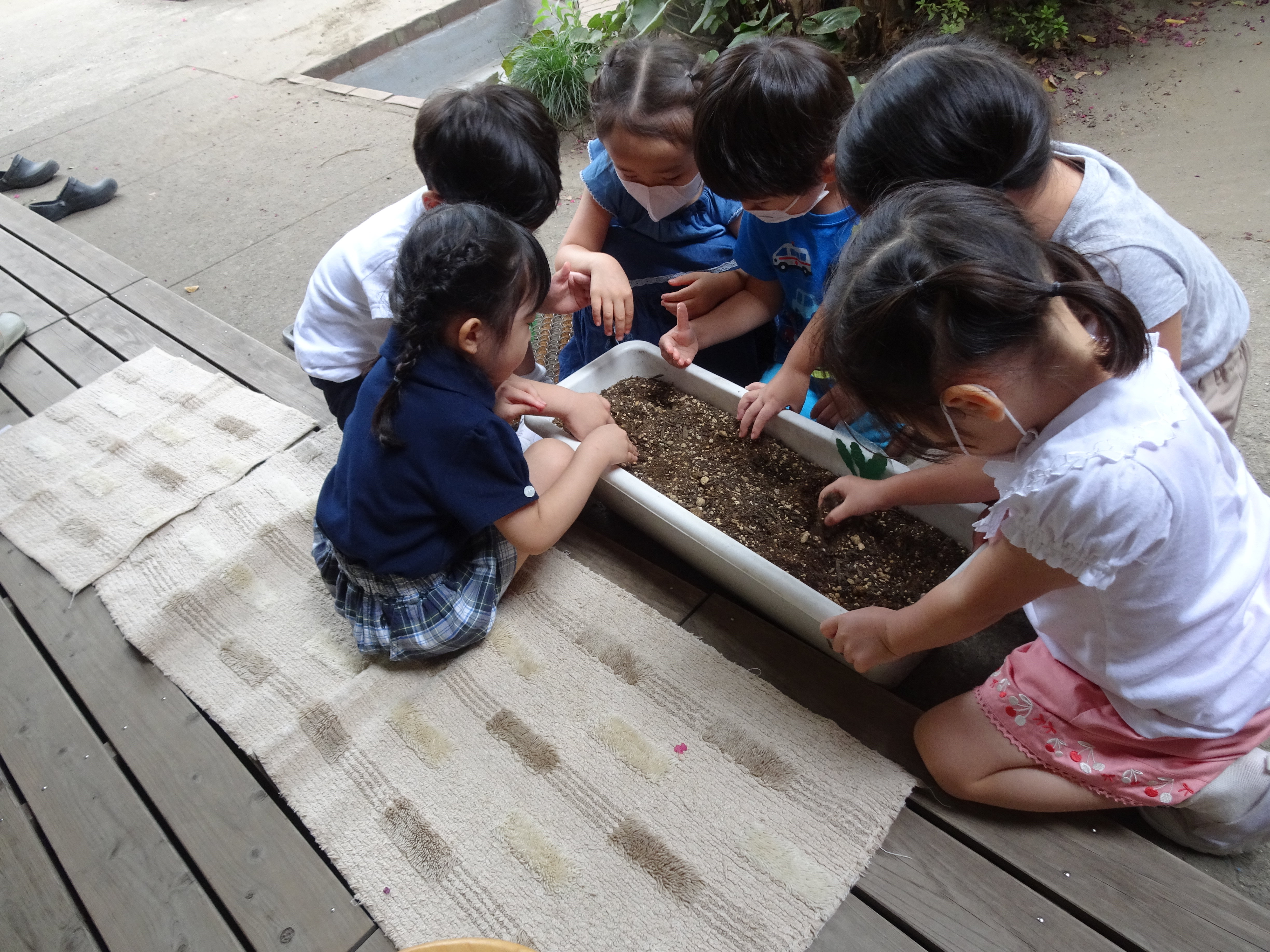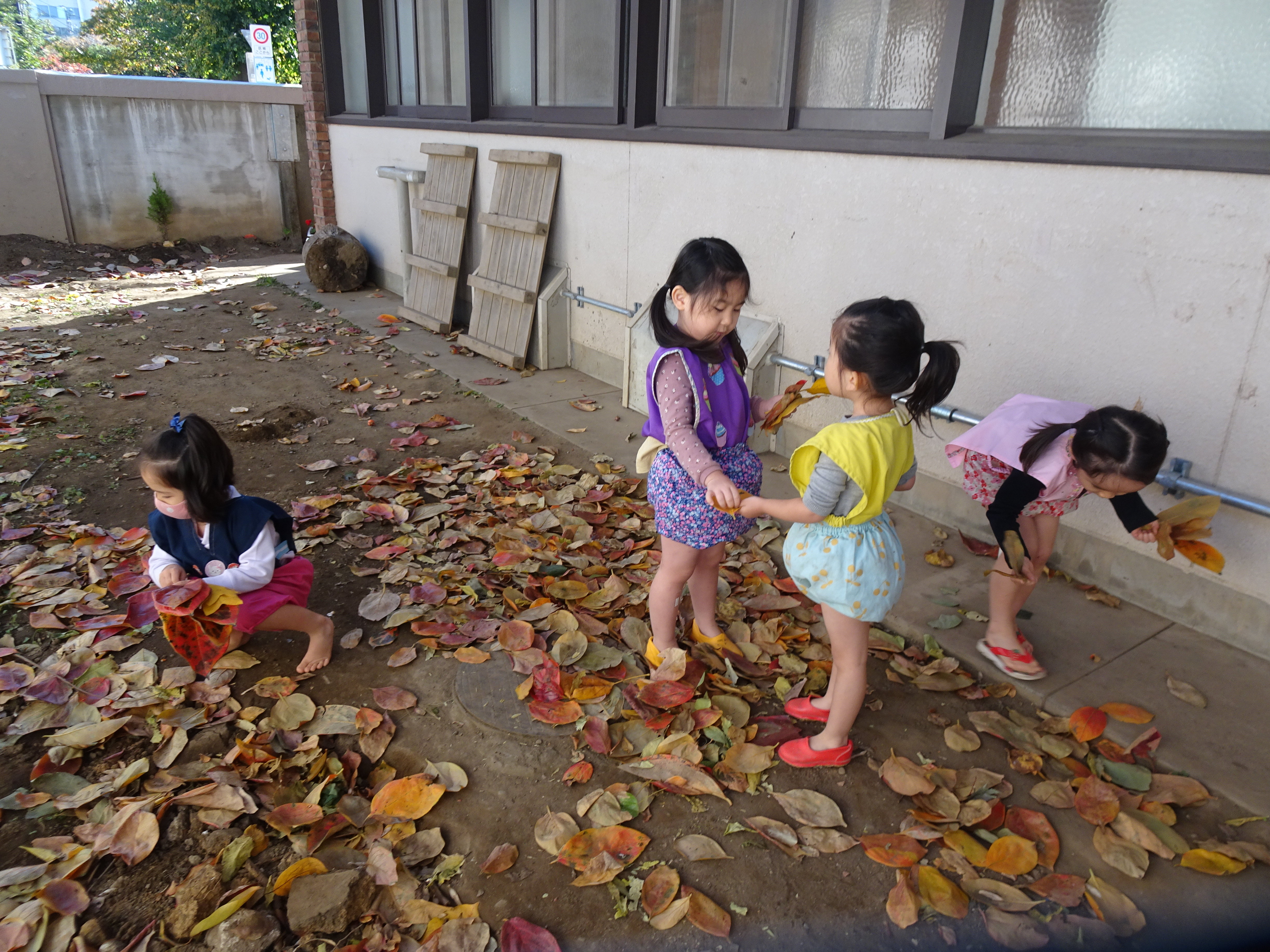 東洋英和幼稚園だより 裏庭の子ども達 プランターに子かぶの種を植えました 小さなお母さんたちはごちそう作りに大忙しです バケツの中には見つけたこおろぎが入っています 裏庭にできた家の中 おやすみなさい 美しく色づいた柿の葉 秋が深まり落ち葉を集め 子どもたちの遊びが広がります 前へ 一覧へ戻る 次へ