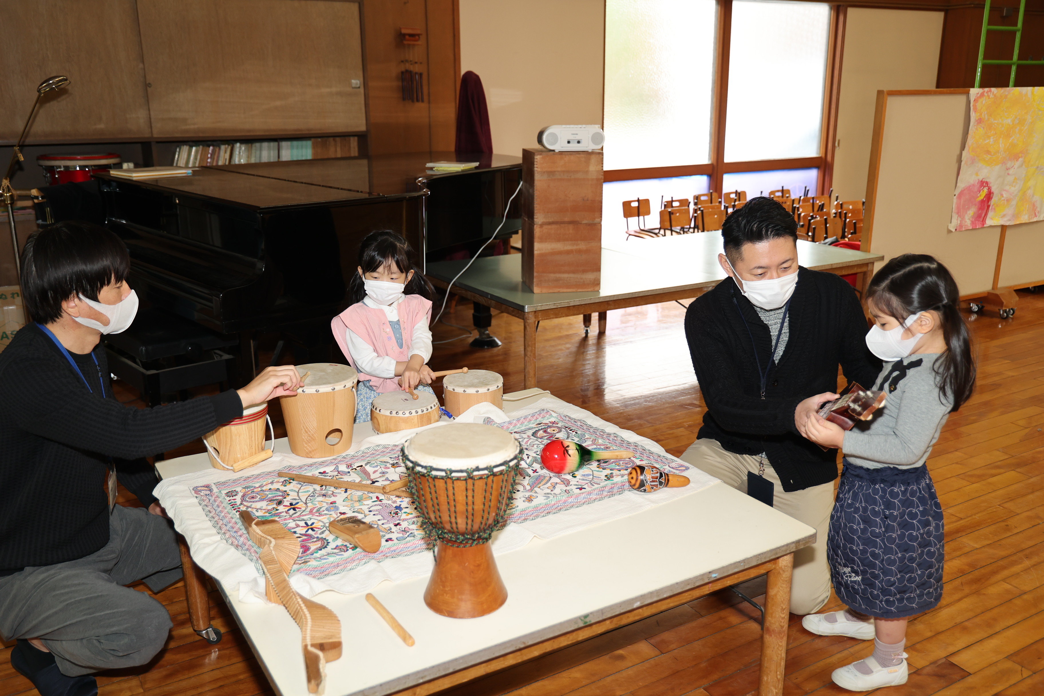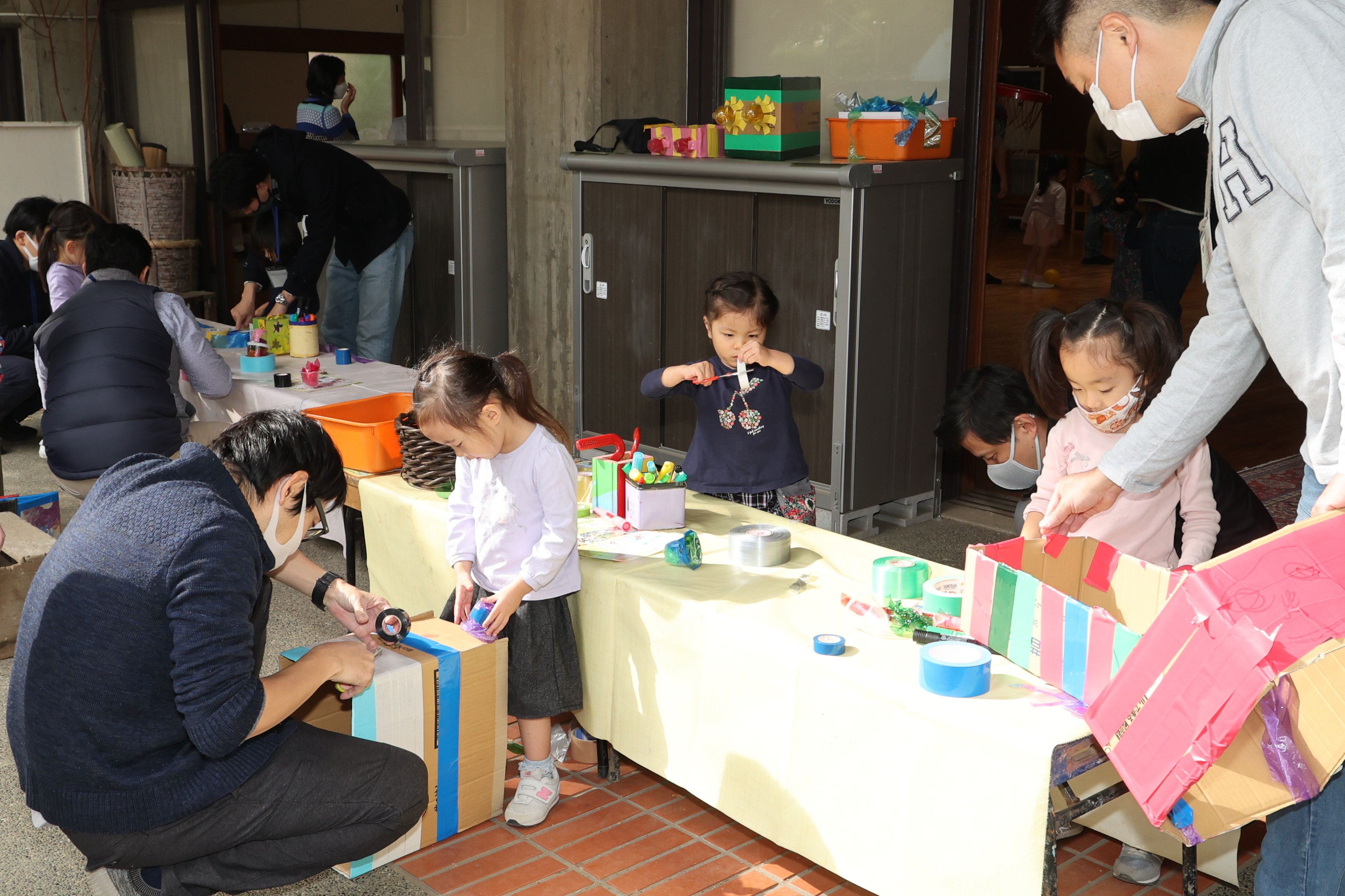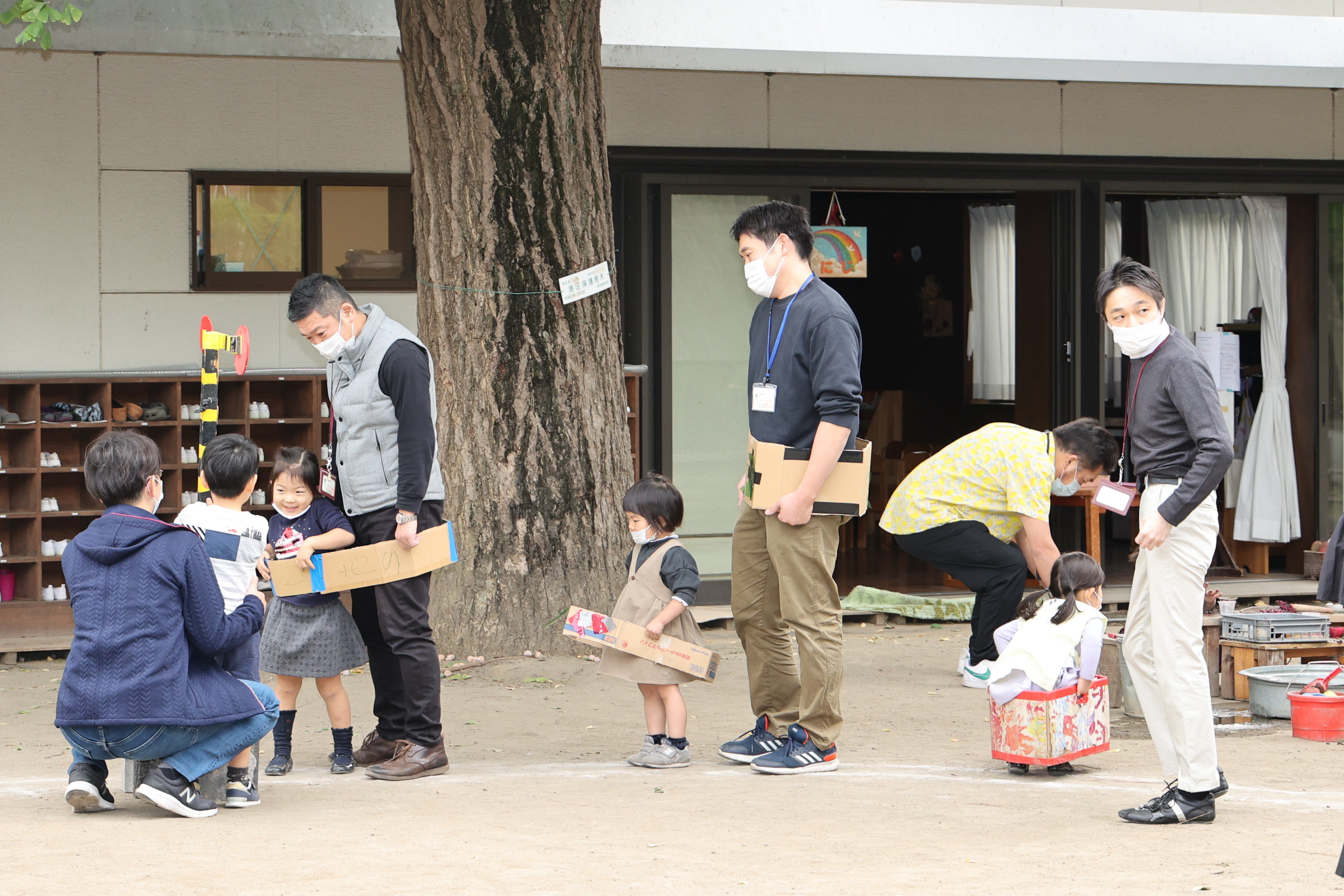 東洋英和幼稚園だより 年少組 父と遊ぶ日 高いところもお父様がそばにいてくださると怖くありません 段ボールを使って電車を作りました さっそく運転してみます いろいろな楽器が並んでいます どんな音がするのでしょう お父様とゆっくり絵本を見ています 「ちょうとみつばち」のリズムを一緒に楽しみました 秘密で用意したプレゼントをお渡ししました お父様も子どもたちもうれしそうです 前へ 一覧へ戻る 次へ