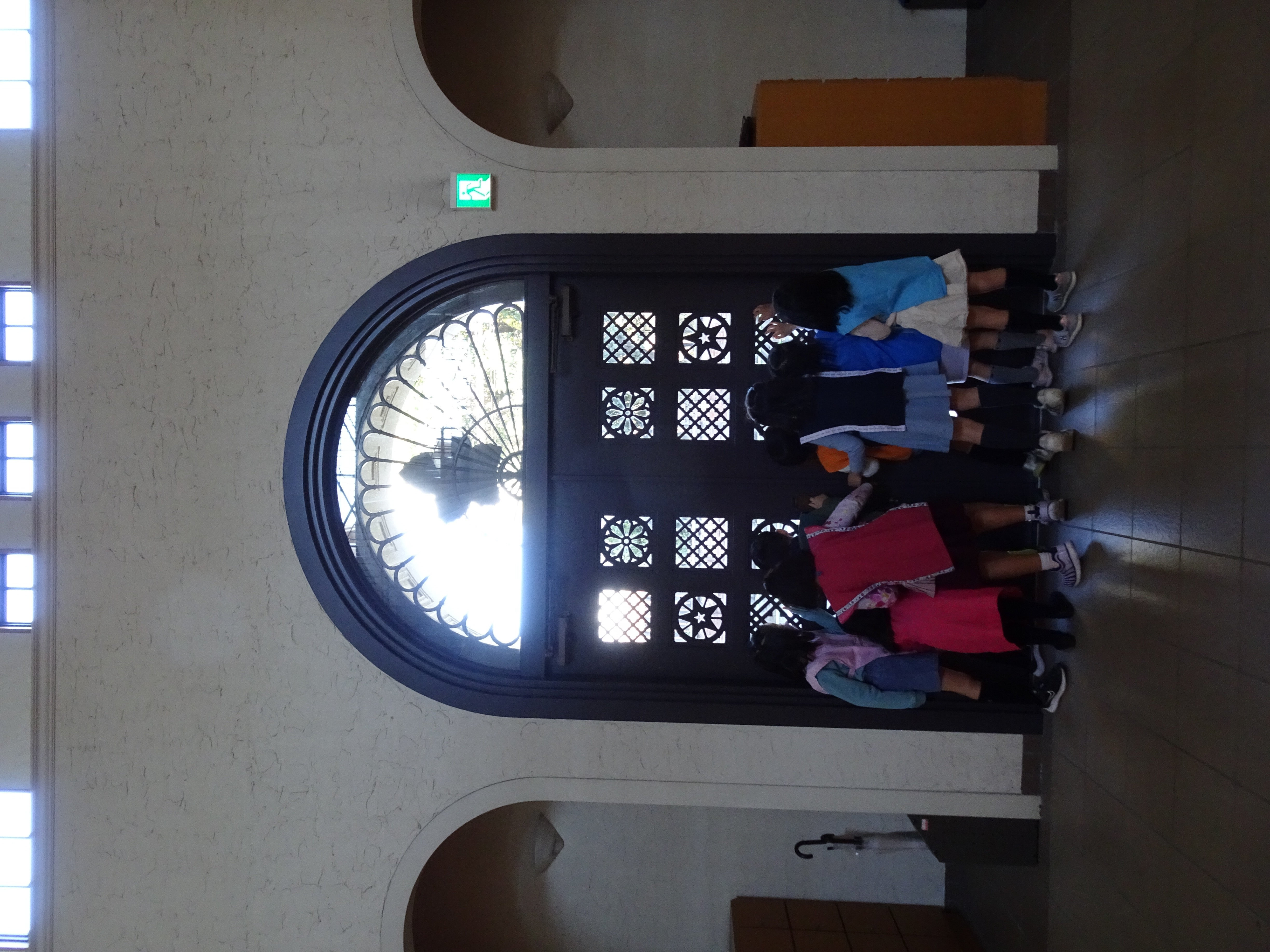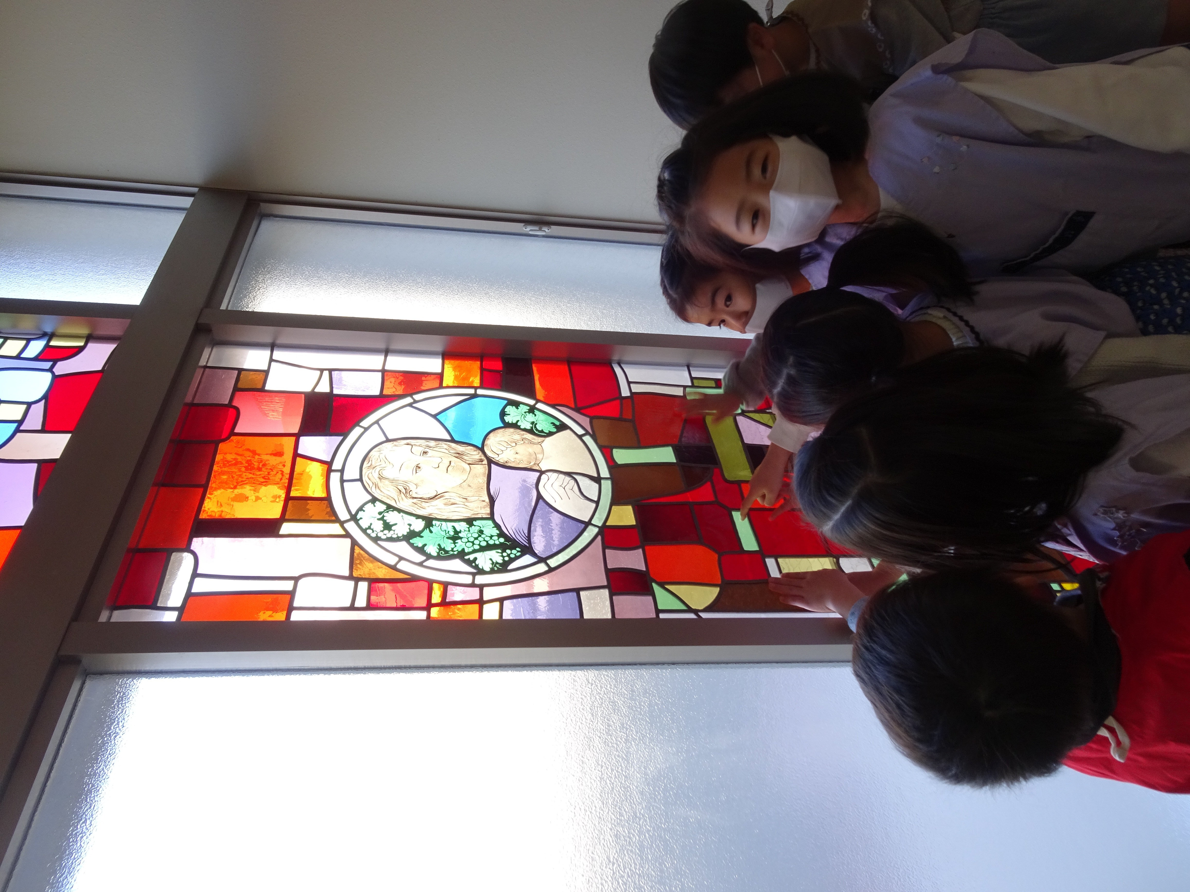 東洋英和幼稚園だより 銀杏献金 今年も銀杏献金が始まりました 献金のお願いをしにでかけました お隣の小学部へ きれいなステンドグラスを見つけました 中高部にもでかけました 光の差し込む美しい扉に夢中です 少し離れた法人本部へ どの場所でもあたたかく迎えられて、うれしい気持ちになったようです 前へ 一覧へ戻る 次へ