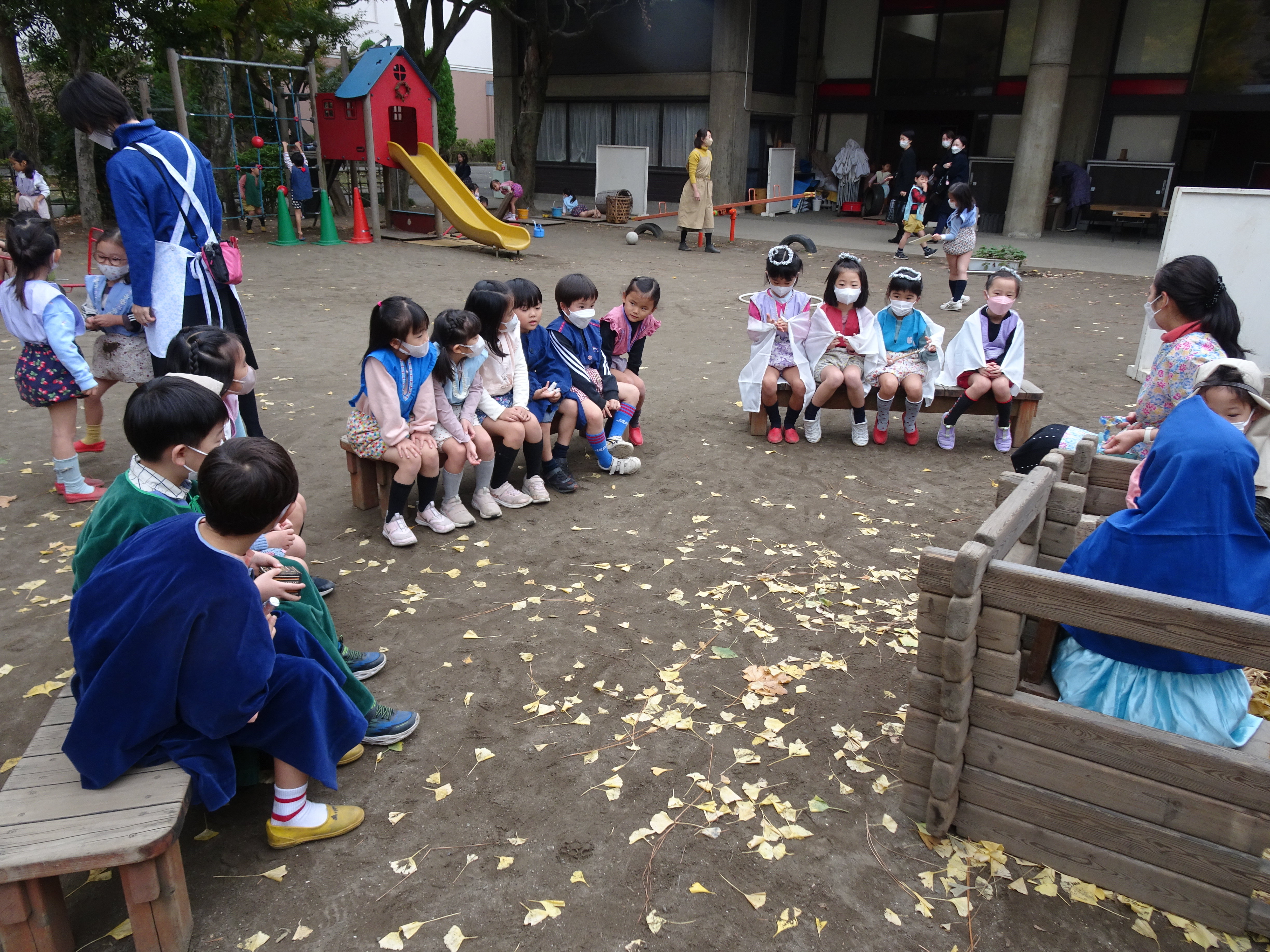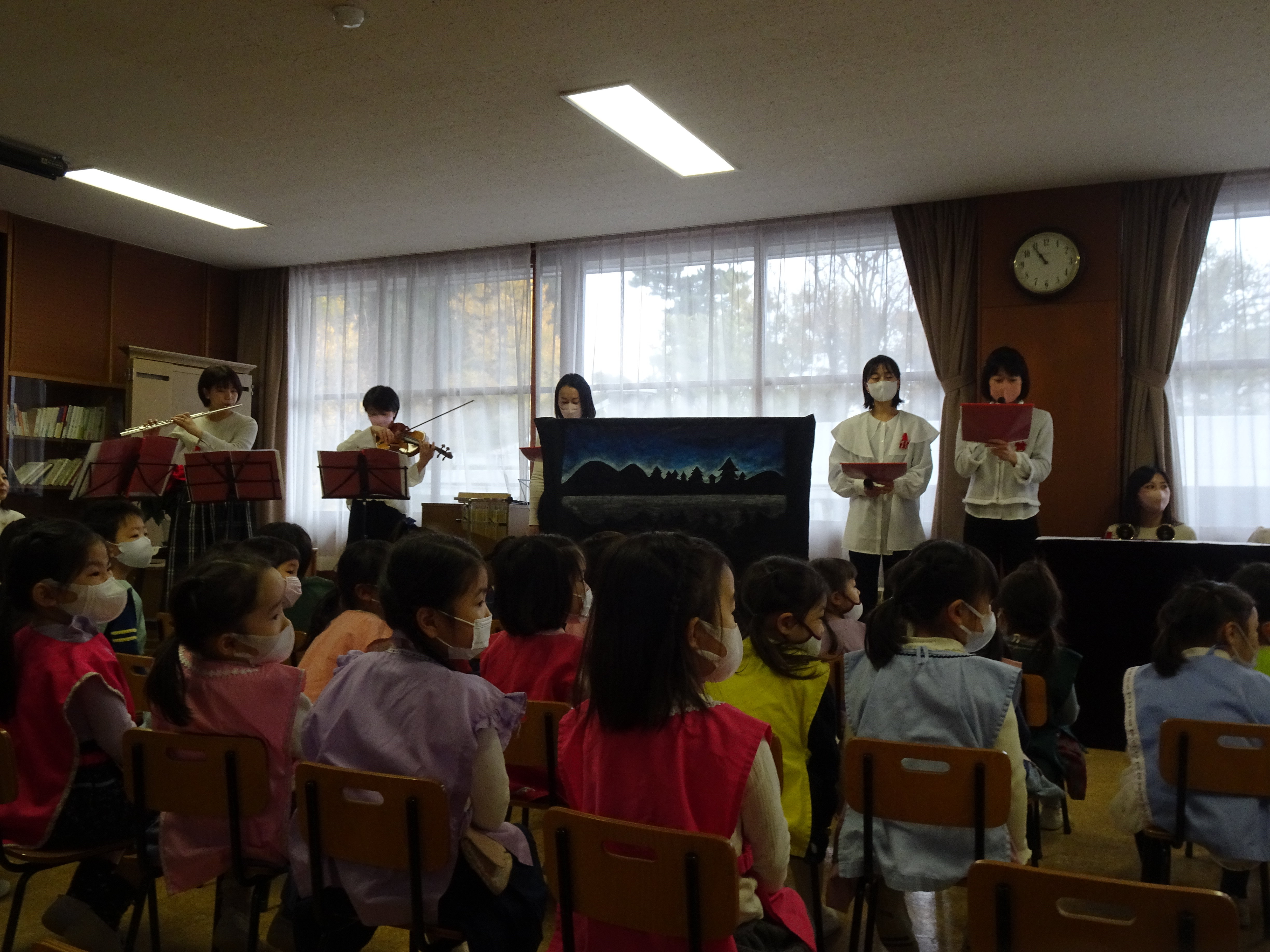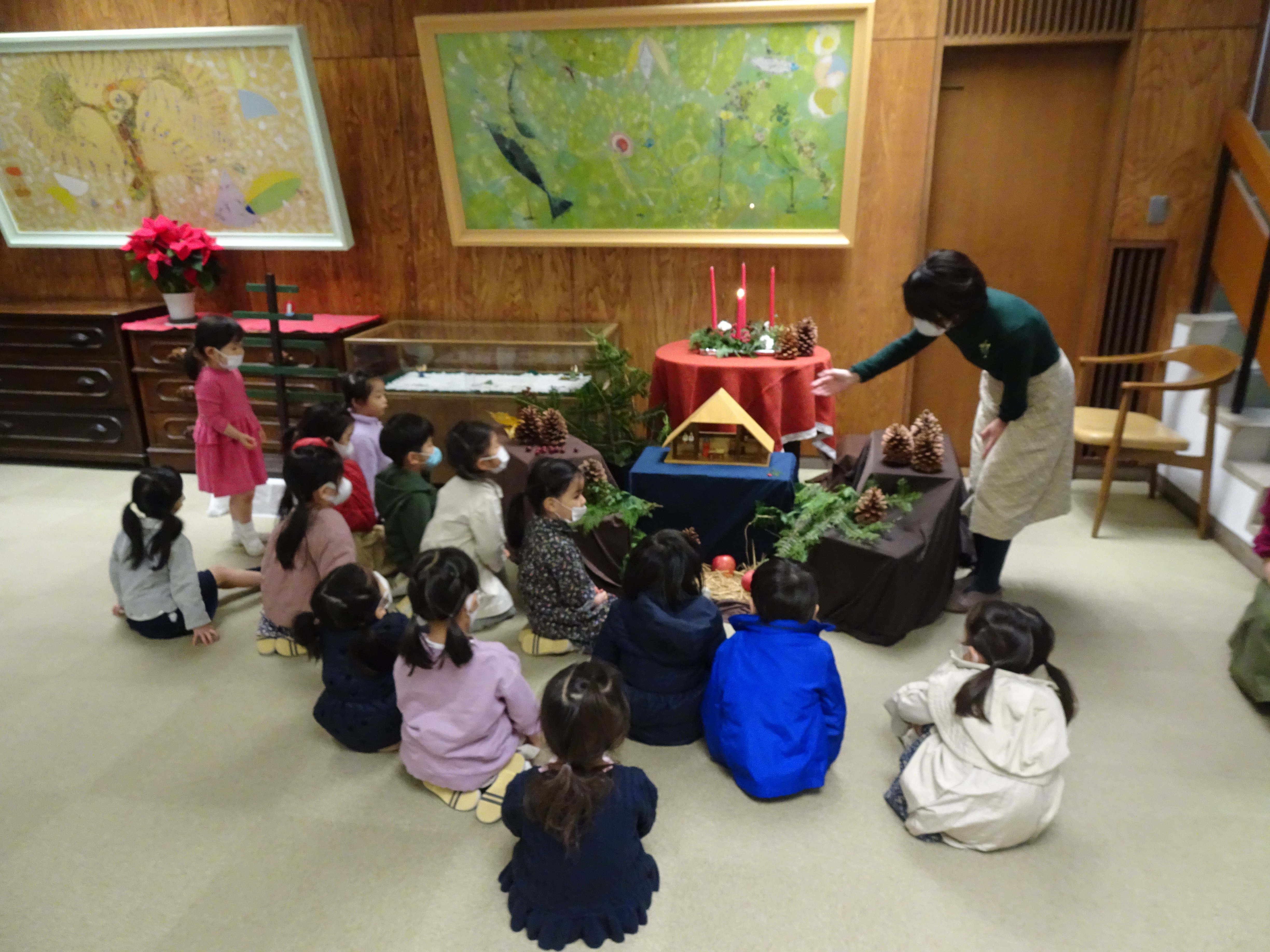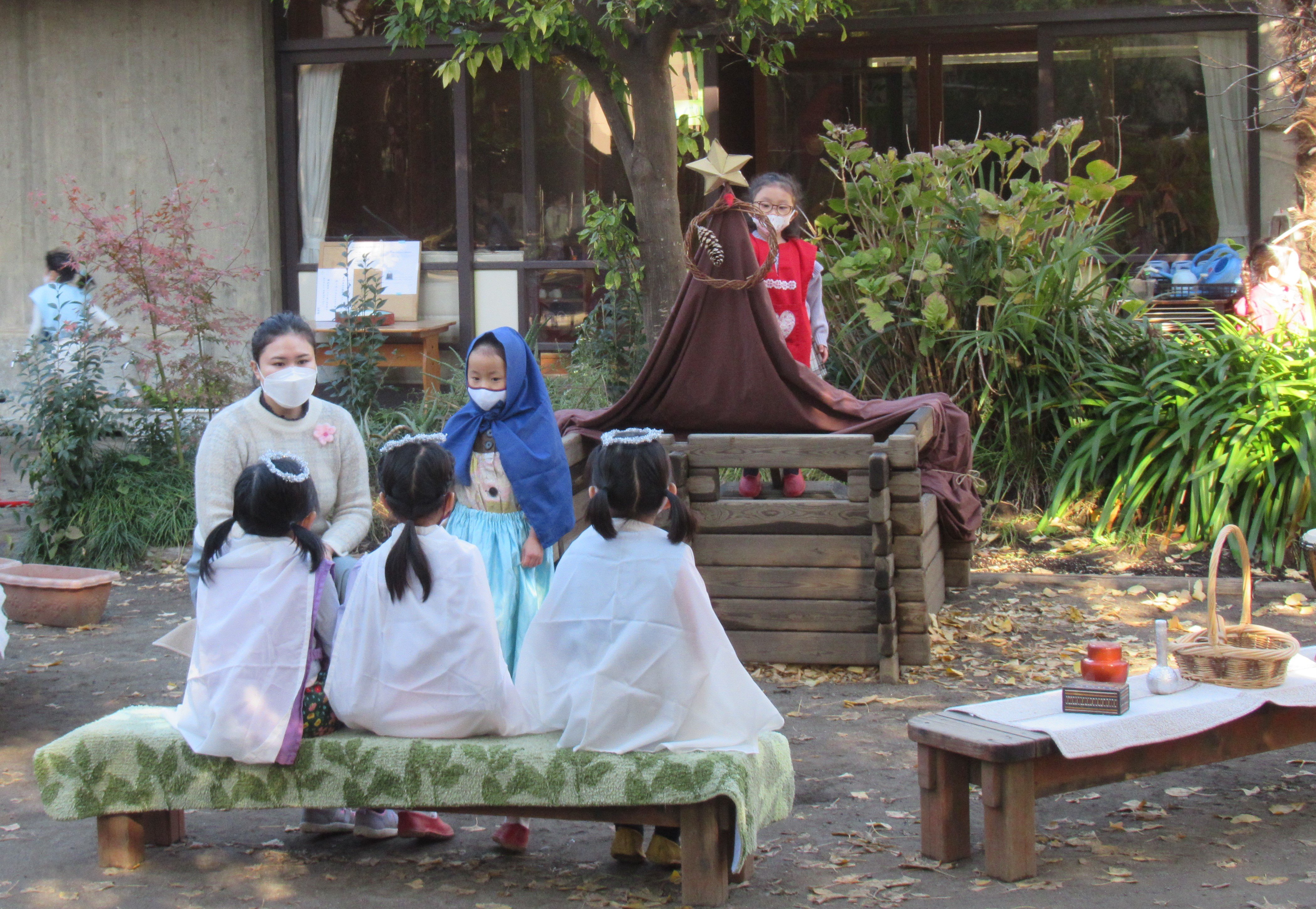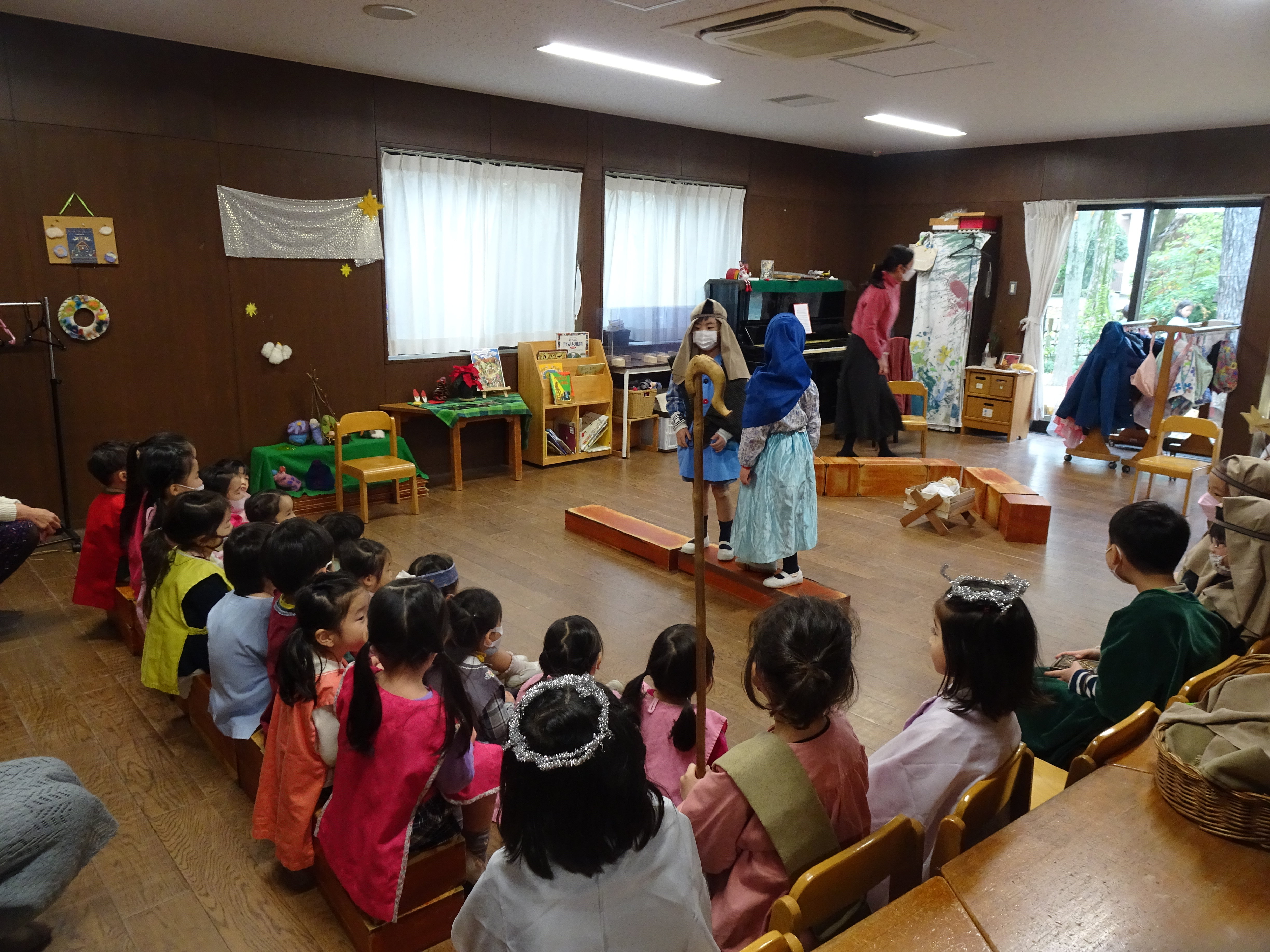 東洋英和幼稚園だより アドヴェント アドヴェントクランツに一つめの明かりが灯りました 庭では年長組の子どもたちが、イエス様のお誕生の劇 ページェント をはじめました 保護者による音楽会 いつもは賑やかな子どもたちも、きれいな音楽に耳をすませていました 今度は年中組の子どもたちもページェントをはじめたようです 年少組の子どもたちは年長組のページェントのお客様になりました 少しずつ、クリスマスが近づいてきます アドヴェント礼拝の日 いちょうの木と馬小屋 今年は学年ごとに親子で礼拝をまもりました それぞれの教会でクリスマスを迎えます 前へ 一覧へ戻る 次へ