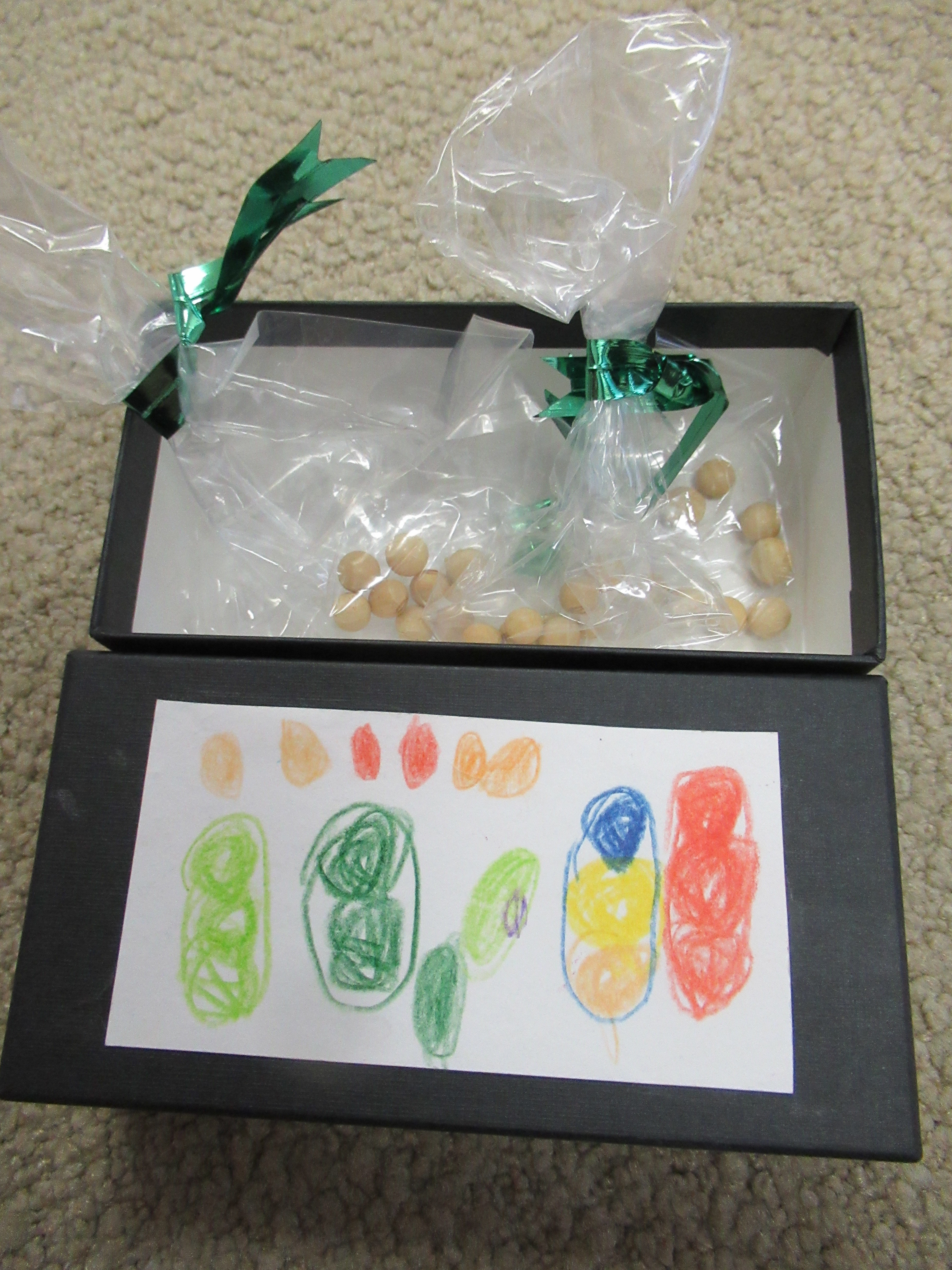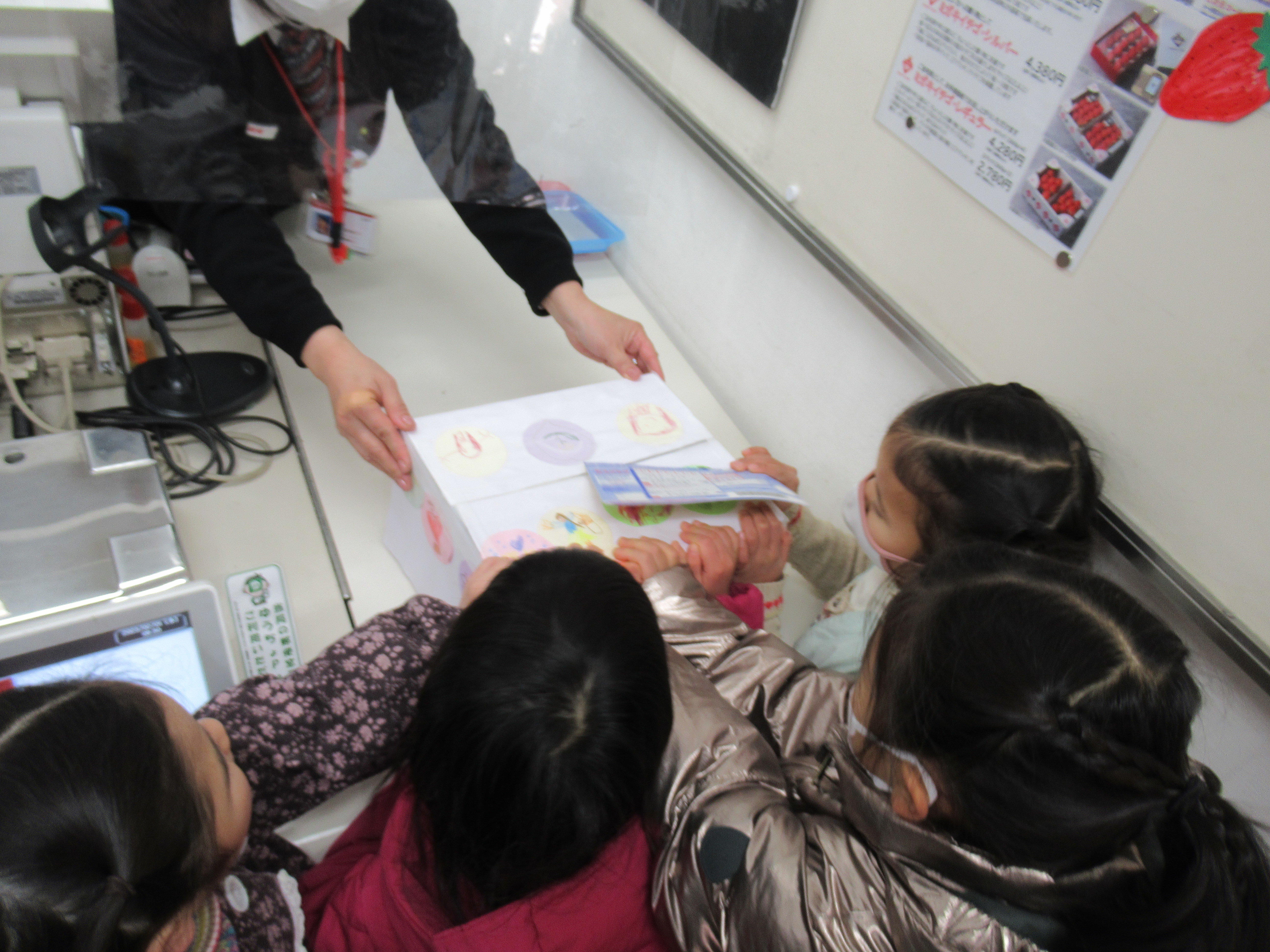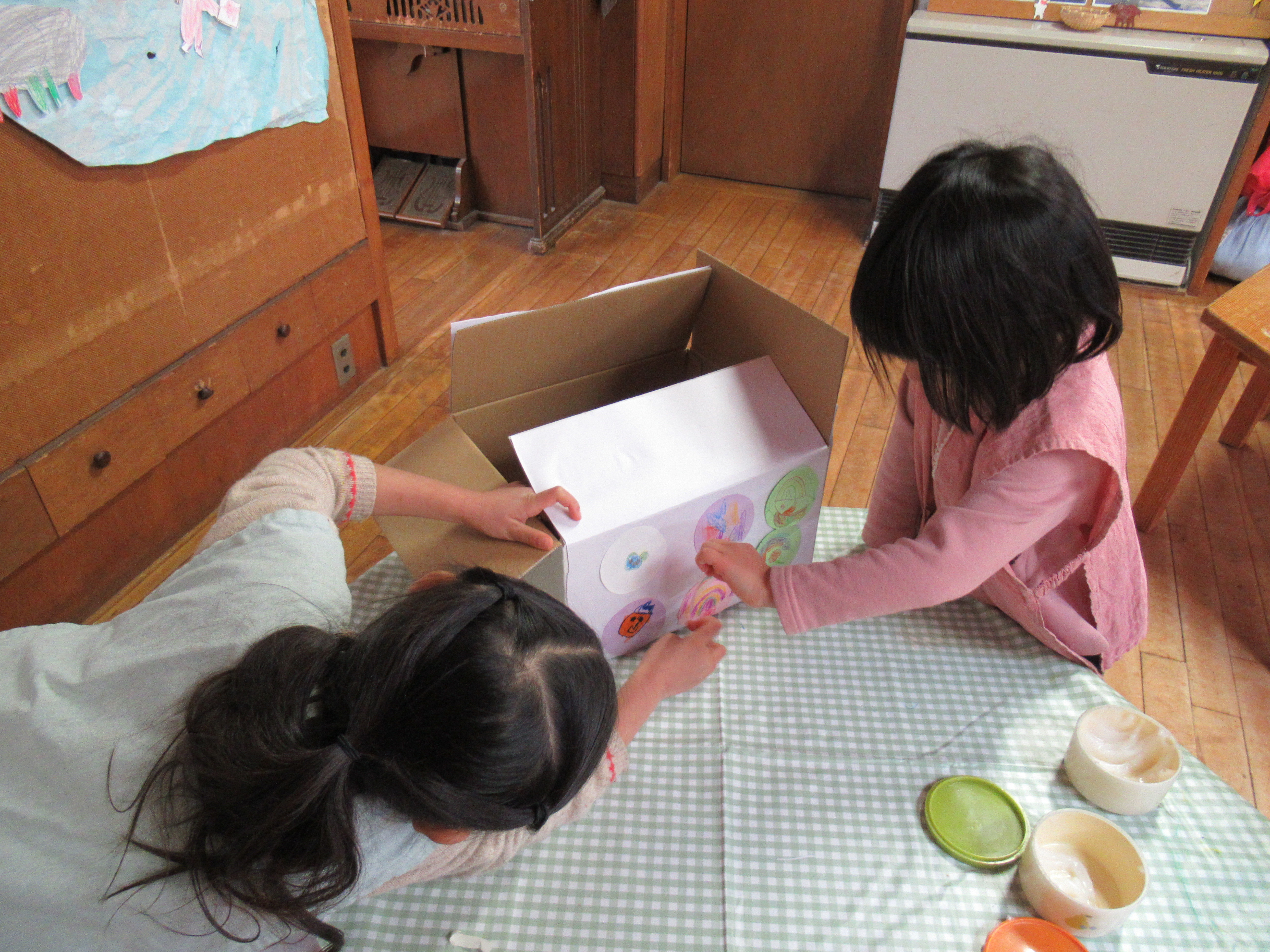東洋英和幼稚園だより 聖テモテ幼稚園とのつながり 箱に詰めたたくさんの羊毛ボールの飾り 福島にある聖テモテ幼稚園の友達のためにと考えて、年中組の子どもたちが手を動かしました 箱もきれいにしたいね 描いた絵を貼っていきます 思いのこもった箱になりました 育てた大豆も差し上げることにしました 配達をお願いしに郵便局へ行きました ……その後 花の種やきれいな飾りと手紙のお返事が届きました 前へ 一覧へ戻る 次へ