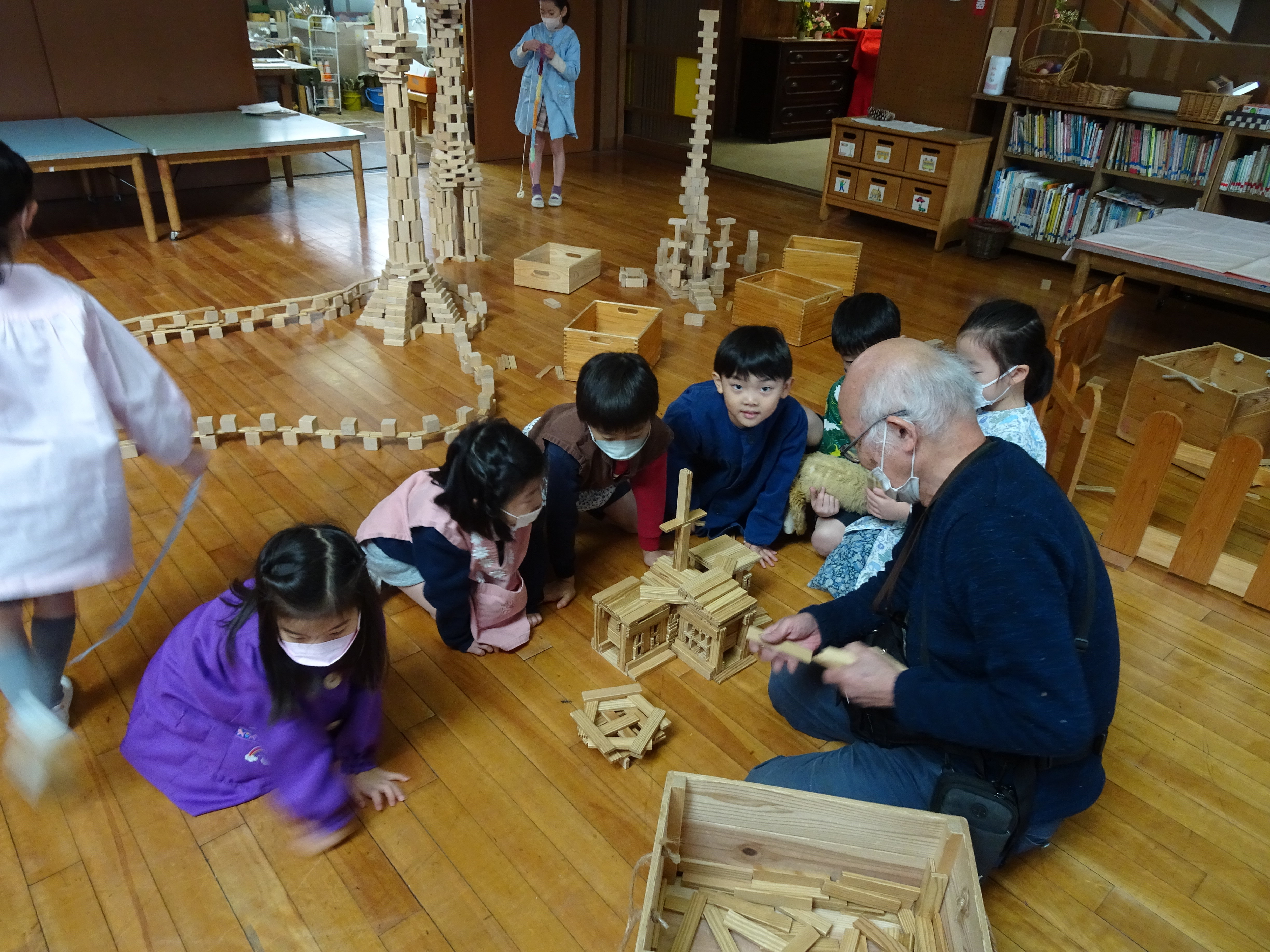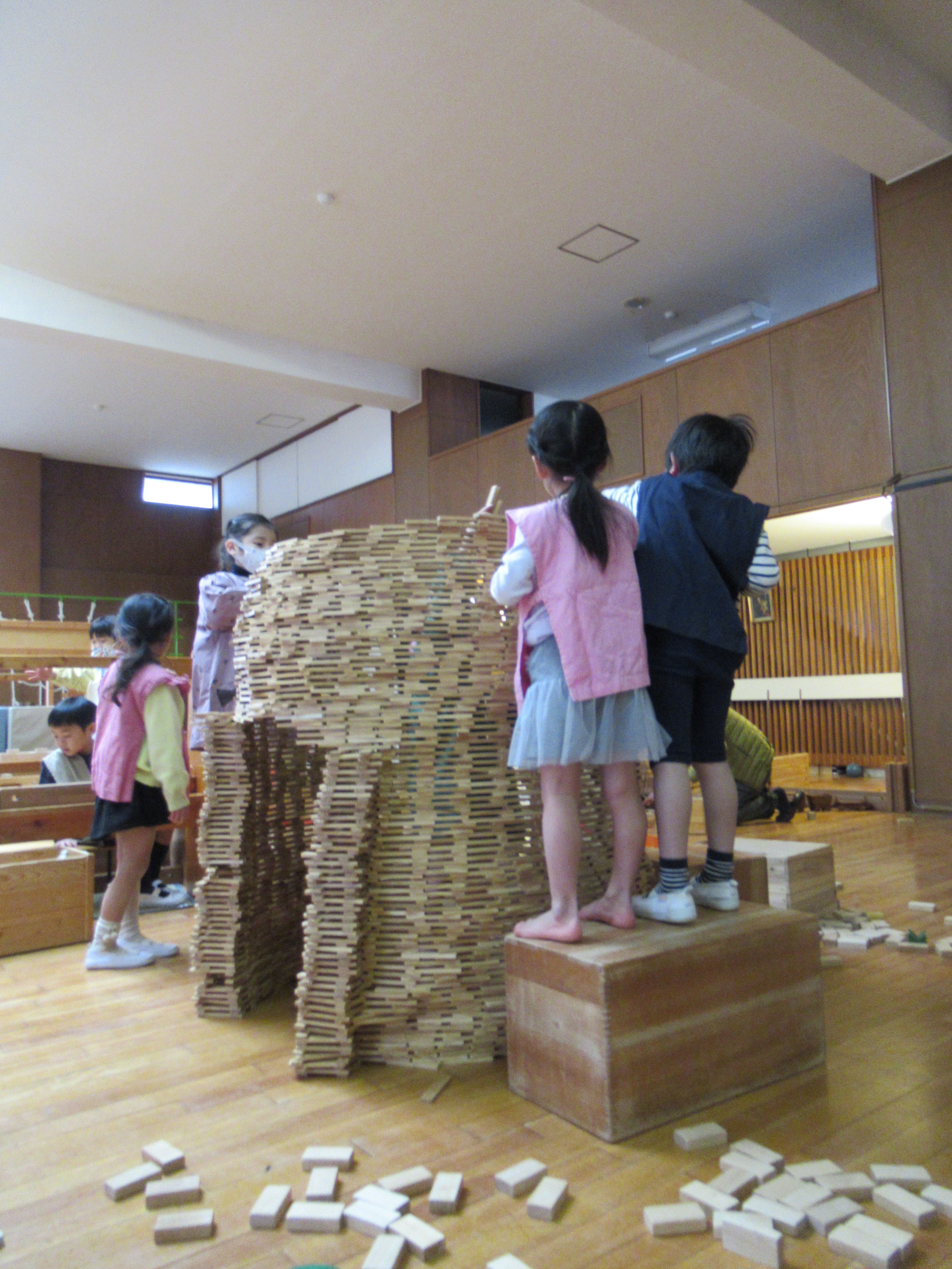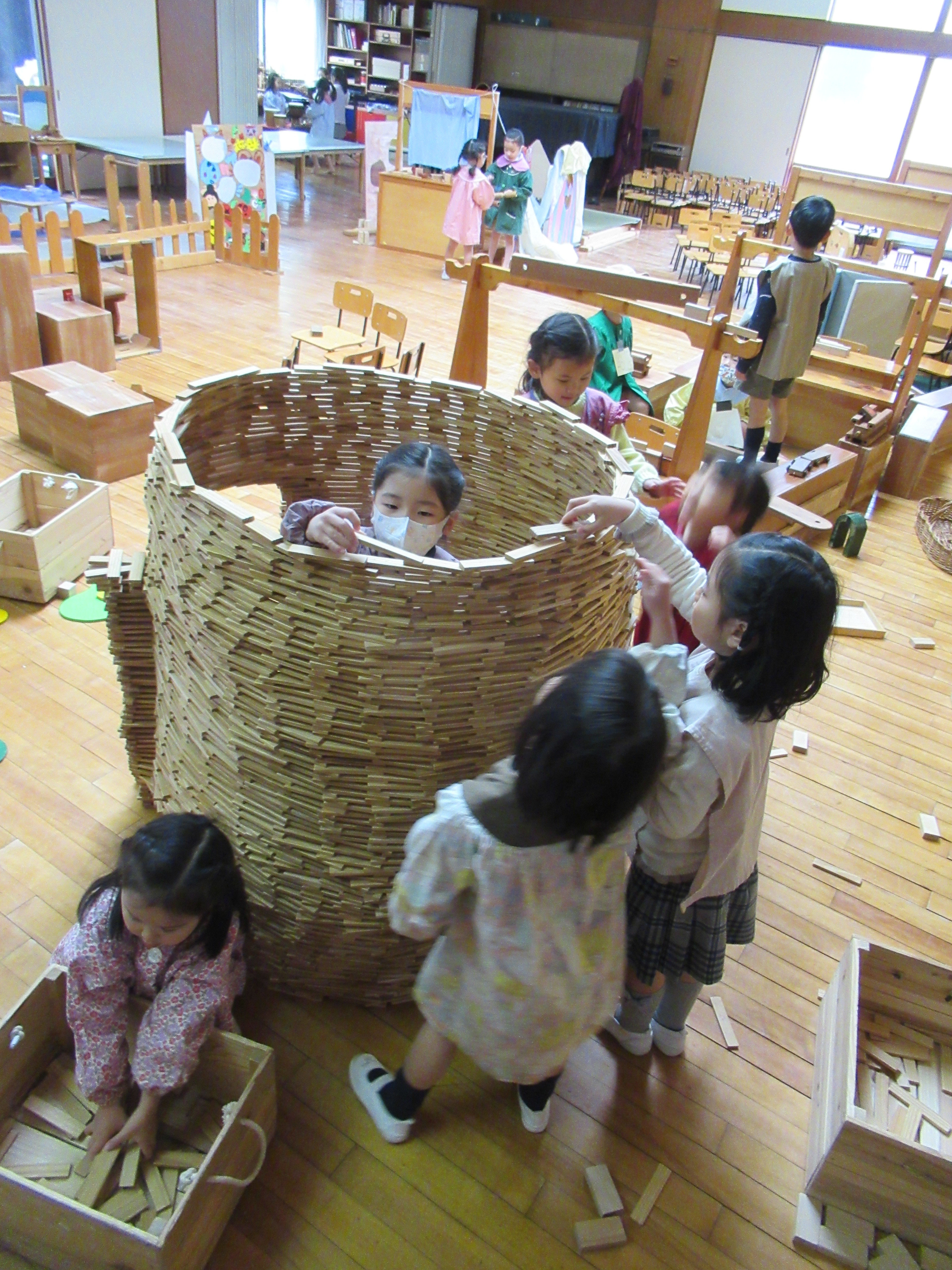 東洋英和幼稚園だより たくさんのおもちゃ たくさんのおもちゃをもって、おもちゃ屋のトムテさんが遊びに来てくださいました いつも遊んでいるカプラも、トムテさんと一緒だとどんどん形が変わっていきます 優しい木のぬくもりを感じながらじっくりと楽しみました どんどん高く積み上げていって… 中にも入れるようになりました 楽しい時をありがとうございました 前へ 一覧へ戻る 次へ