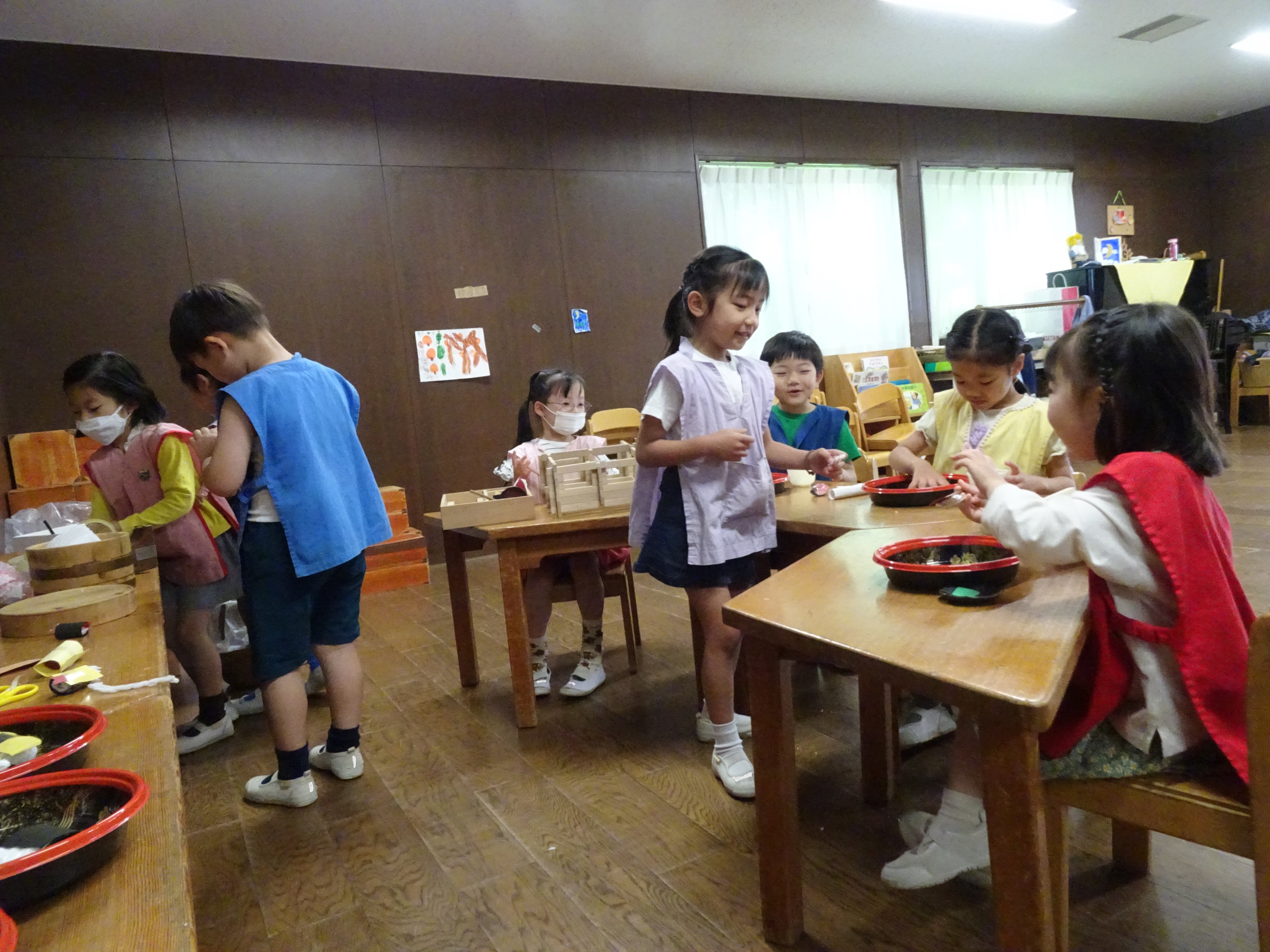 東洋英和幼稚園だより 年長組の子どもたち 部屋の中では忙しそうに何か作っています おいしそうなお寿司です! 人気のお店で、お店の人が入れ代わり立ち代わりしながら、何日も続きました こちらは病院です 人形劇も始まりました 前へ 一覧へ戻る 次へ