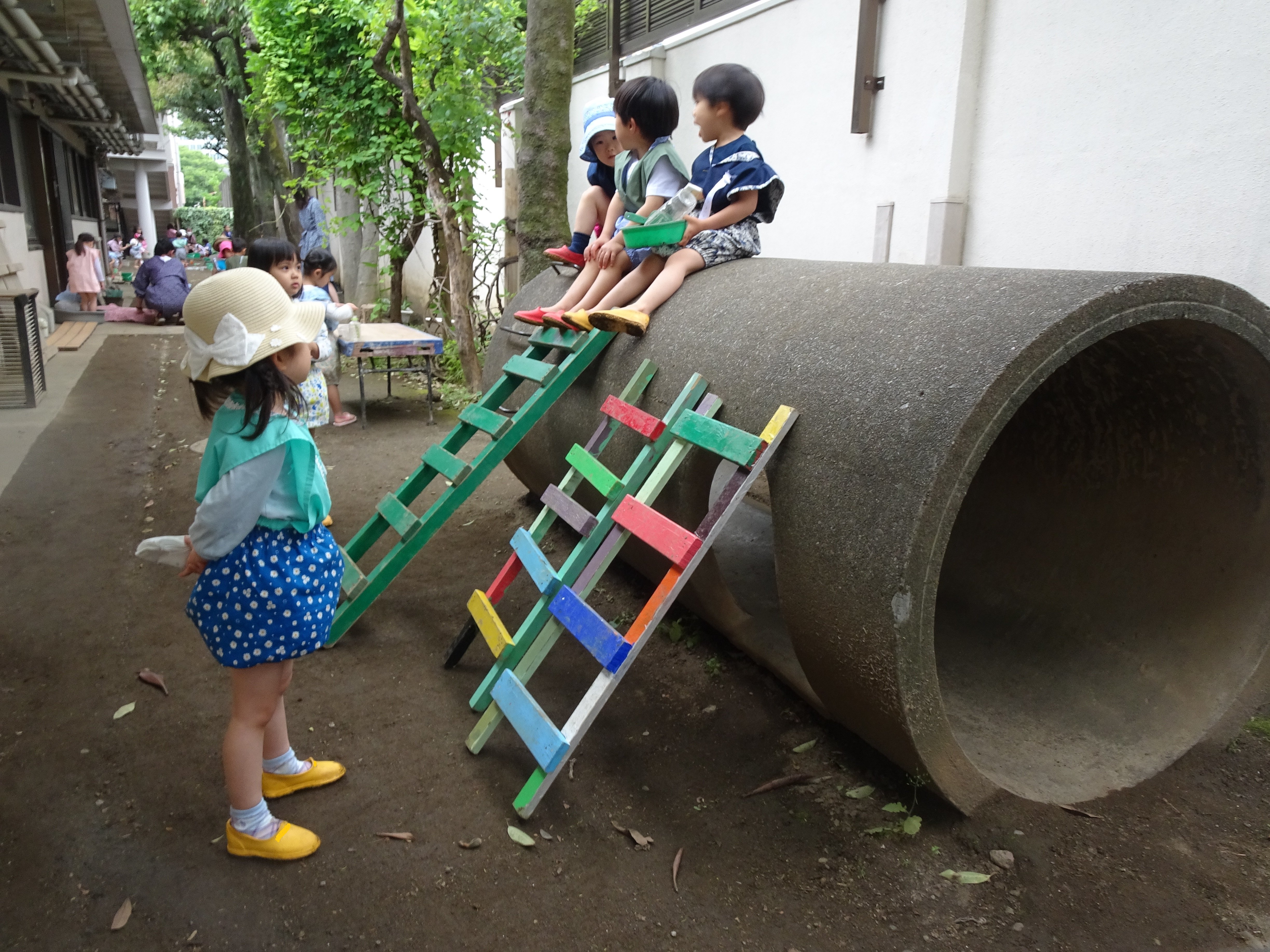 東洋英和幼稚園だより 年少組の子どもたち 部屋の中では赤ちゃんにご飯を作っているのでしょうか ~てくてくてくてく歩いてきて あくしゅでこんにちは♪ かわいいメダカの赤ちゃんが仲間入りしました 何を見つけたのでしょう… ヒューム管の上は高くて少し怖くて楽しい場所です 庭で描くのは気持ちがよいものです 前へ 一覧へ戻る 次へ