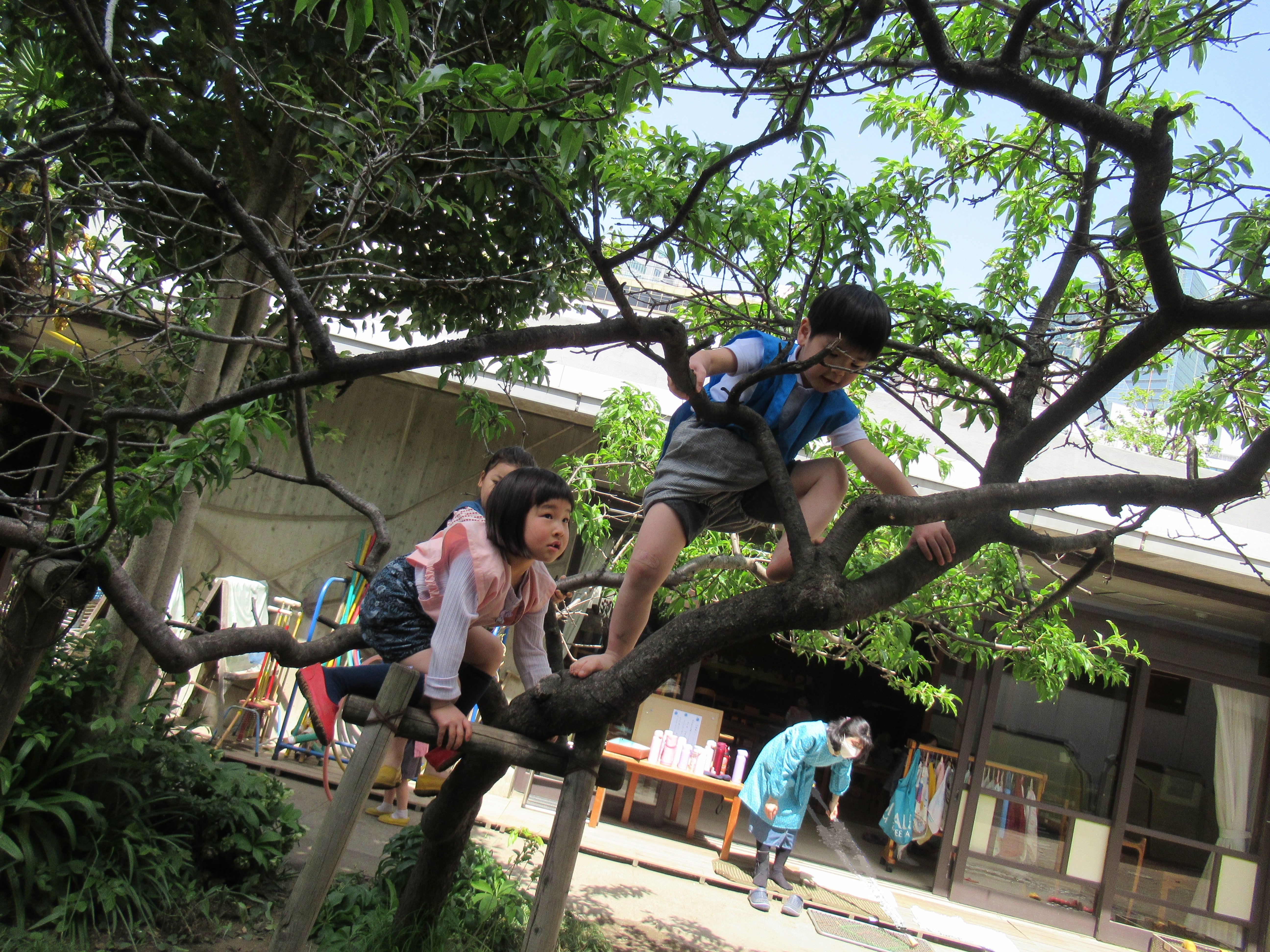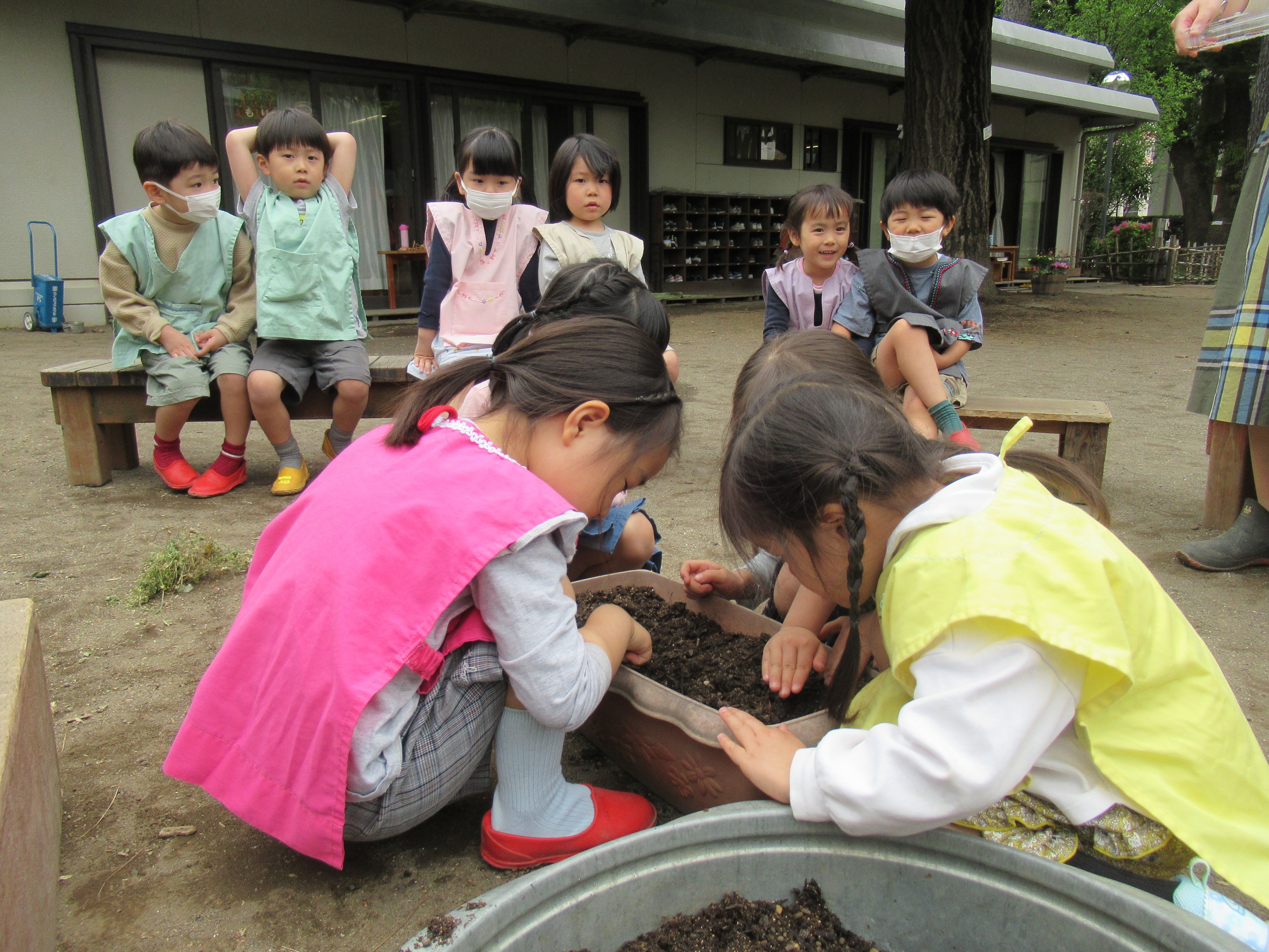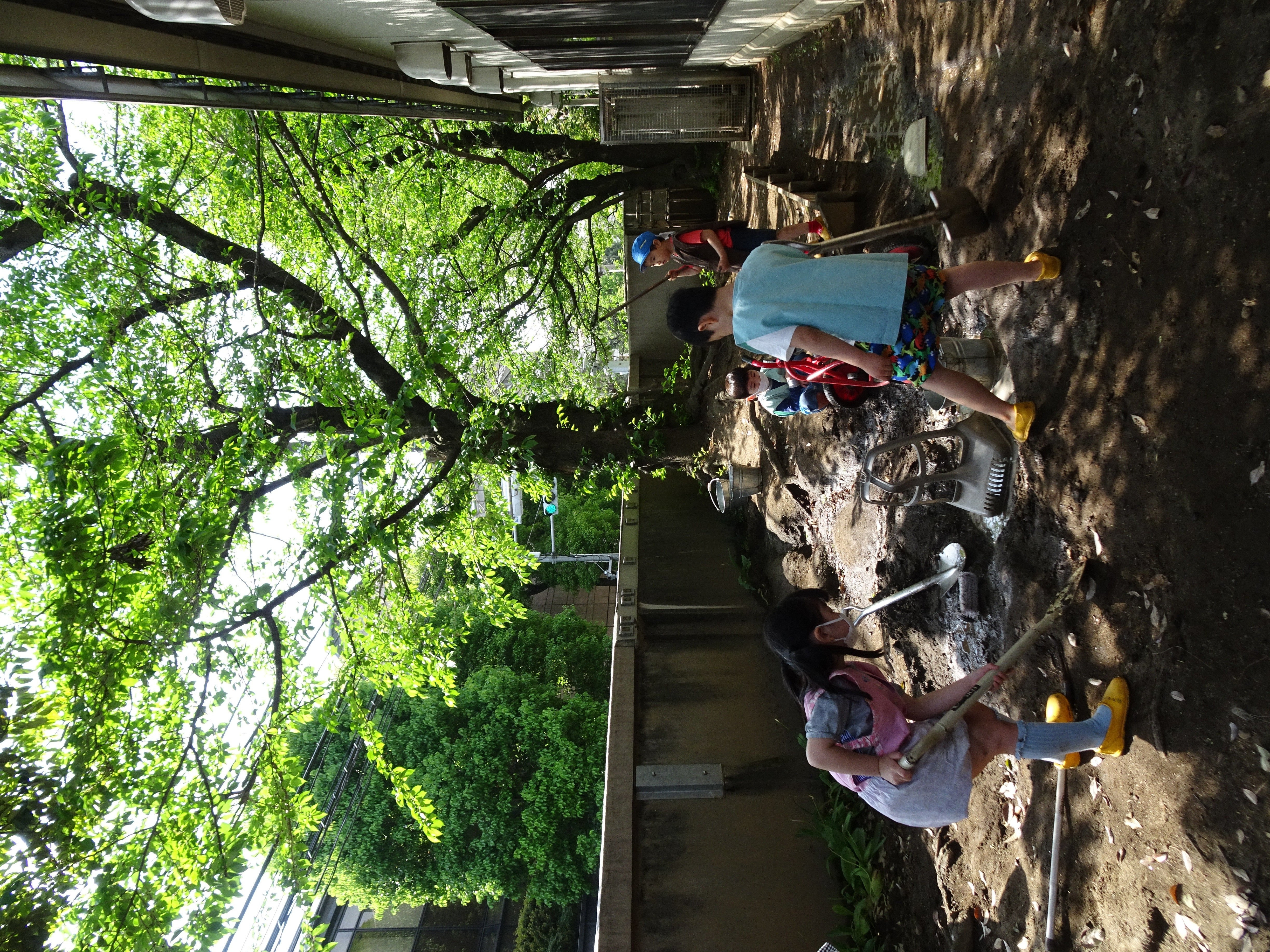 東洋英和幼稚園だより 年中組の子どもたち 今日も庭はたくさんの子どもたちでにぎわっています 星の家の一階ではお店屋さんが始まりました 桃の木に登っています 落ちないようにしっかりつかまって… 桜の木の下はデコボコで、楽しい遊び場所です プランターに小さな赤カブの種を植えています 虫から守るためにと考え、網をかぶせてみます こちらのプランターはビニールをかぶせました 可愛らしいカブが育ち、お味噌汁にしていただきました 前へ 一覧へ戻る 次へ
